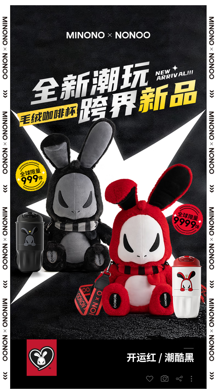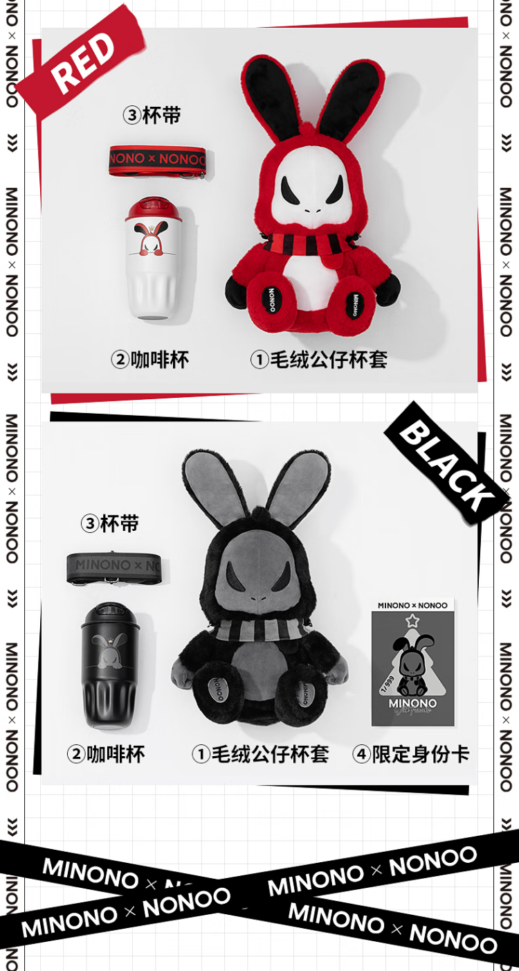 NONOOMINONOXNONOO联名毛绒玩具咖啡杯潮酷创意情侣水杯轻奢保温杯送礼
