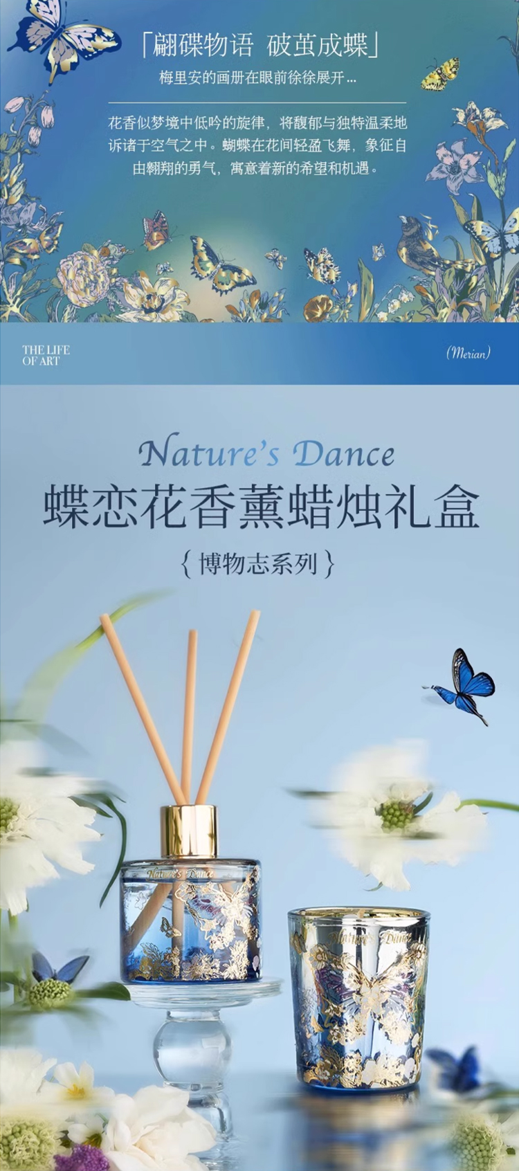 大英博物馆]博物志系列  蝴蝶无火香氛蜡烛香薰礼盒