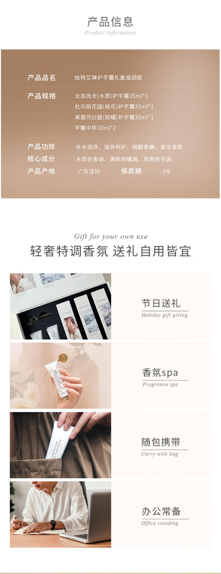 独特艾琳(Dear lrean)香氛护手霜125ml套装礼盒馥润保湿补水 送朋友家人新年礼物