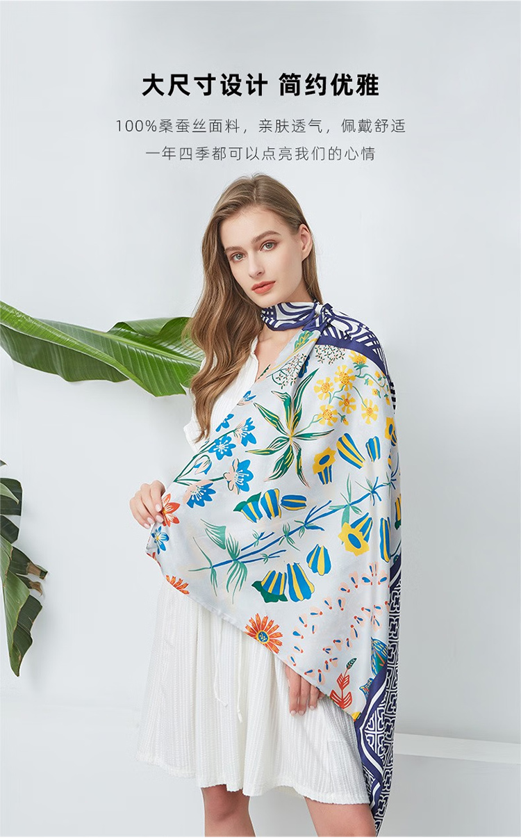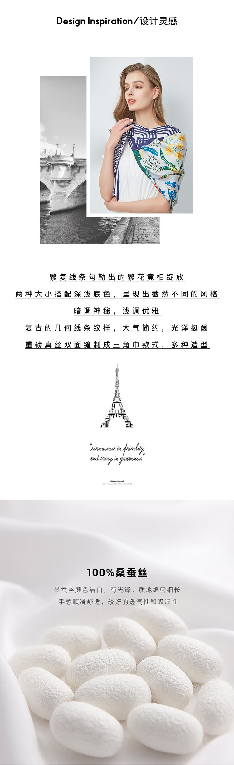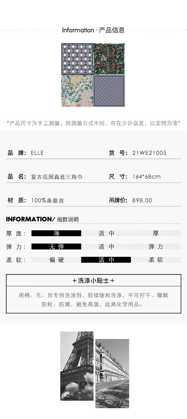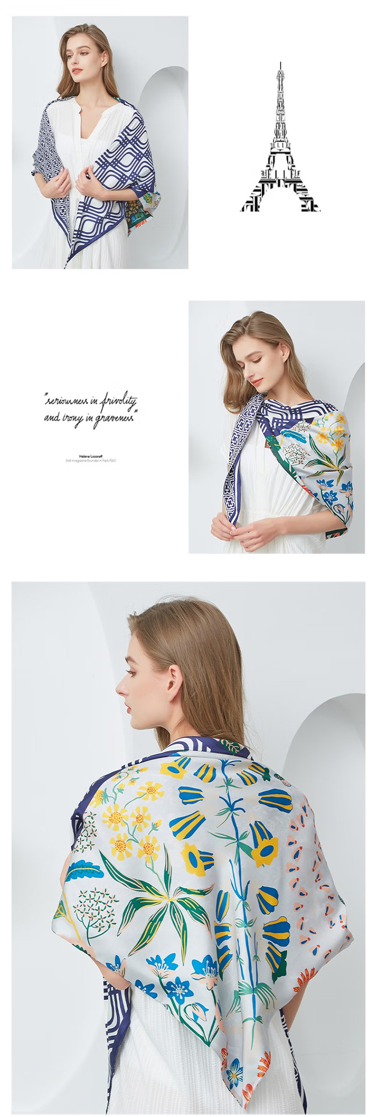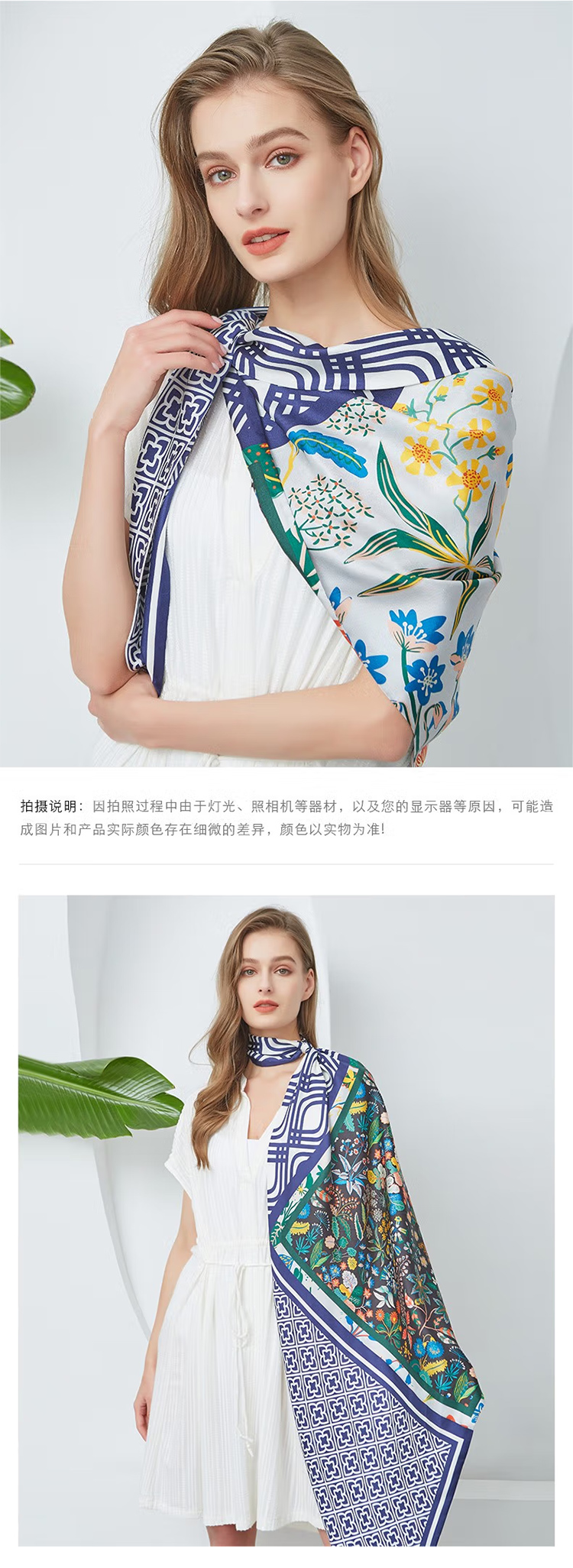 ELLE法式复古真丝长巾女时尚优雅围巾100%桑蚕丝巾礼盒装送礼