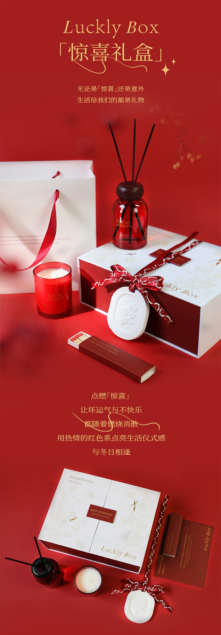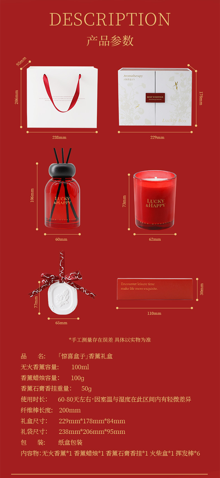 新年香薰蜡烛礼盒红色香熏礼品套装高级感香氛伴手礼情人节送礼物