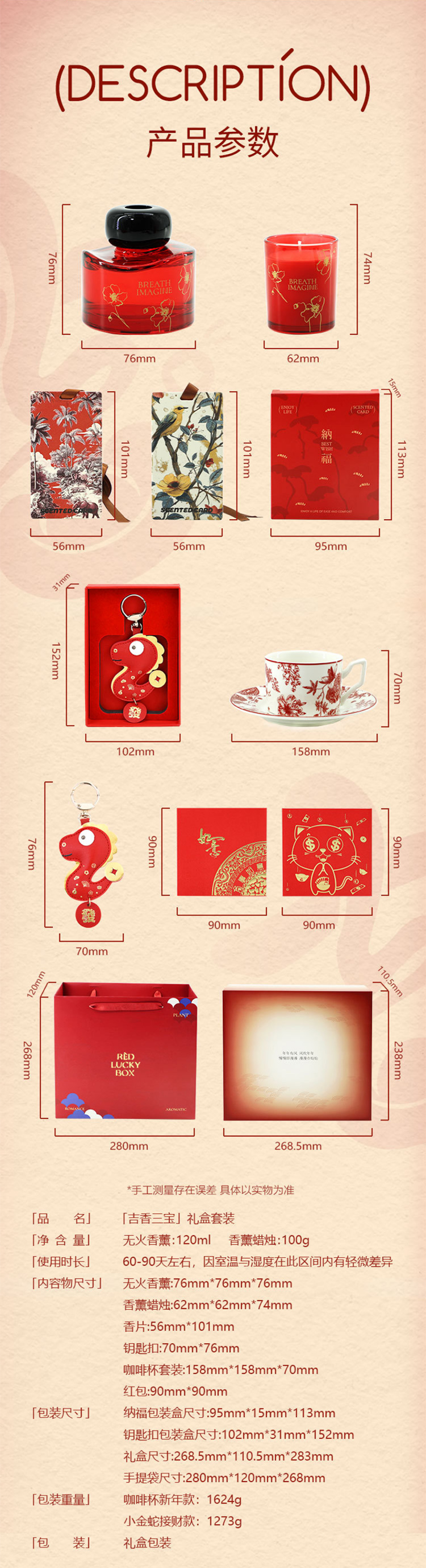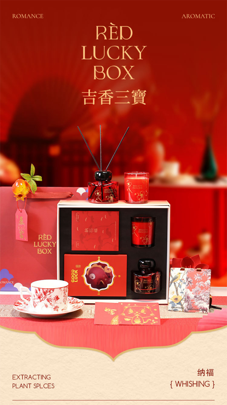 蛇年新年香薰礼盒室内精油蜡烛衣柜香片套装高级无火香熏红色香氛