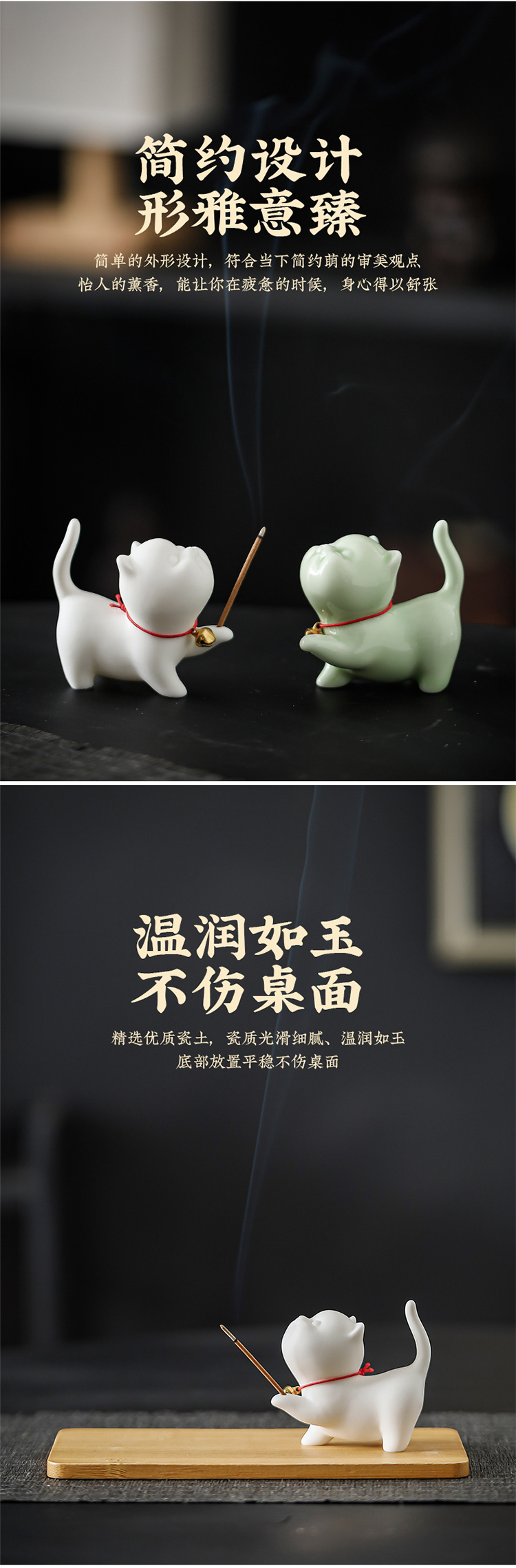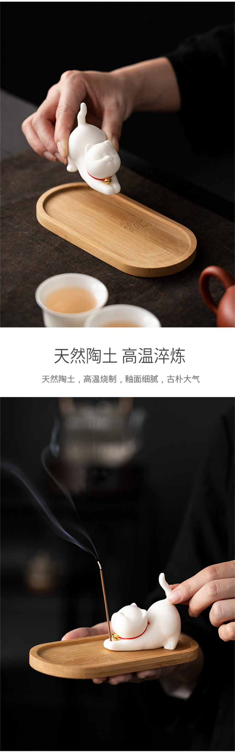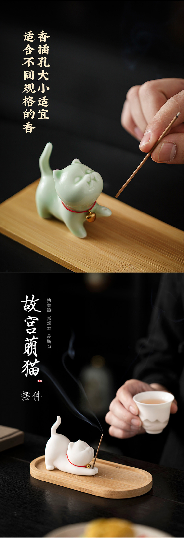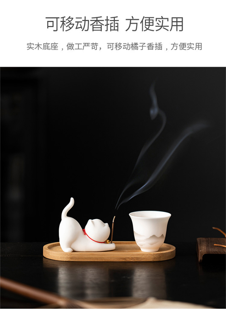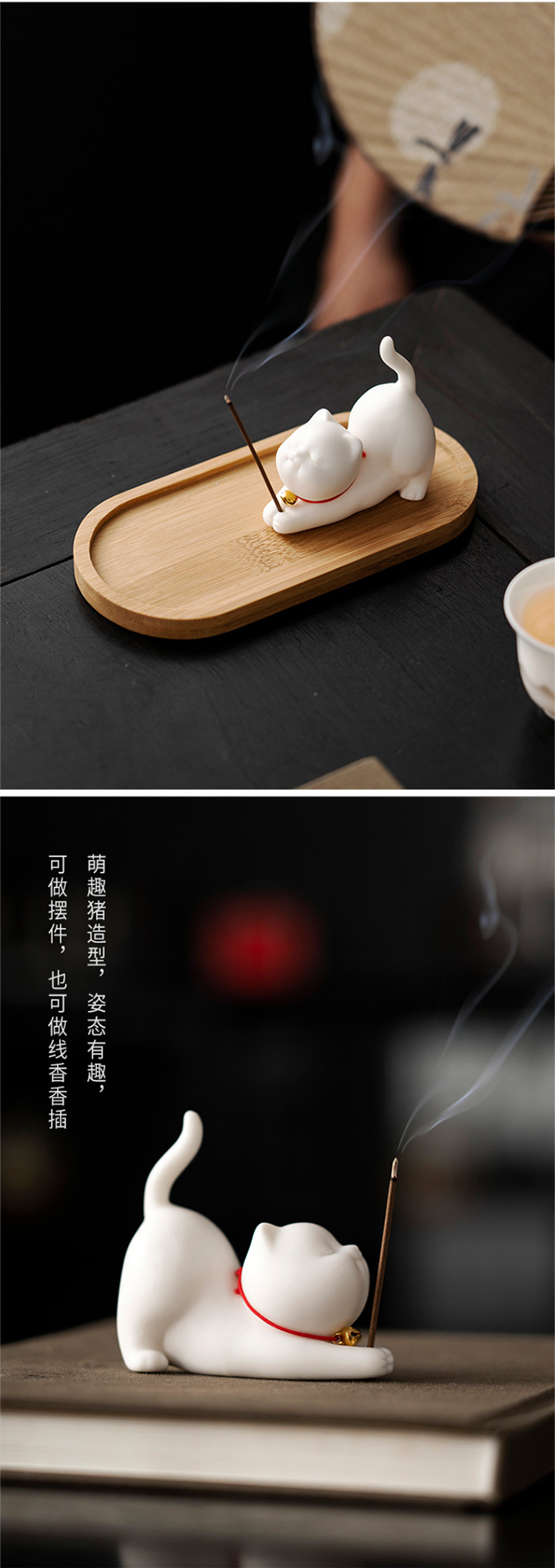 中国风简约陶瓷可爱小猫咪香炉品香闻高档茶宠茶道配件摆件卡通
