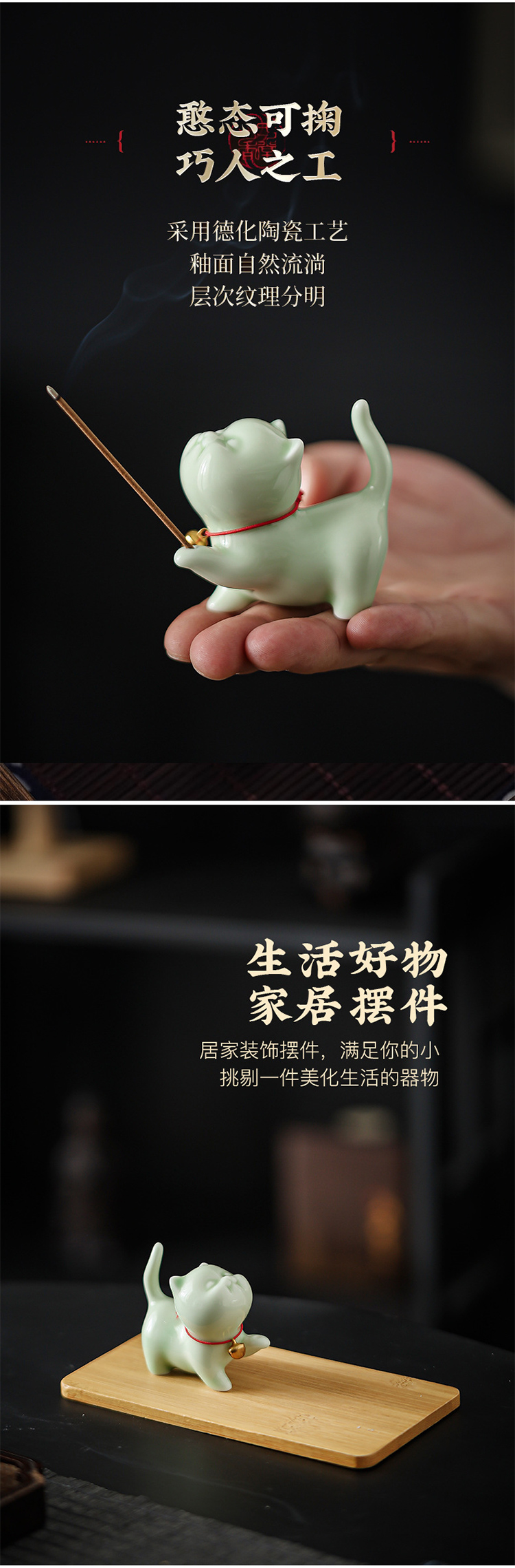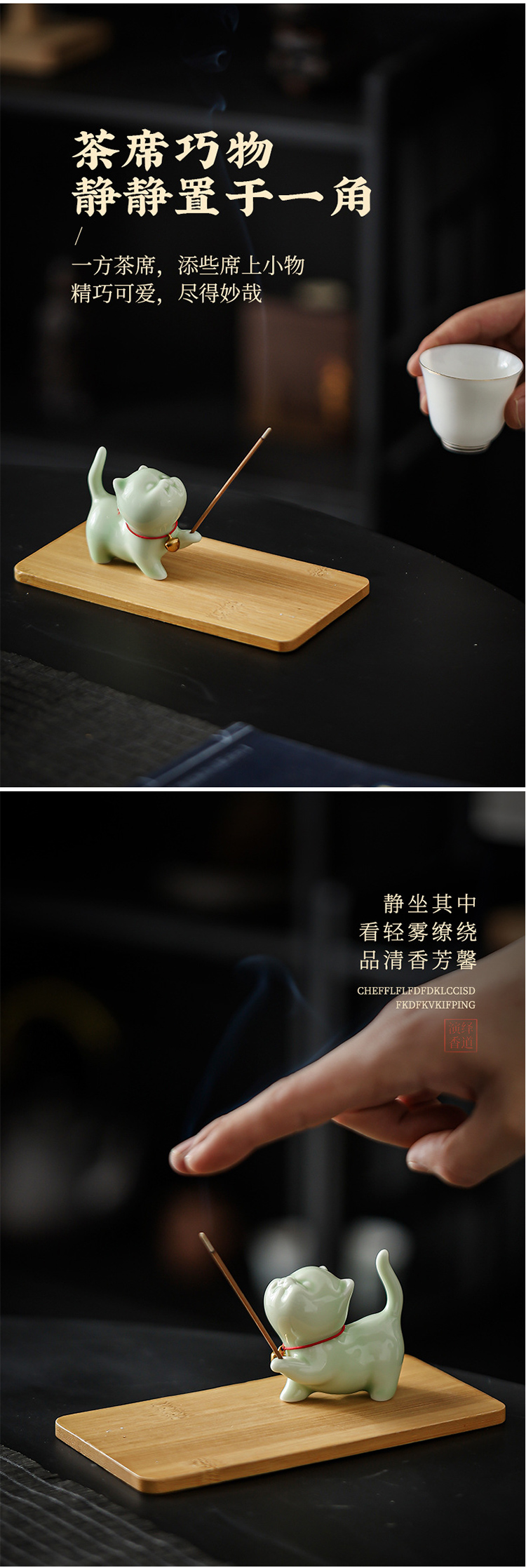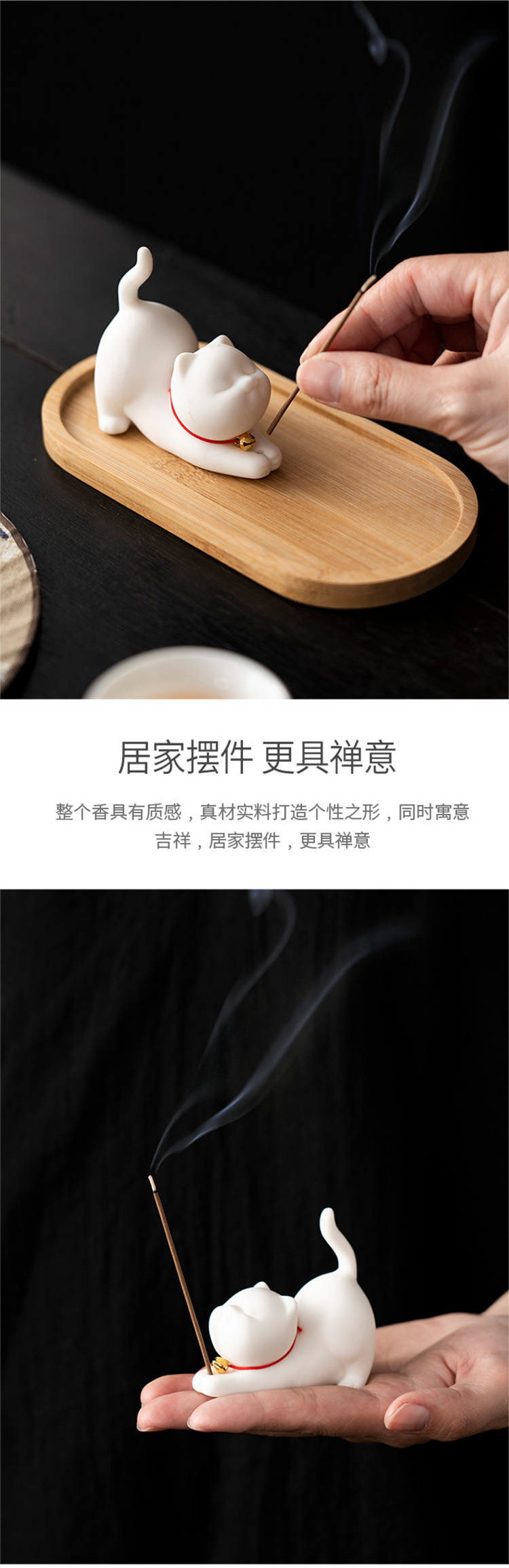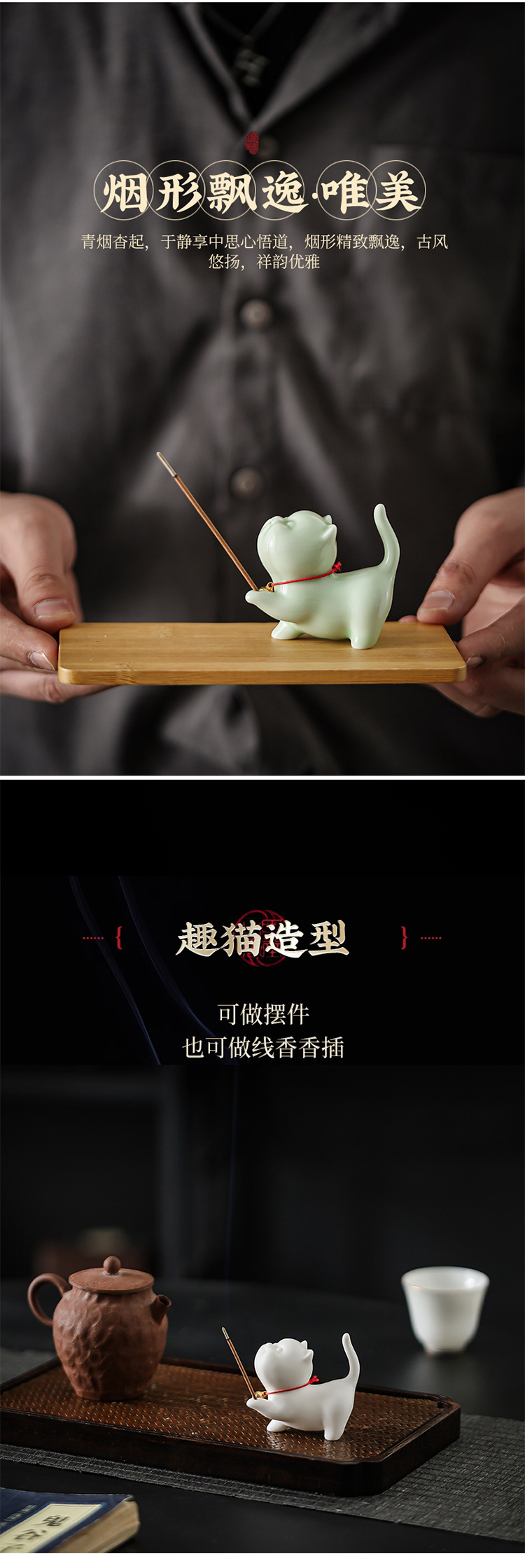 中国风简约陶瓷可爱小猫咪香炉品香闻高档茶宠茶道配件摆件卡通