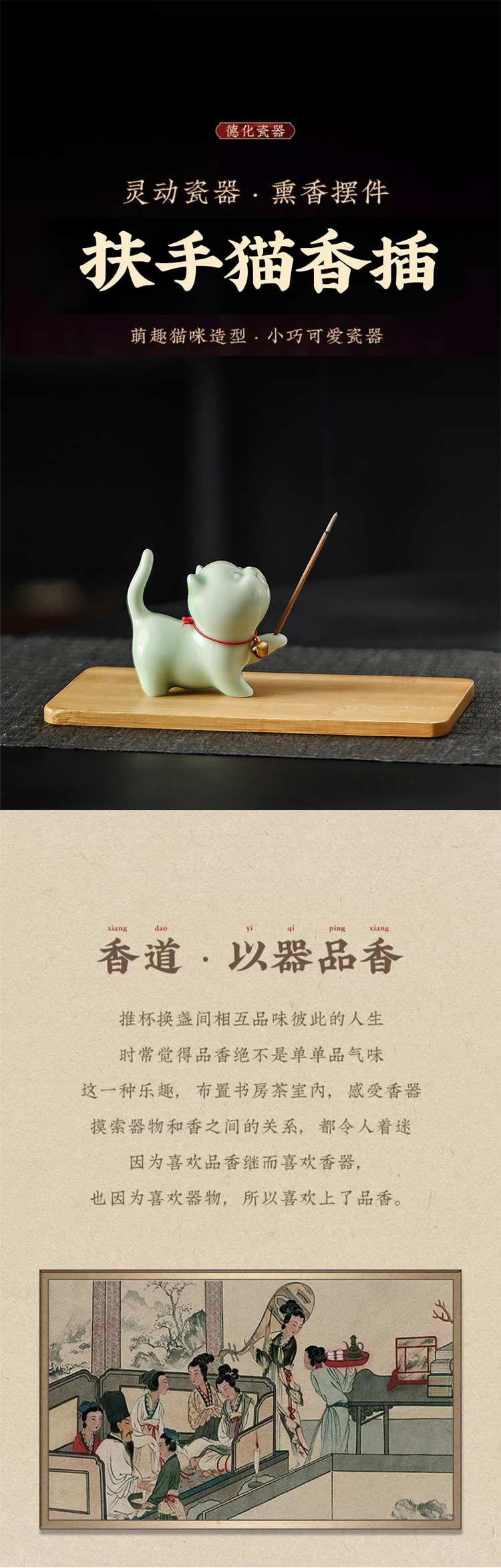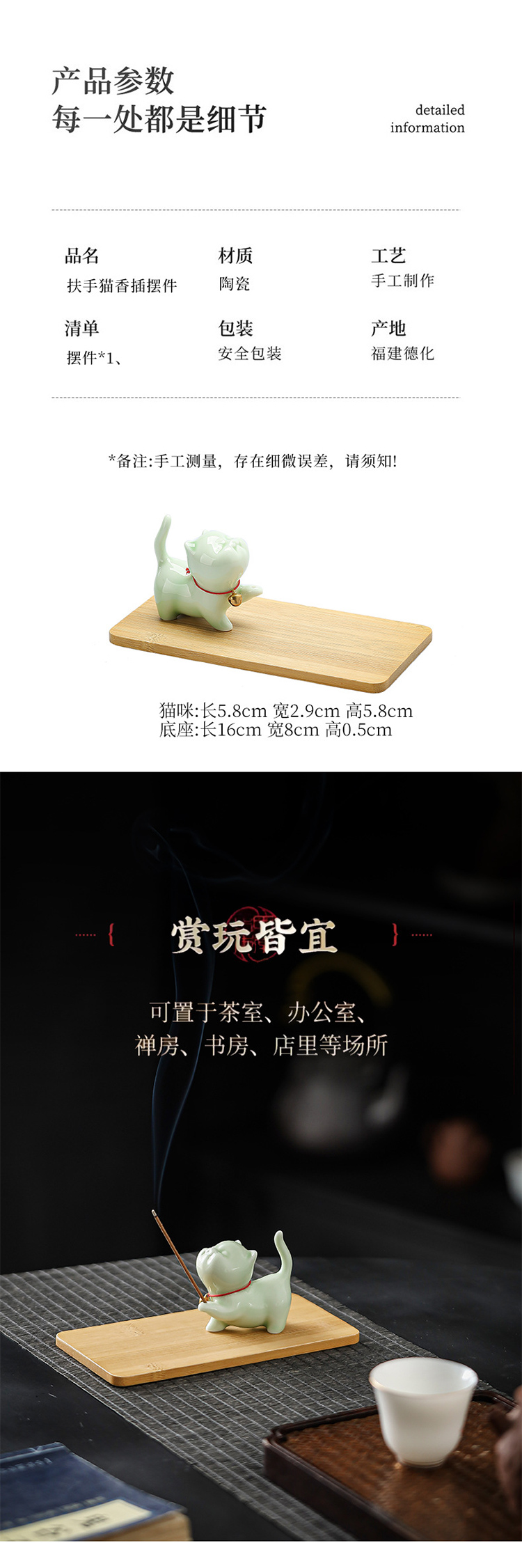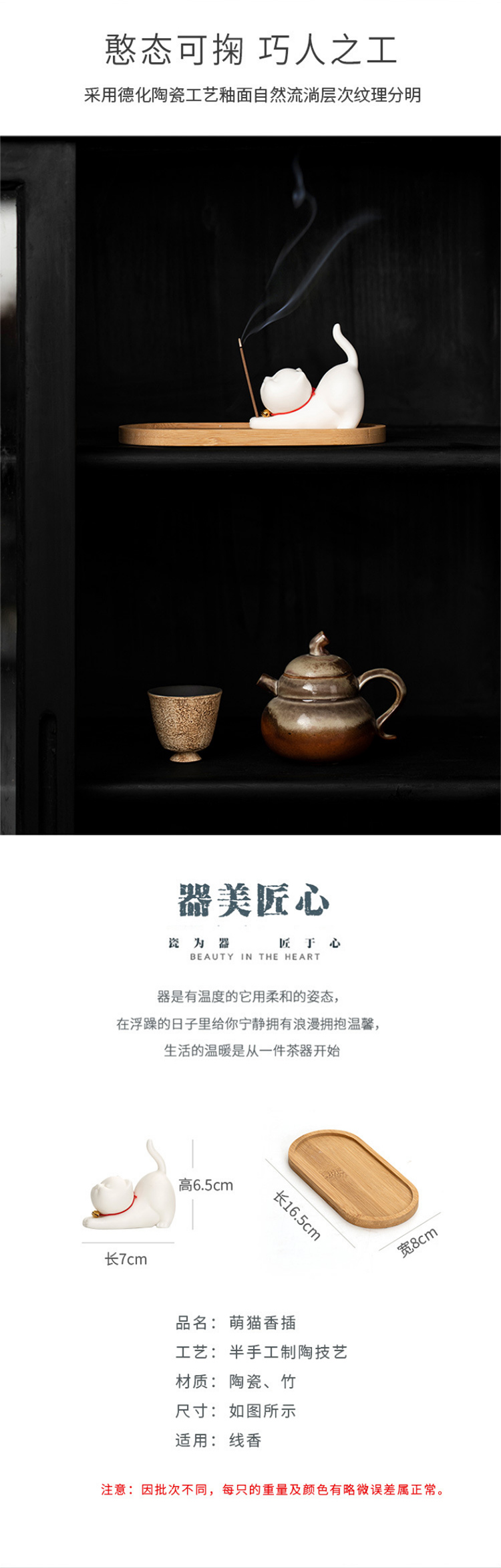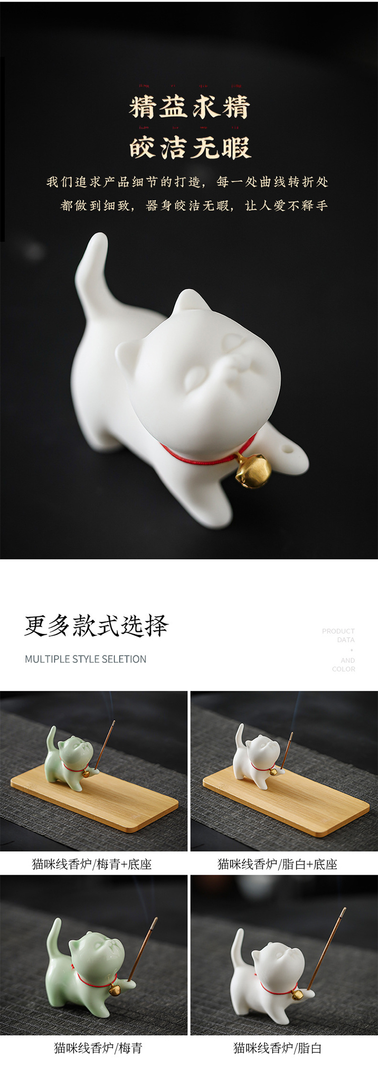 中国风简约陶瓷可爱小猫咪香炉品香闻高档茶宠茶道配件摆件卡通
