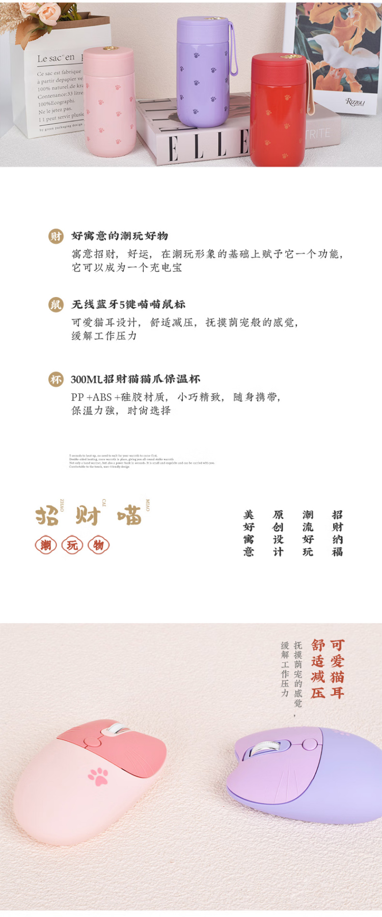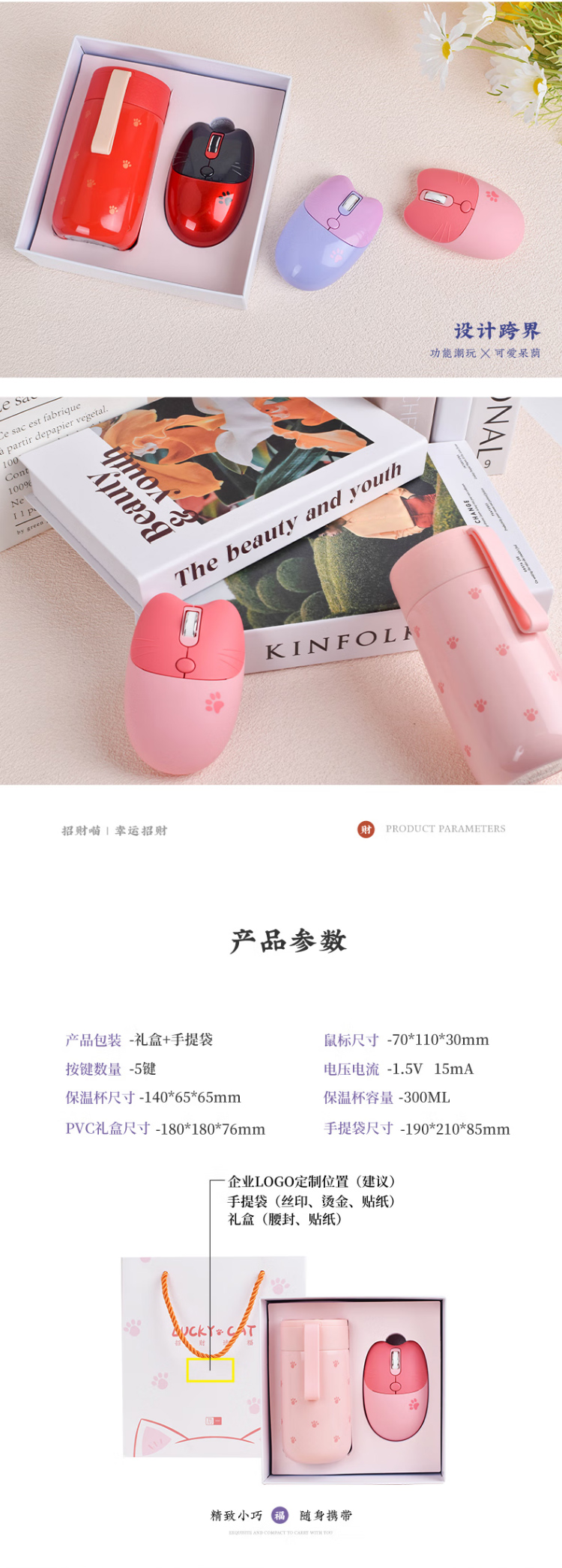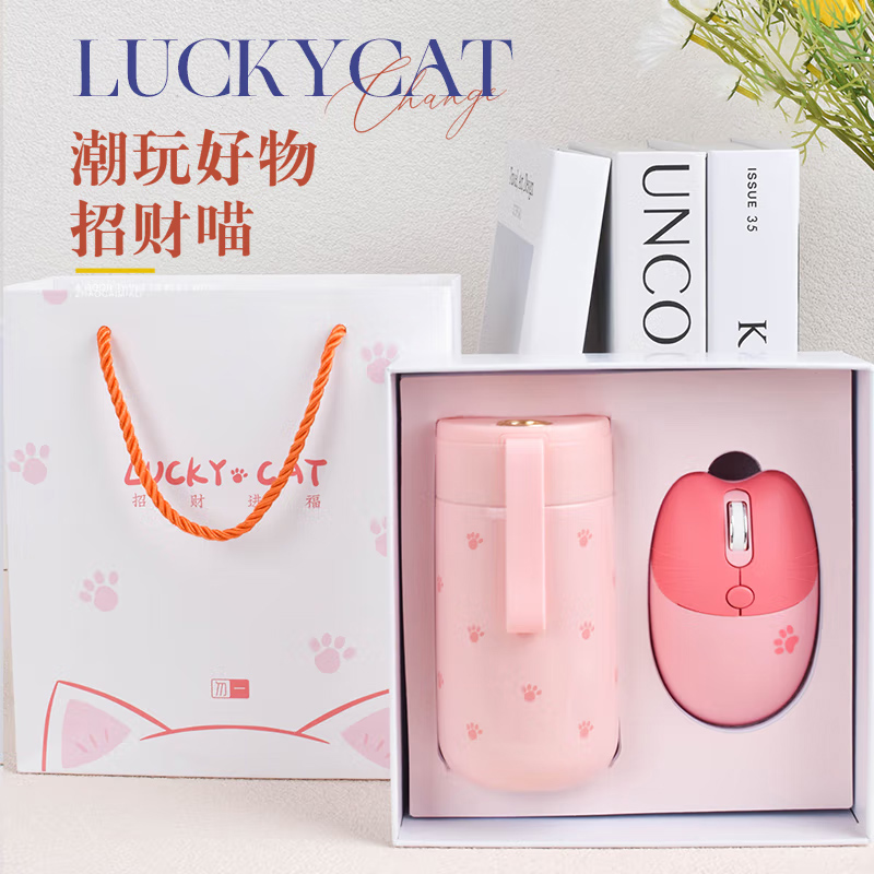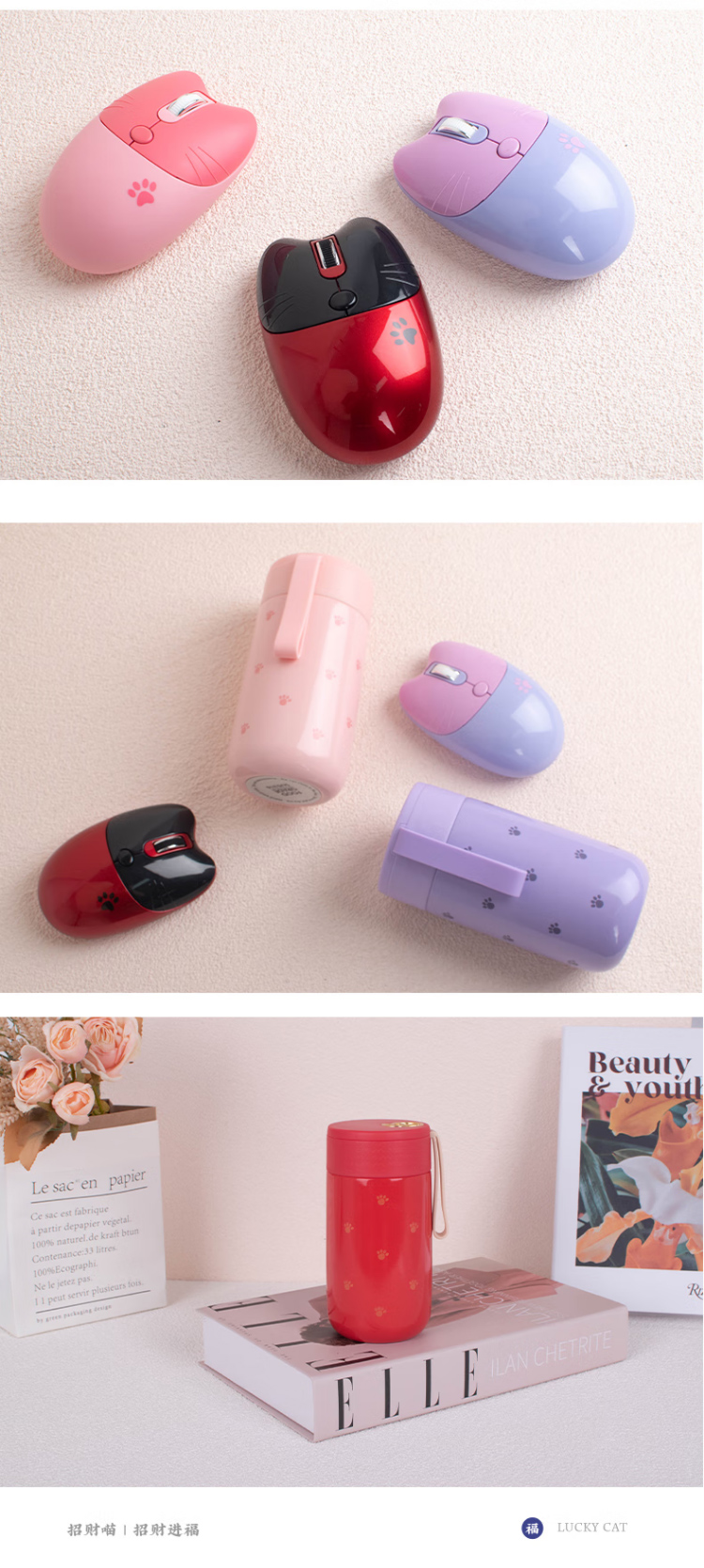招财进福-大肚保温杯+喵萌无线静音鼠标