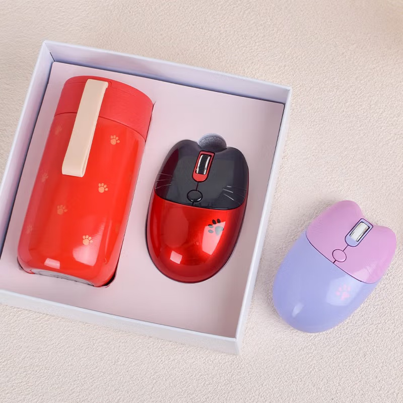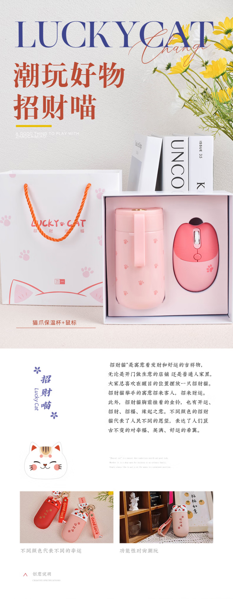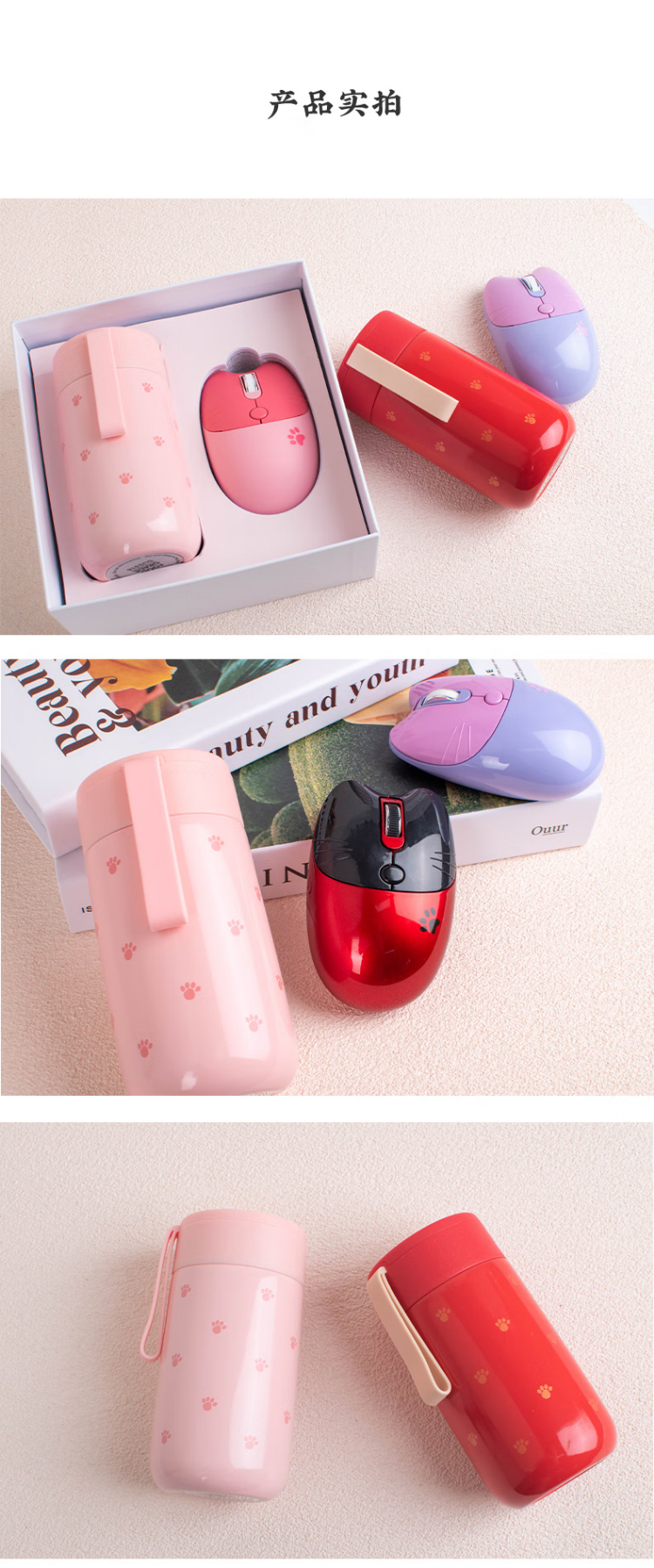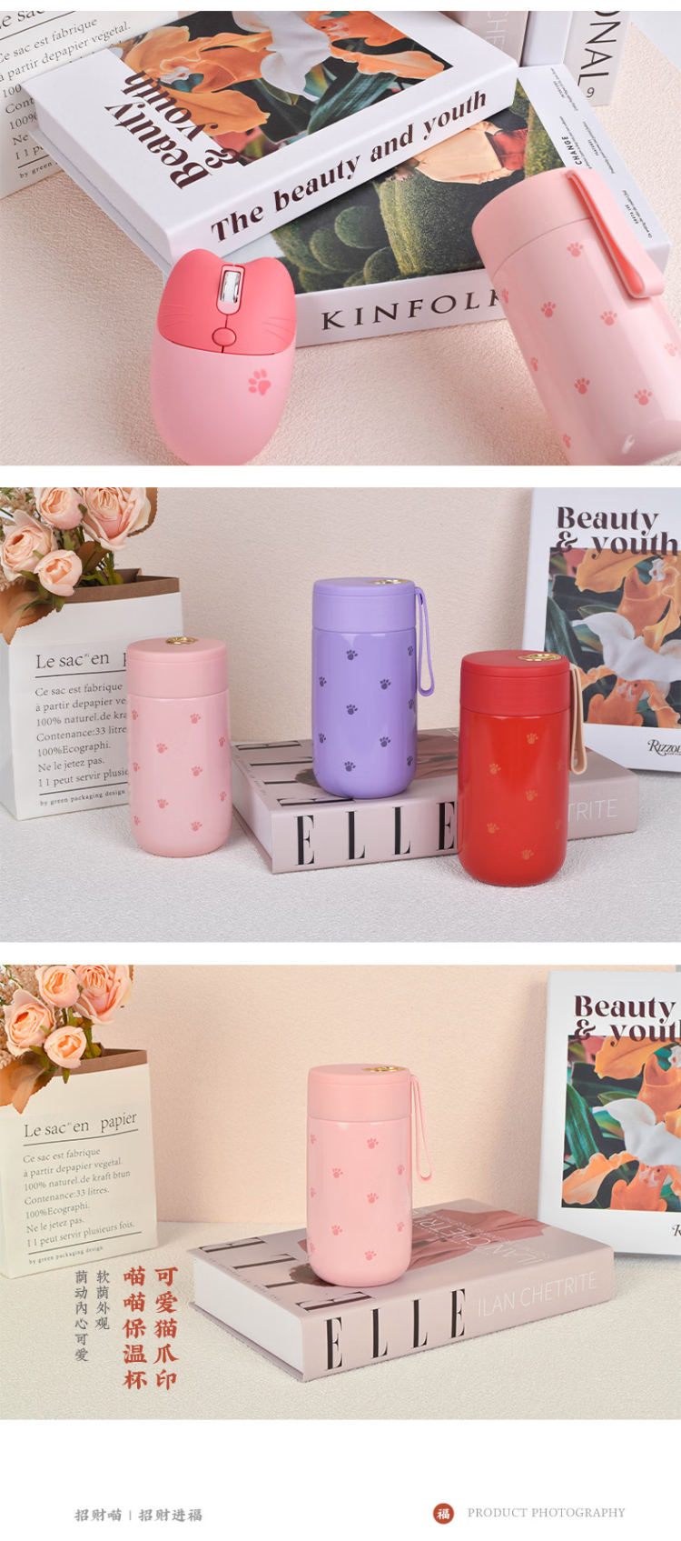 招财进福-大肚保温杯+喵萌无线静音鼠标