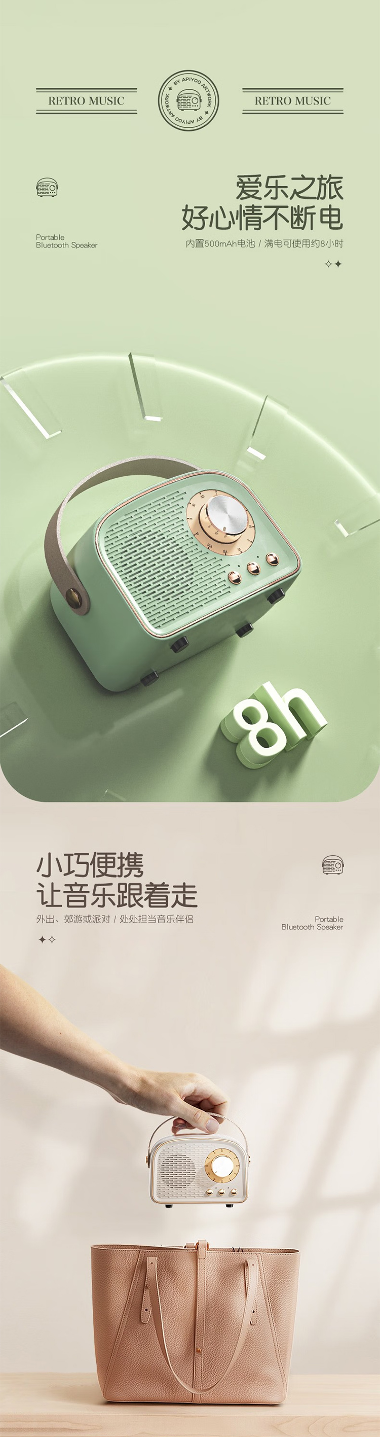 艾优Apiyoo便携式蓝牙音箱精美礼物立体环声大音量