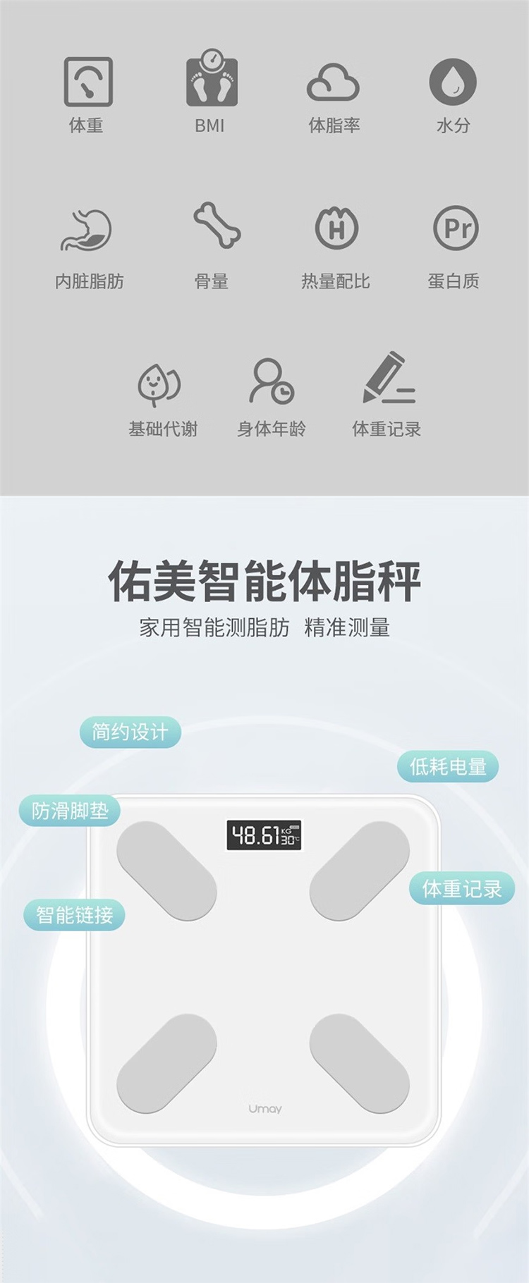 佑美(YOU MEI)体脂秤电子家用智能测脂肪精准体脂称
