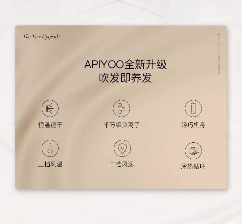 ApiYoo艾优吹风机家用轻音负离子大功率不伤发电吹风速干便携迷你风筒赠男士女士生日情人节礼物