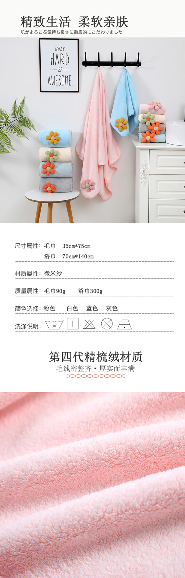 UOMI毛巾礼盒套装微米纱太阳花毛巾柔软亲肤家用女洗脸巾裹巾