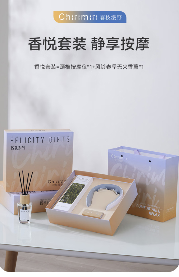 春枝漫野Chirimiri颈椎按摩器颈部按摩仪高档礼品【颈椎仪+香薰礼盒】企业福利礼赠创意暖心健康礼TZ-003