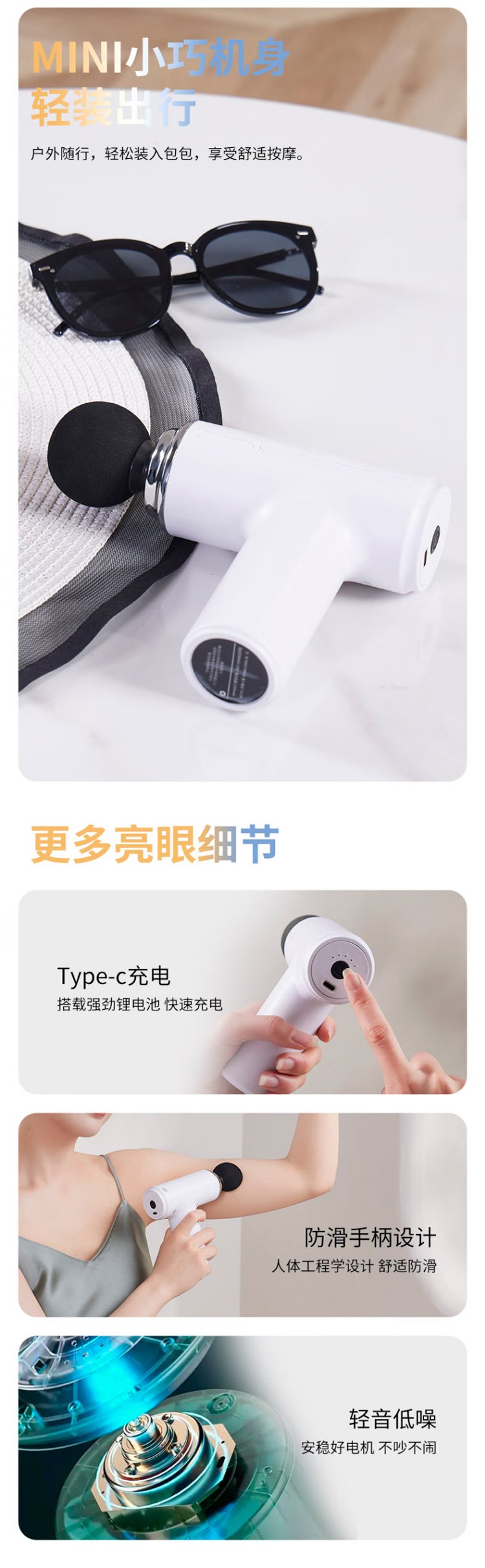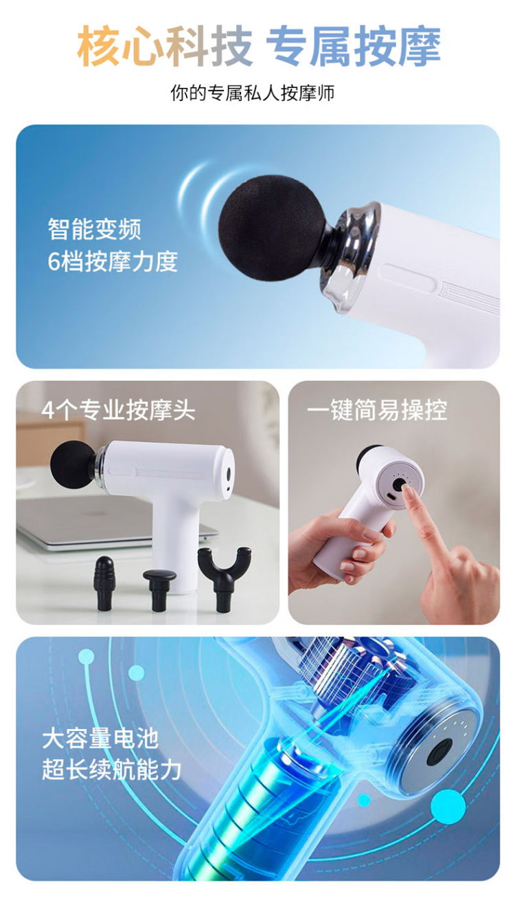 春枝漫野Chirimiri劲量变频迷你筋膜枪电动按摩器专业级便携式健身肌肉放松仪肩经颈椎腿足腰部 CF-01