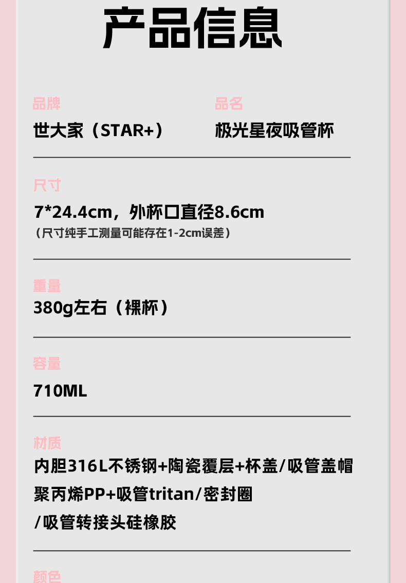 世大家极光星夜吸管杯