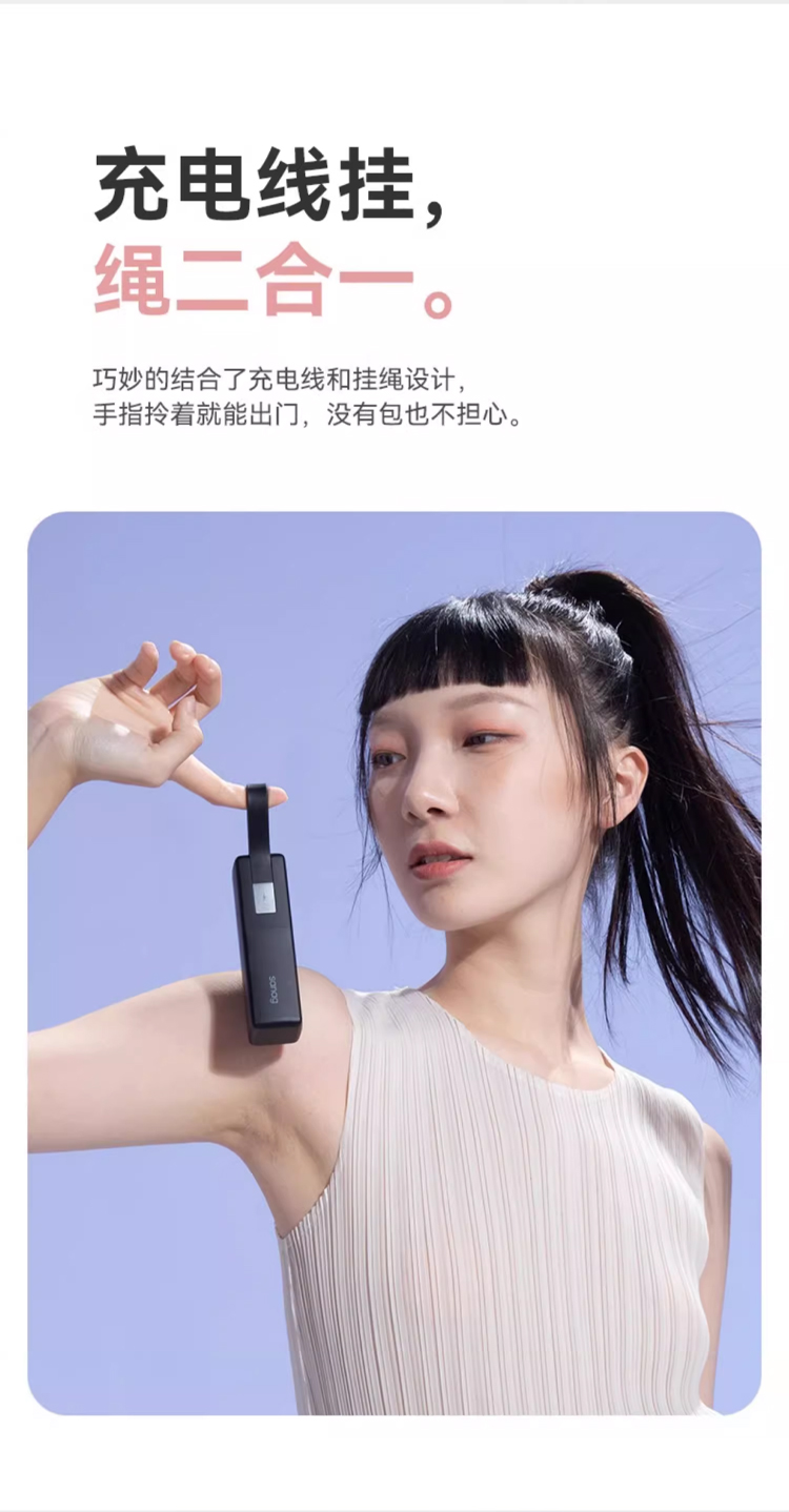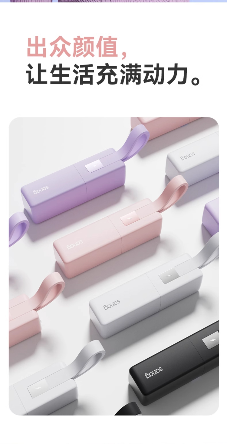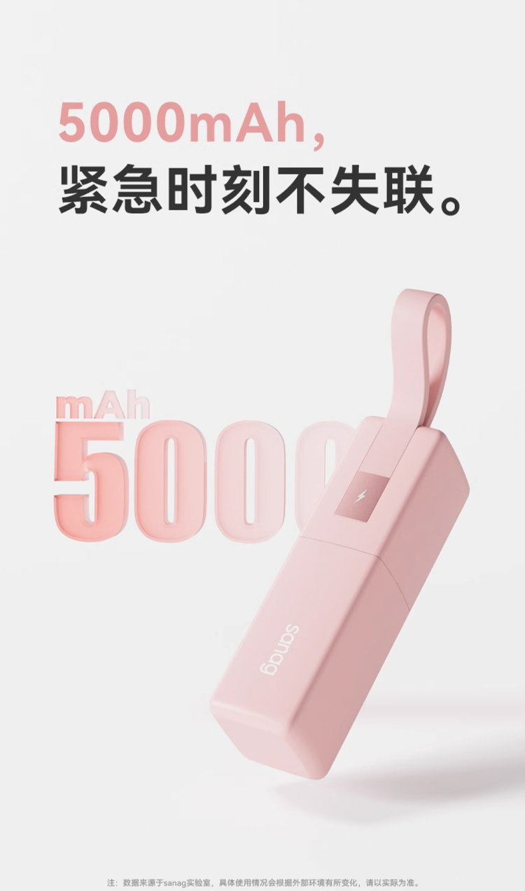 sanag塞那充电宝小巧便携二合一自带线迷你移动电源适用iPhone15苹果14/13Pro小米华为快充12W闪充手机支