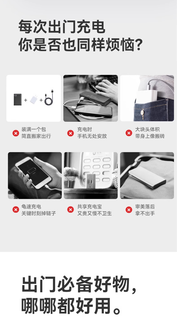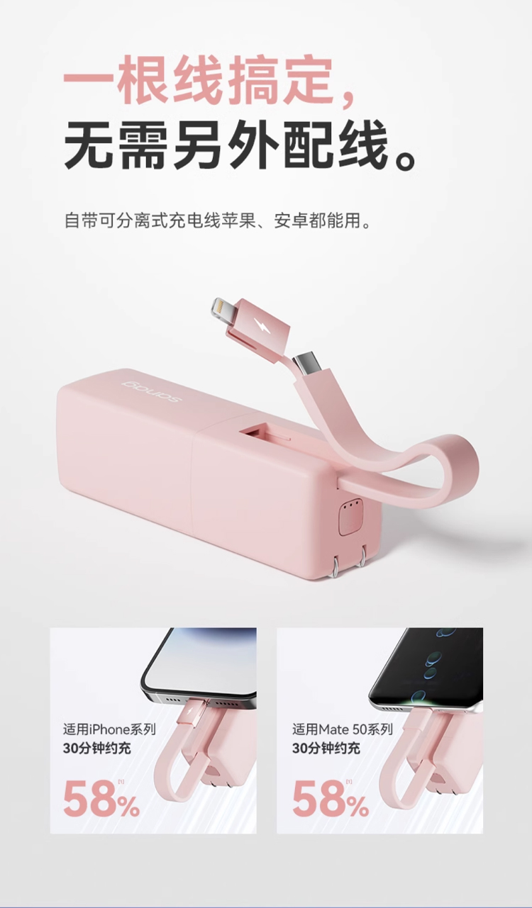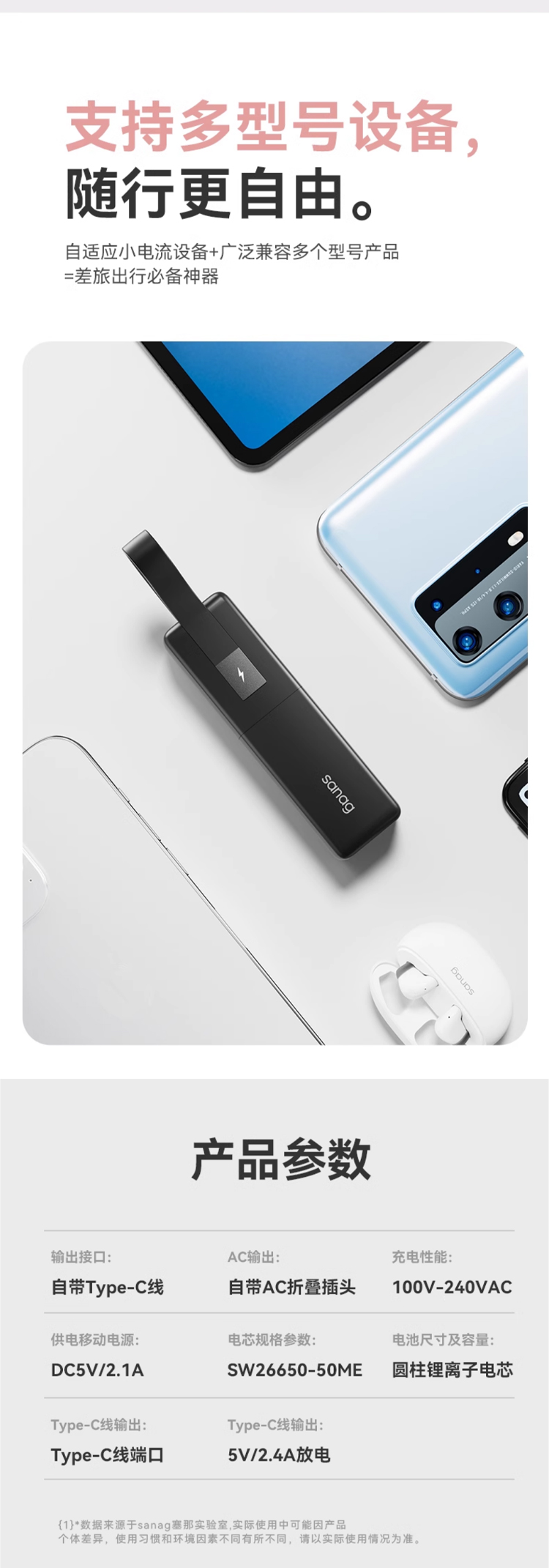 sanag塞那充电宝小巧便携二合一自带线迷你移动电源适用iPhone15苹果14/13Pro小米华为快充12W闪充手机支
