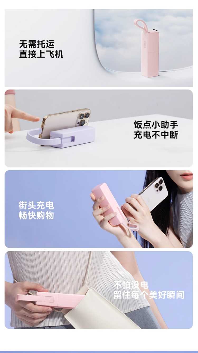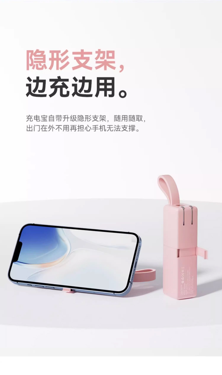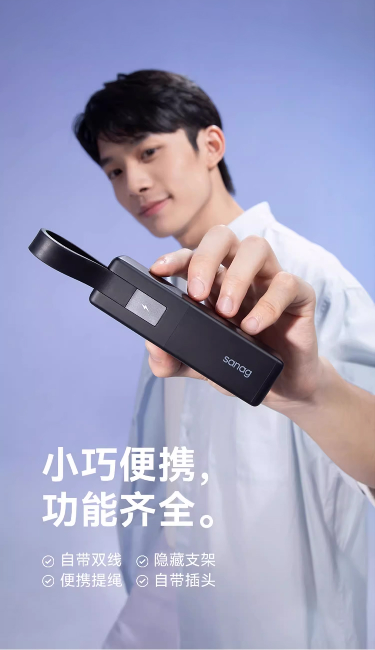 sanag塞那充电宝小巧便携二合一自带线迷你移动电源适用iPhone15苹果14/13Pro小米华为快充12W闪充手机支架
