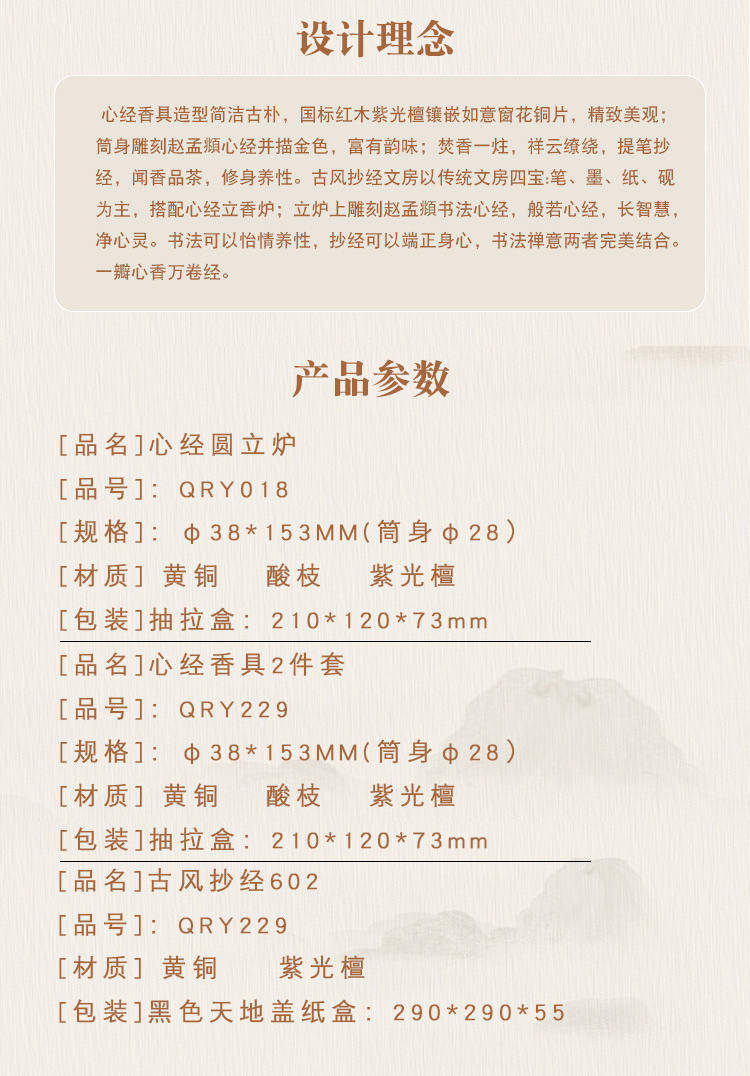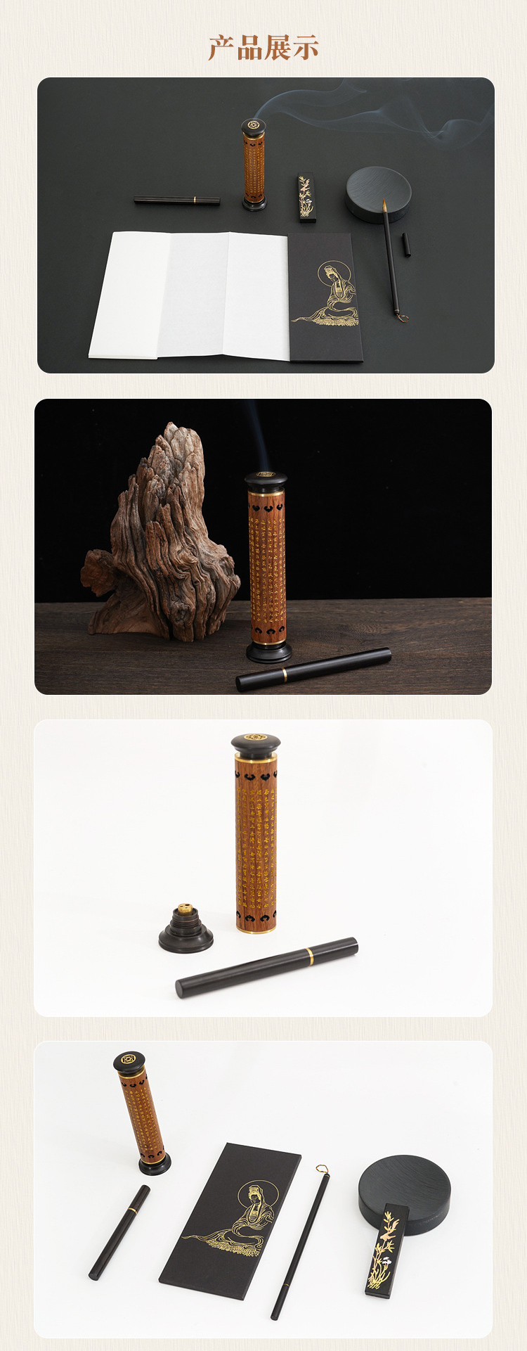 红木禅意书法心经圆立式香炉熏香炉香插线香沉檀香炉创意摆件