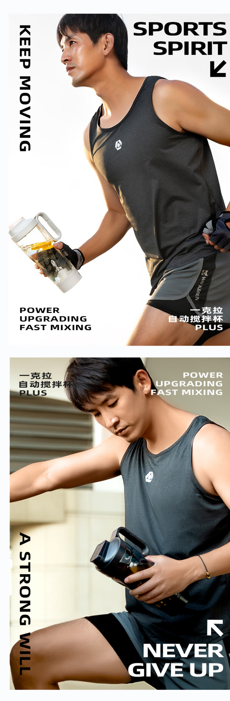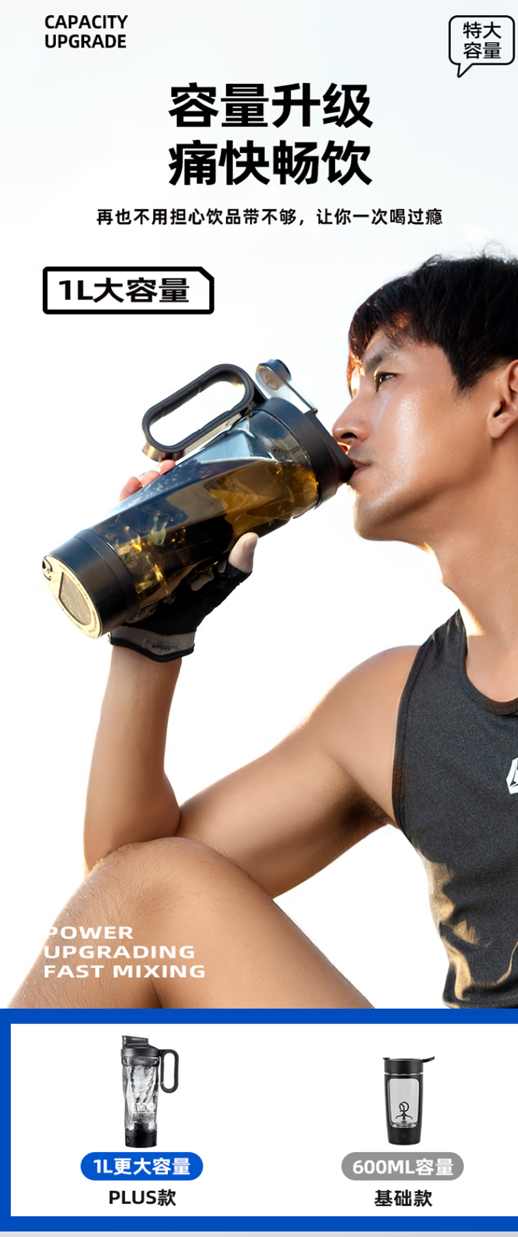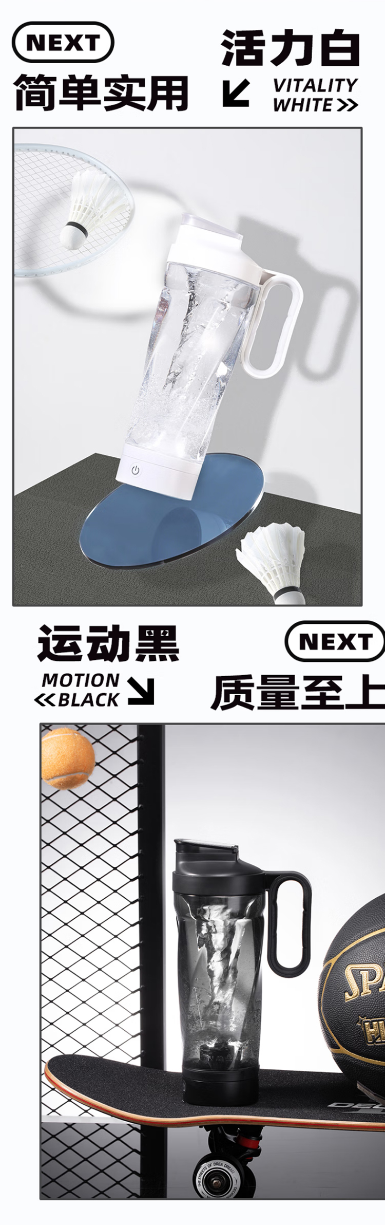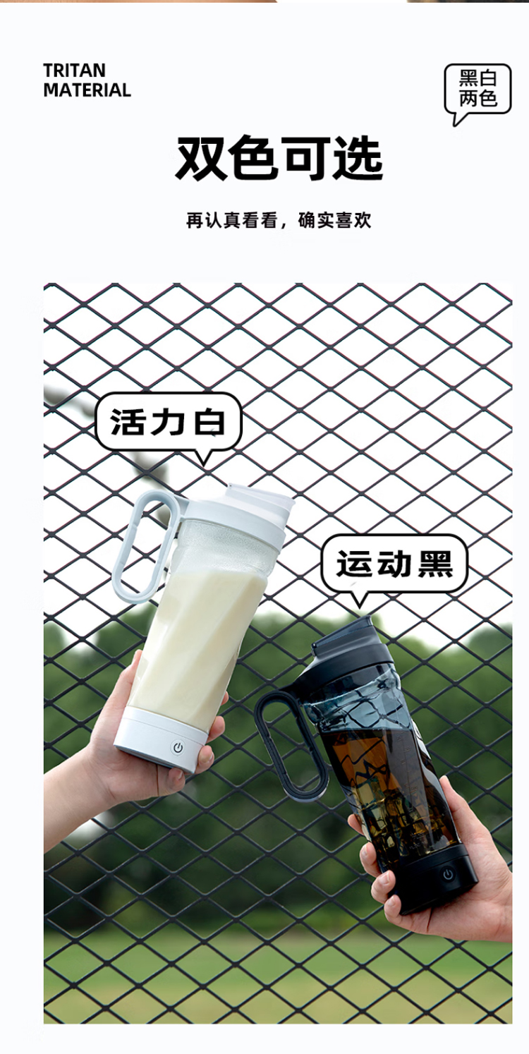 美国MUJU电动搅拌杯摇摇杯全自动咖啡杯便捷健身蛋白摇粉杯 活力白 1000ml