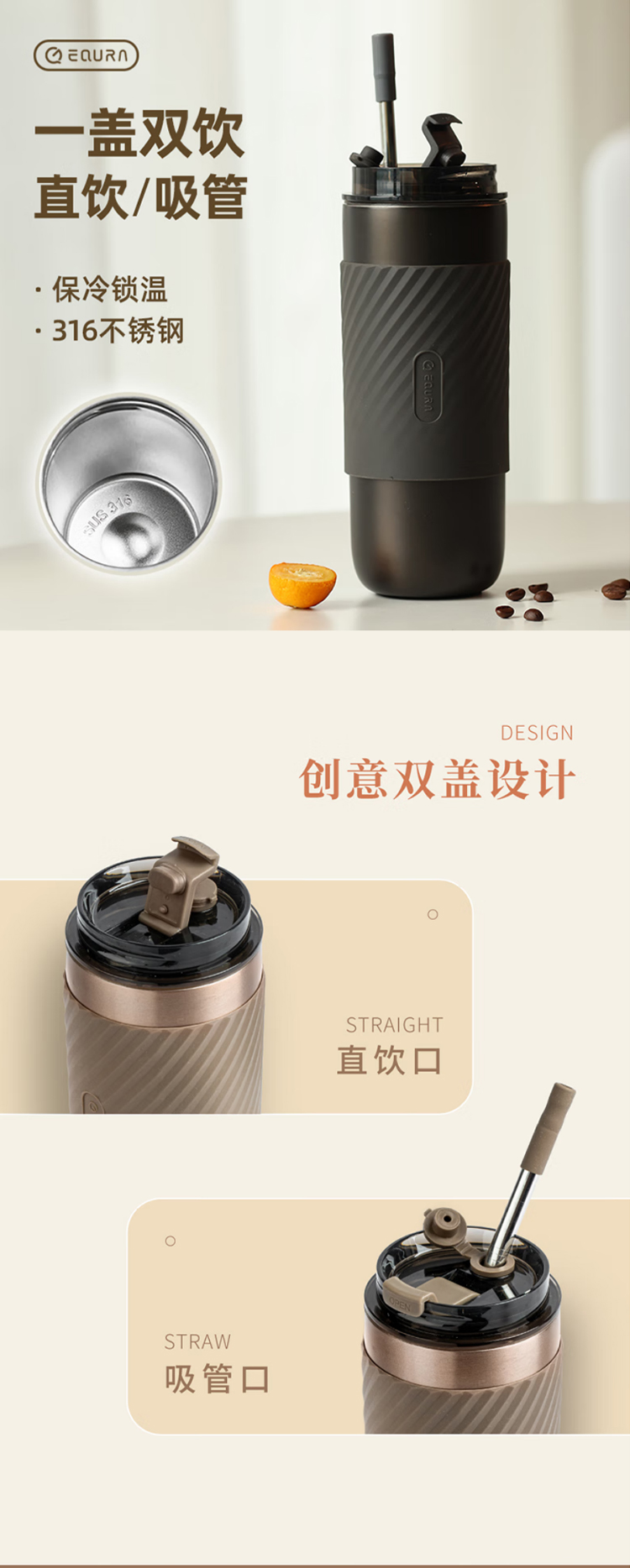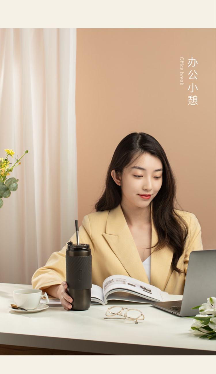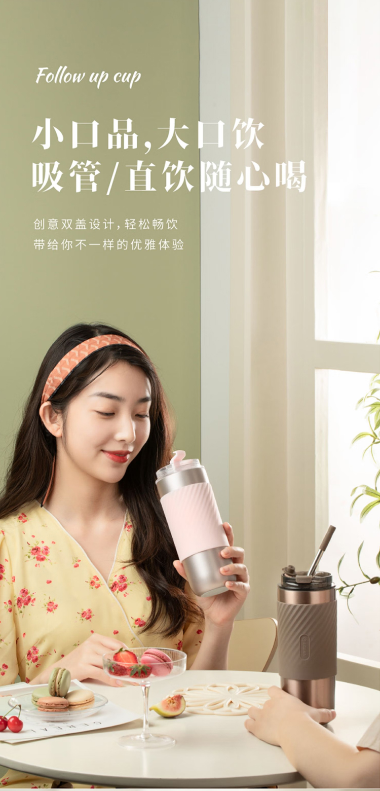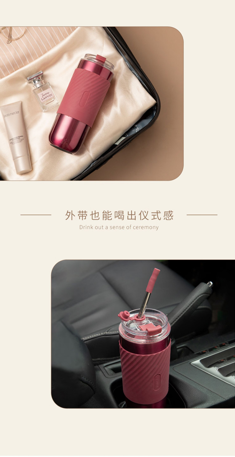 保温水杯男女士款咖啡随行大容量3不锈钢便携保冰冷盖带吸管 520ml