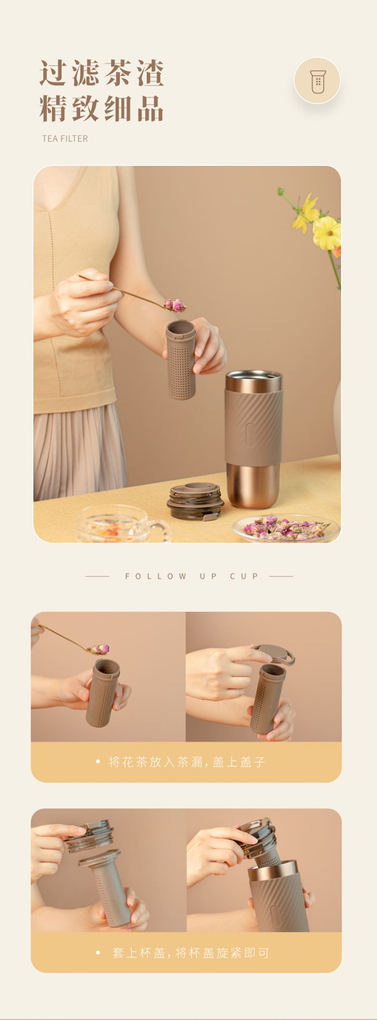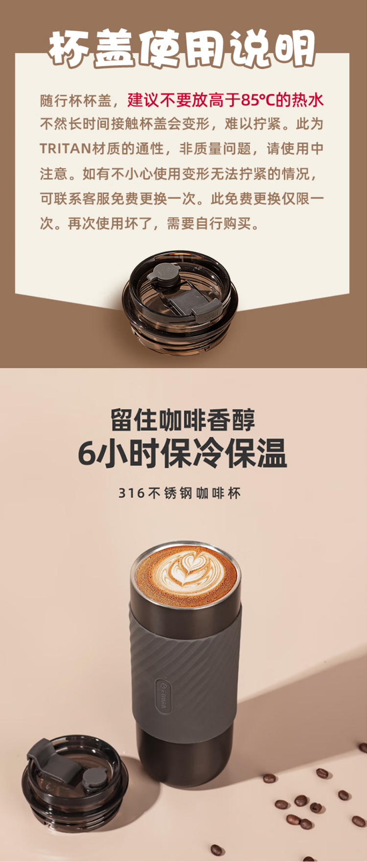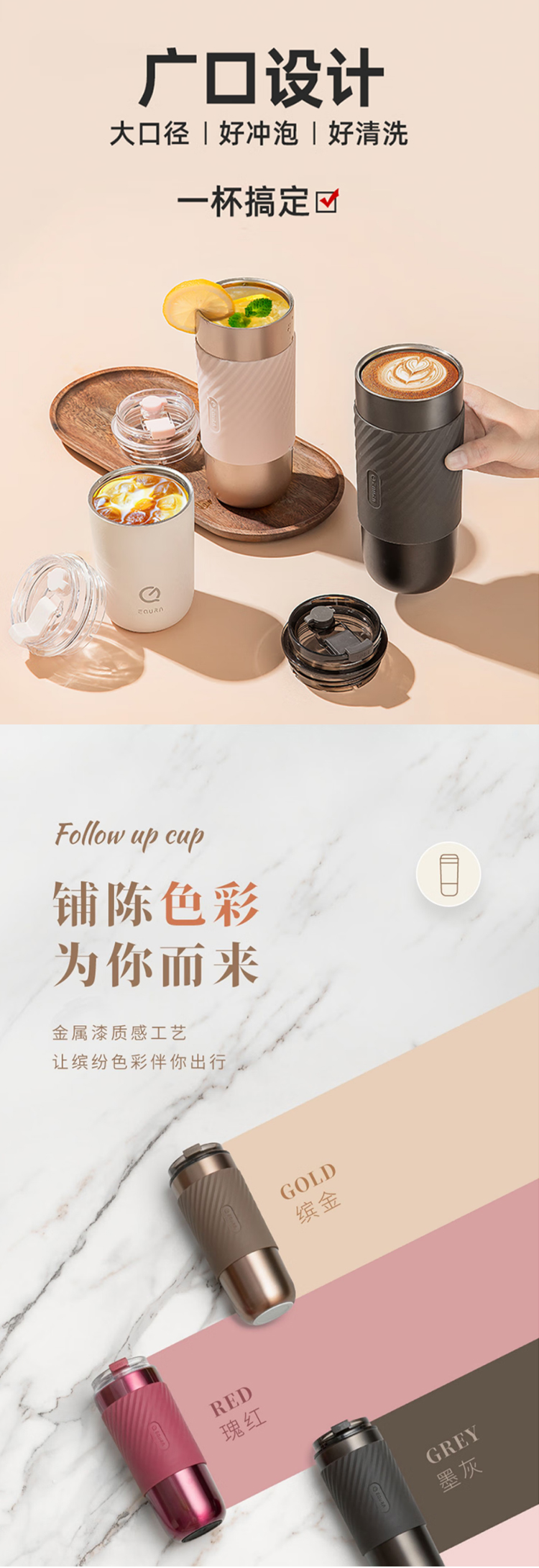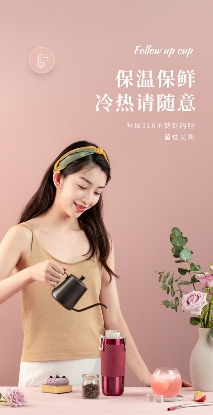 保温水杯男女士款咖啡随行大容量3不锈钢便携保冰冷盖带吸管 520ml