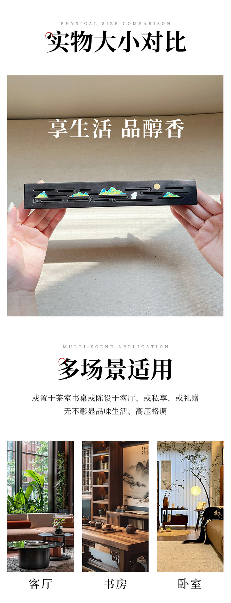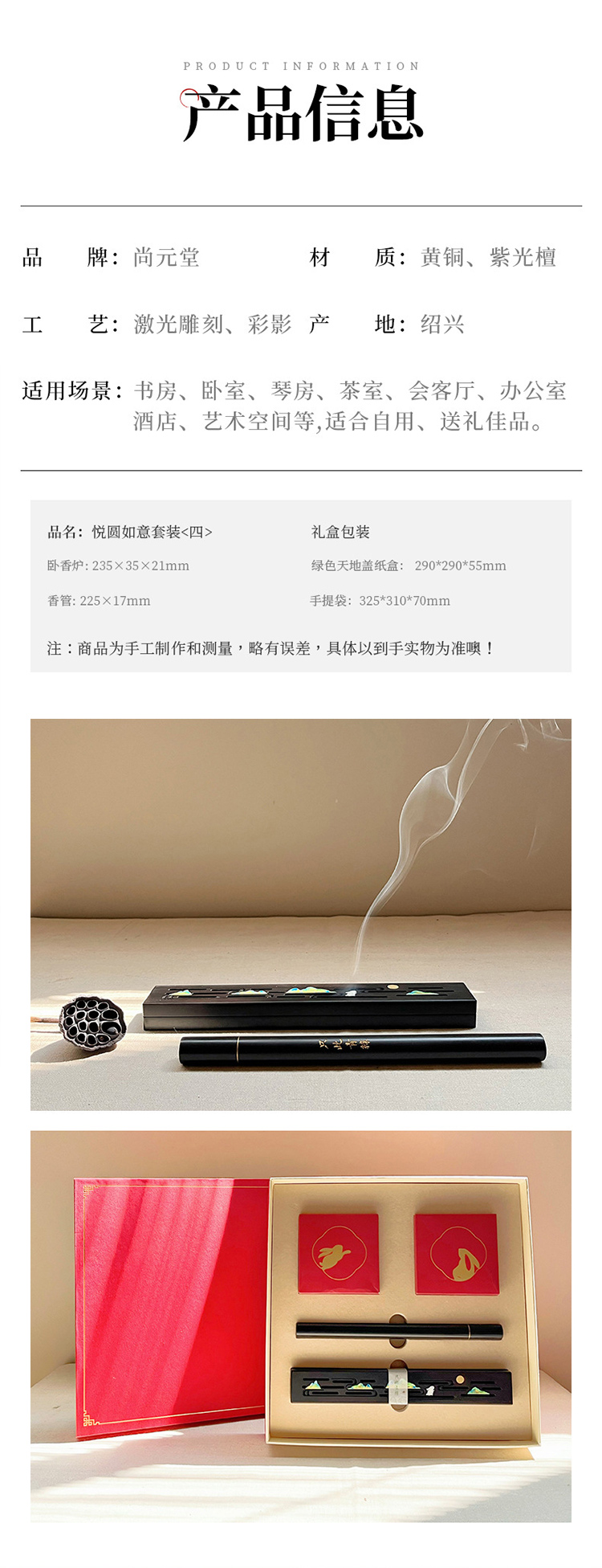 香炉家用上香酸枝木黄铜室内香插摆件木质工艺品礼盒装小香炉熏香