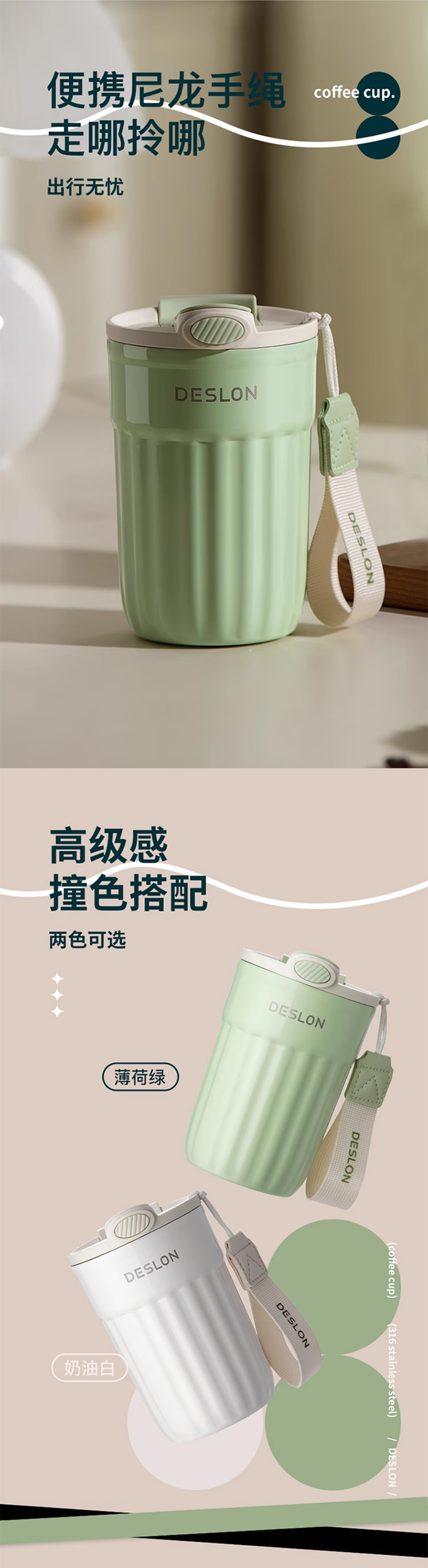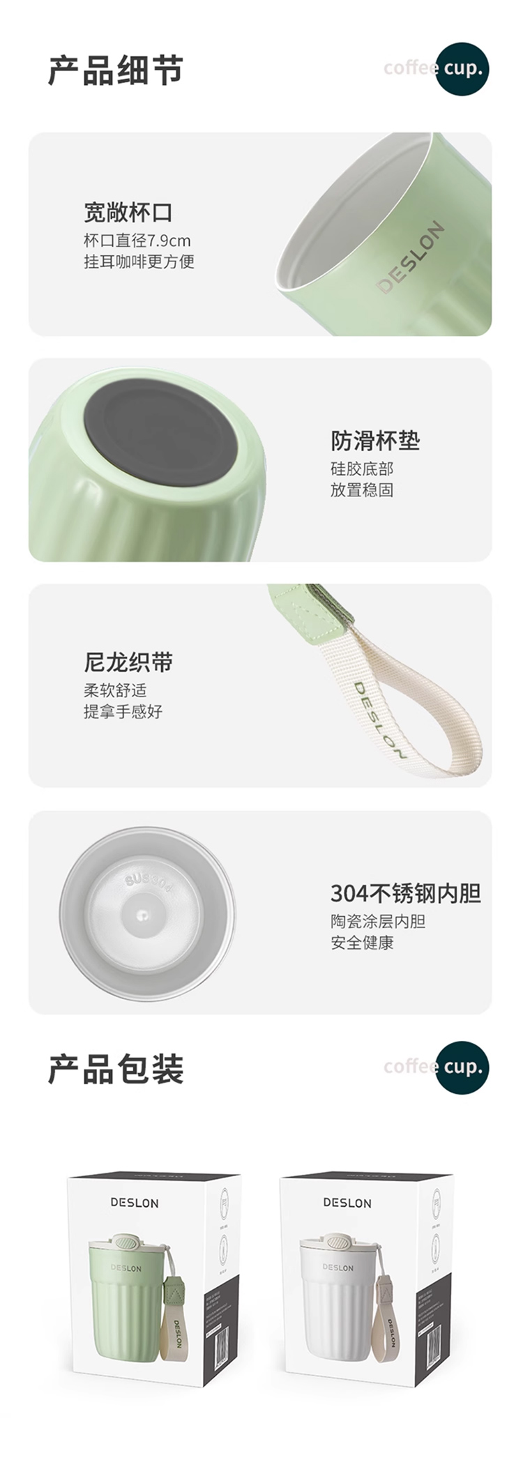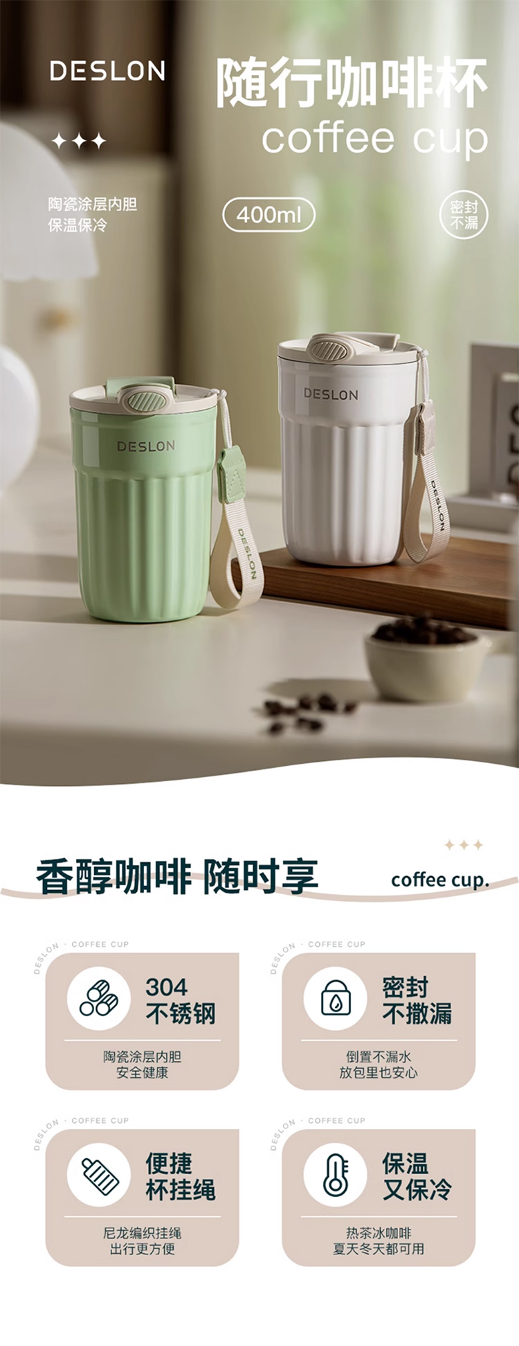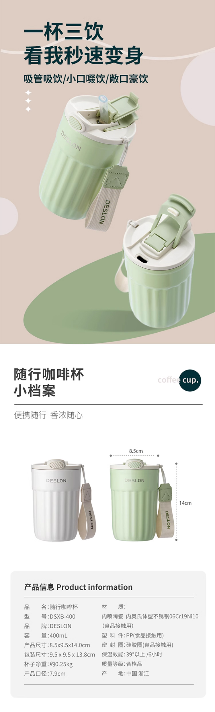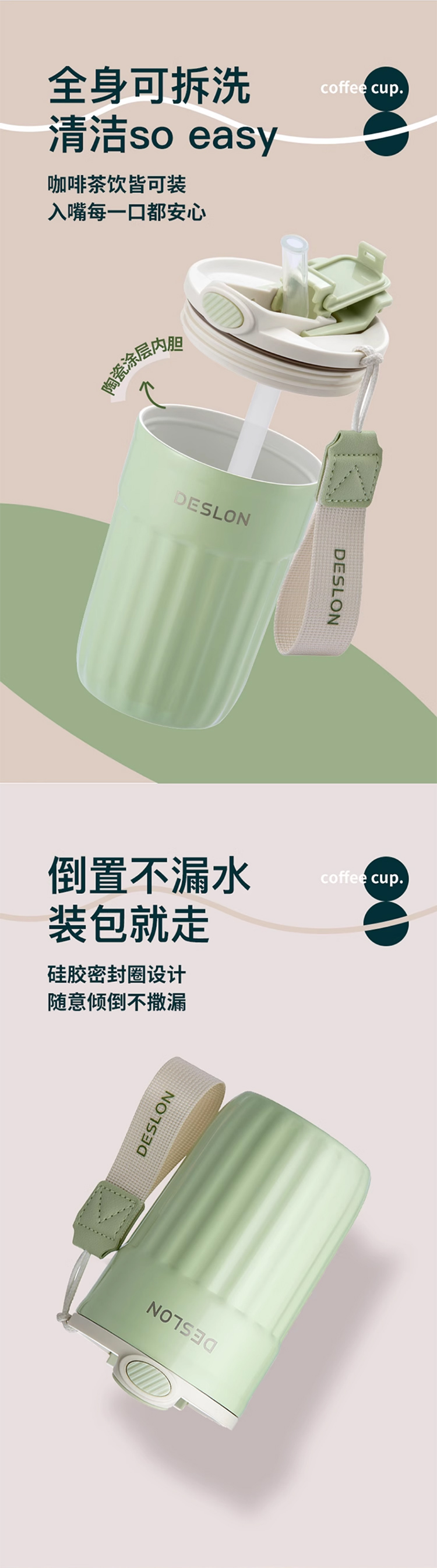 德世朗陶瓷内胆高颜值水杯小巧便携配吸管随行杯咖啡杯子