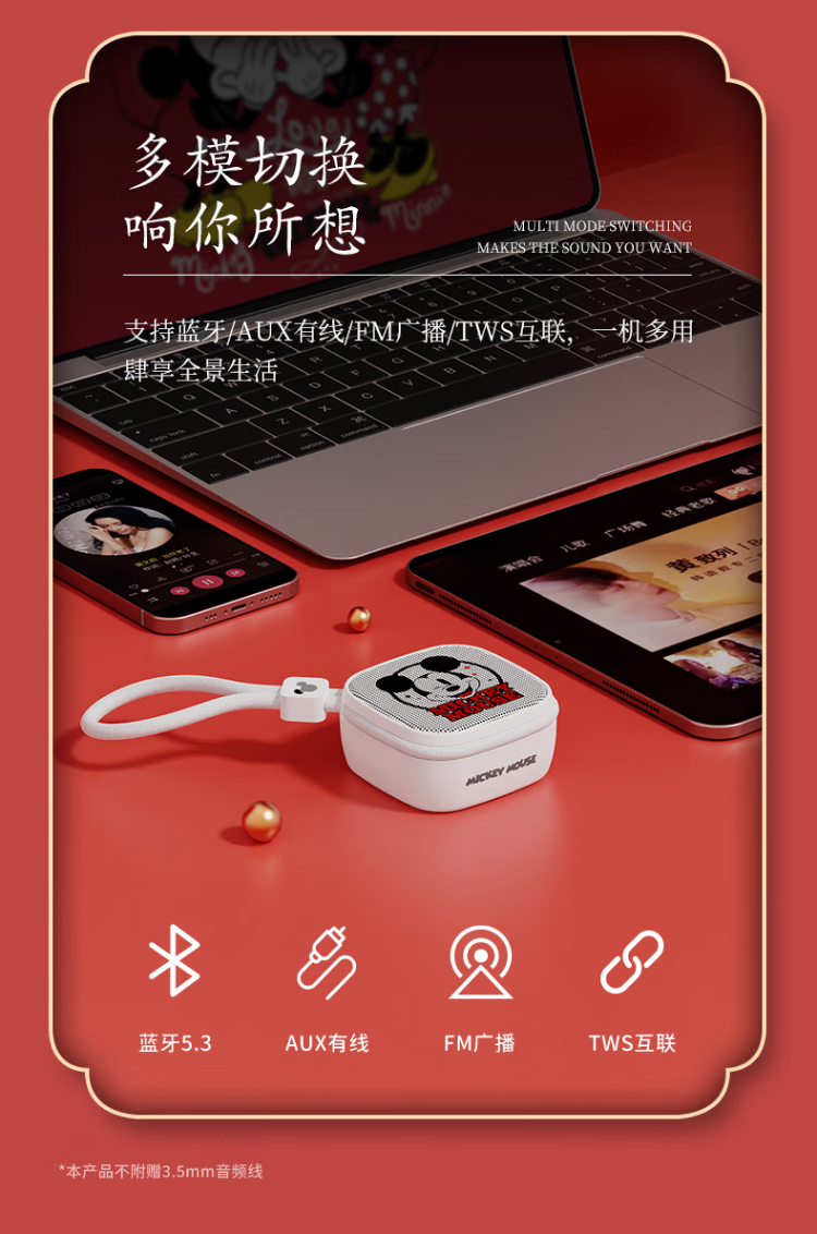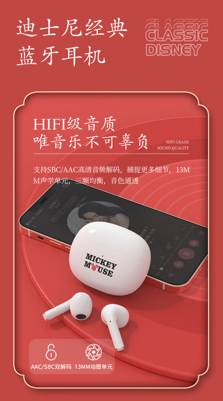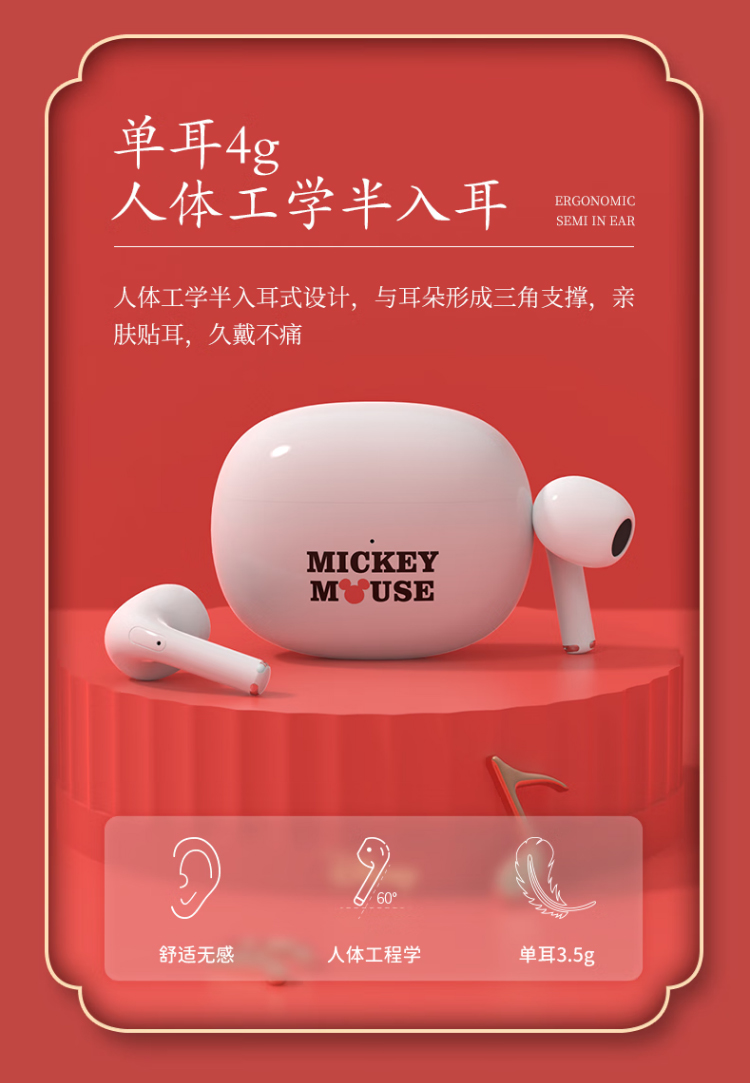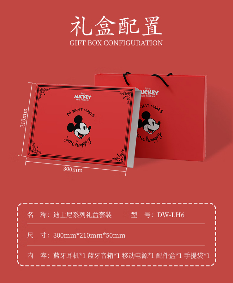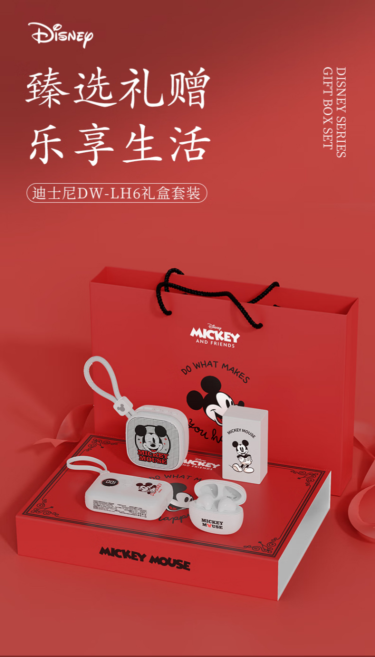 迪士尼(Disney)蓝牙耳机半入耳式 无线超长续航强音质高颜值入耳舒适 高档迪士尼礼盒套装