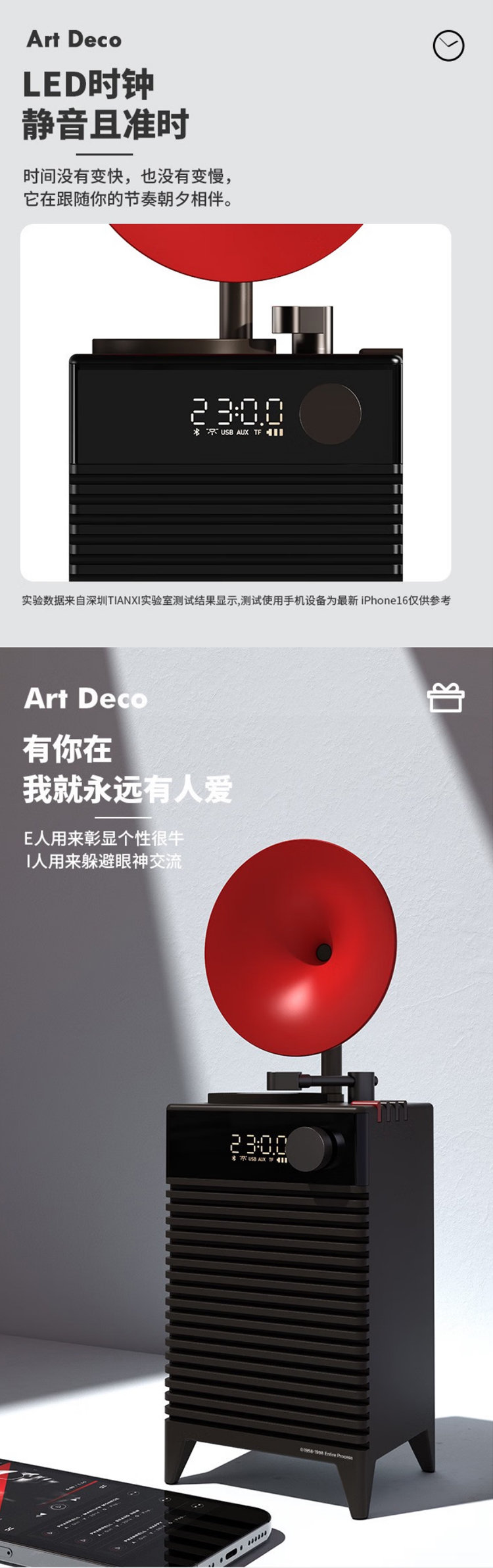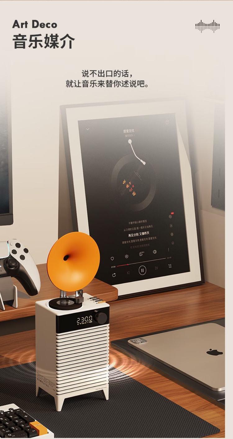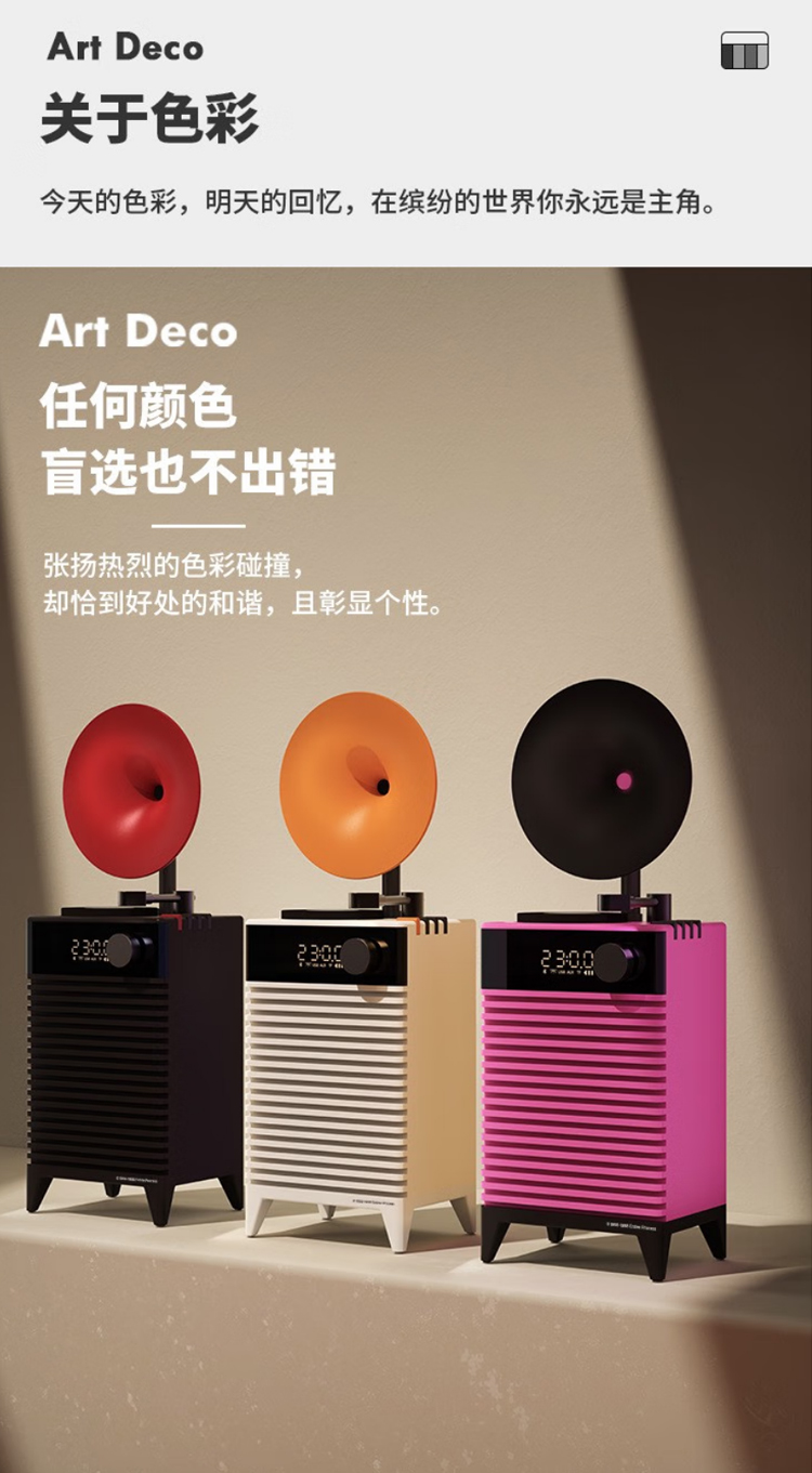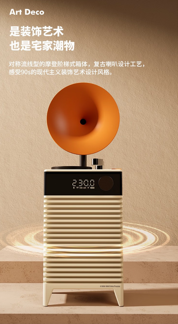 复古摩登art deco蓝牙音箱插卡户外便携无线音响家用低音炮高音质 哥特黑 官方标配