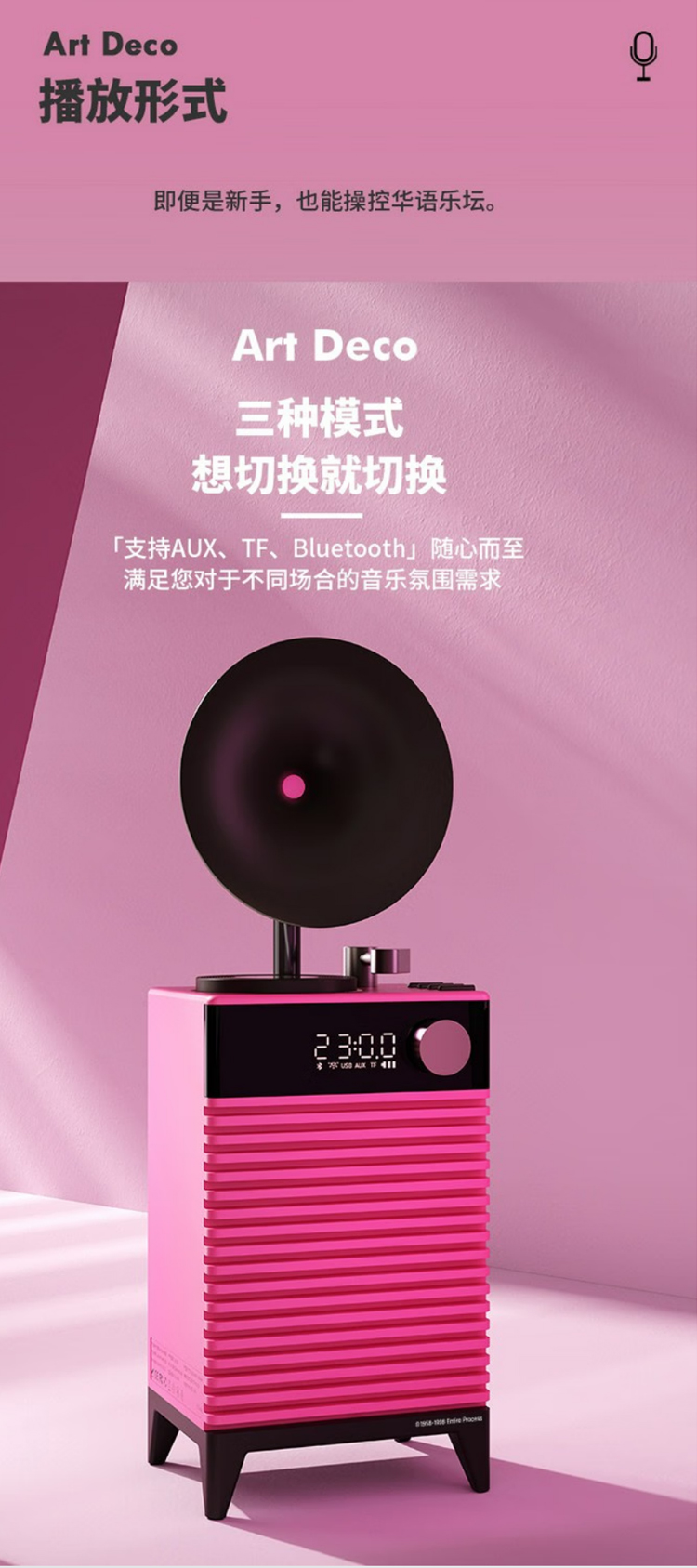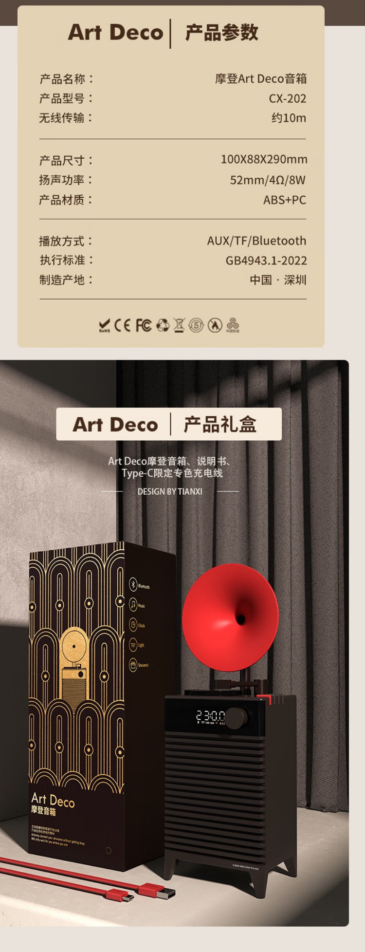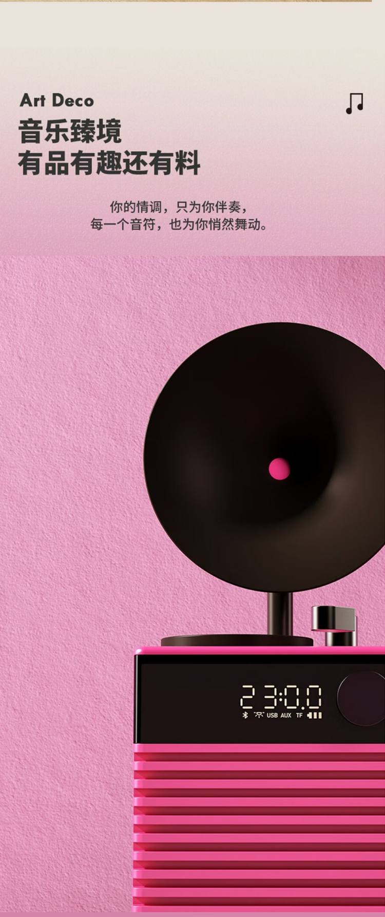 复古摩登art deco蓝牙音箱插卡户外便携无线音响家用低音炮高音质 哥特黑 官方标配