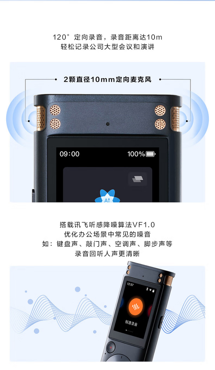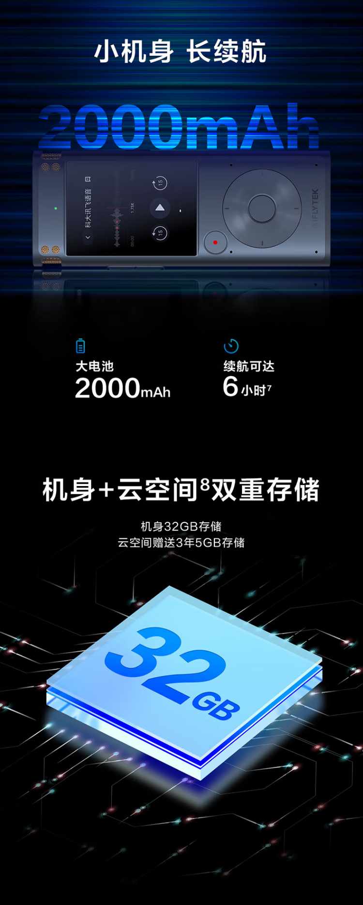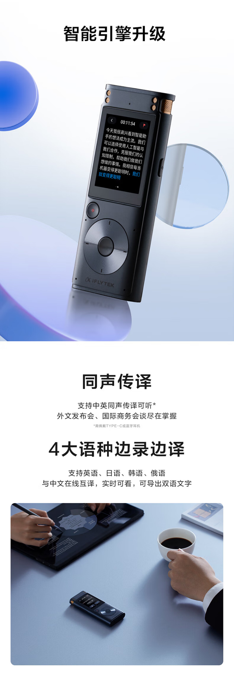科大讯飞智能录音笔SR302 免费录音转文字智能降噪录音神器随身便携 【全离线转写】SR302Pro