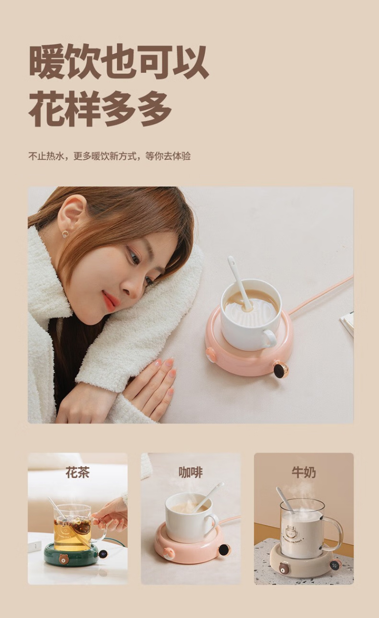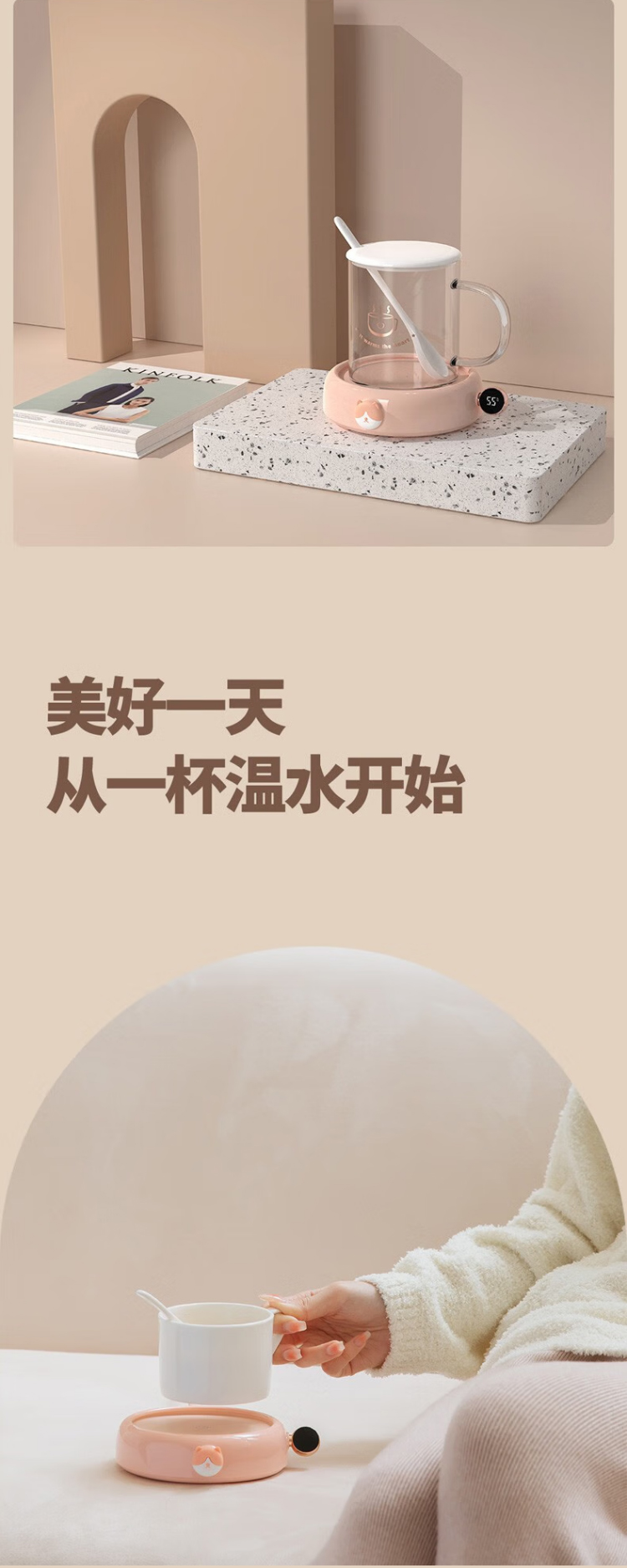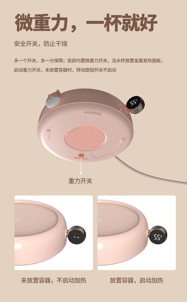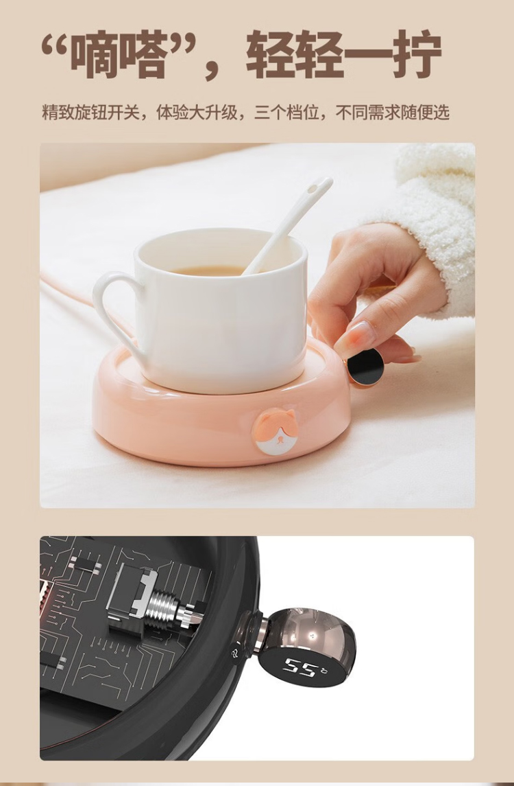加热杯垫恒温杯垫保温杯垫加热杯恒温杯保温底座茶杯垫三档调温 猫咪粉色单杯垫