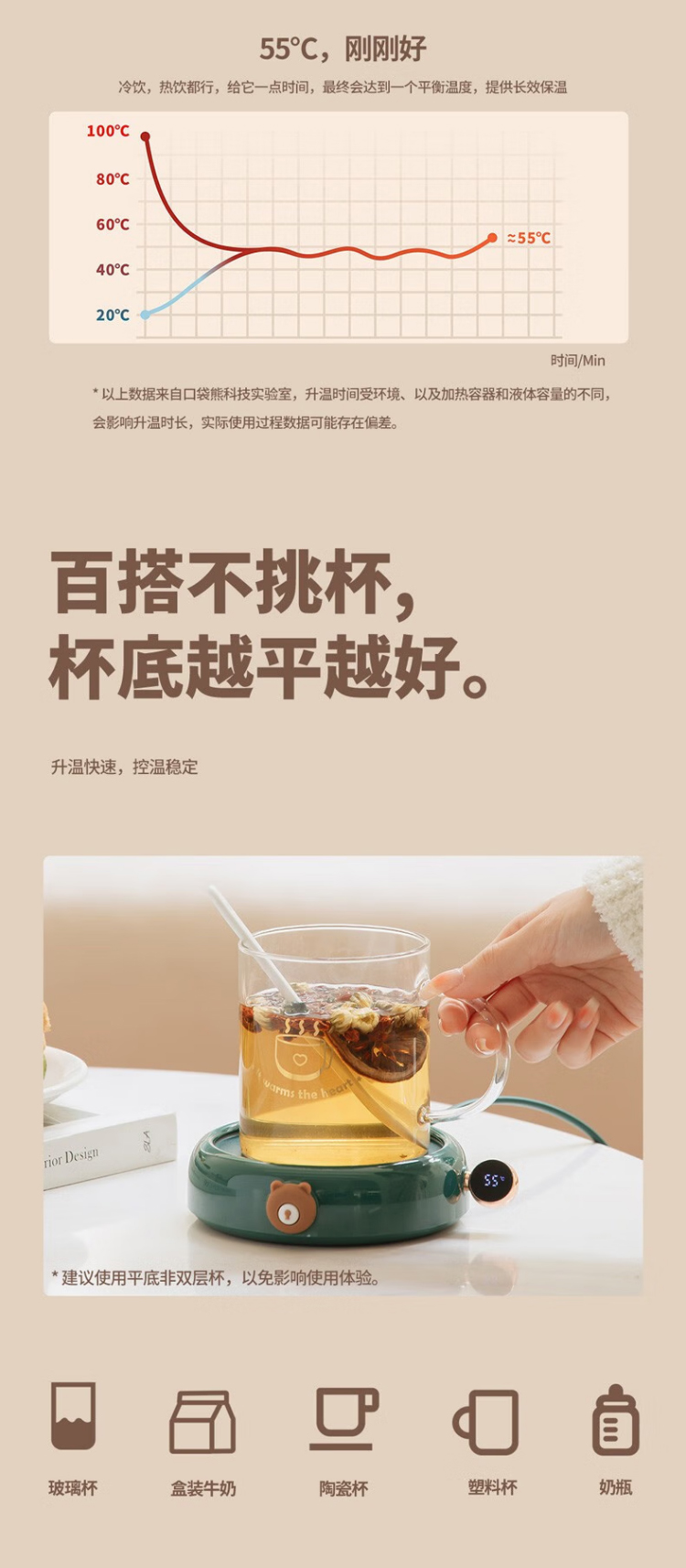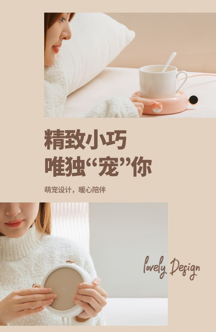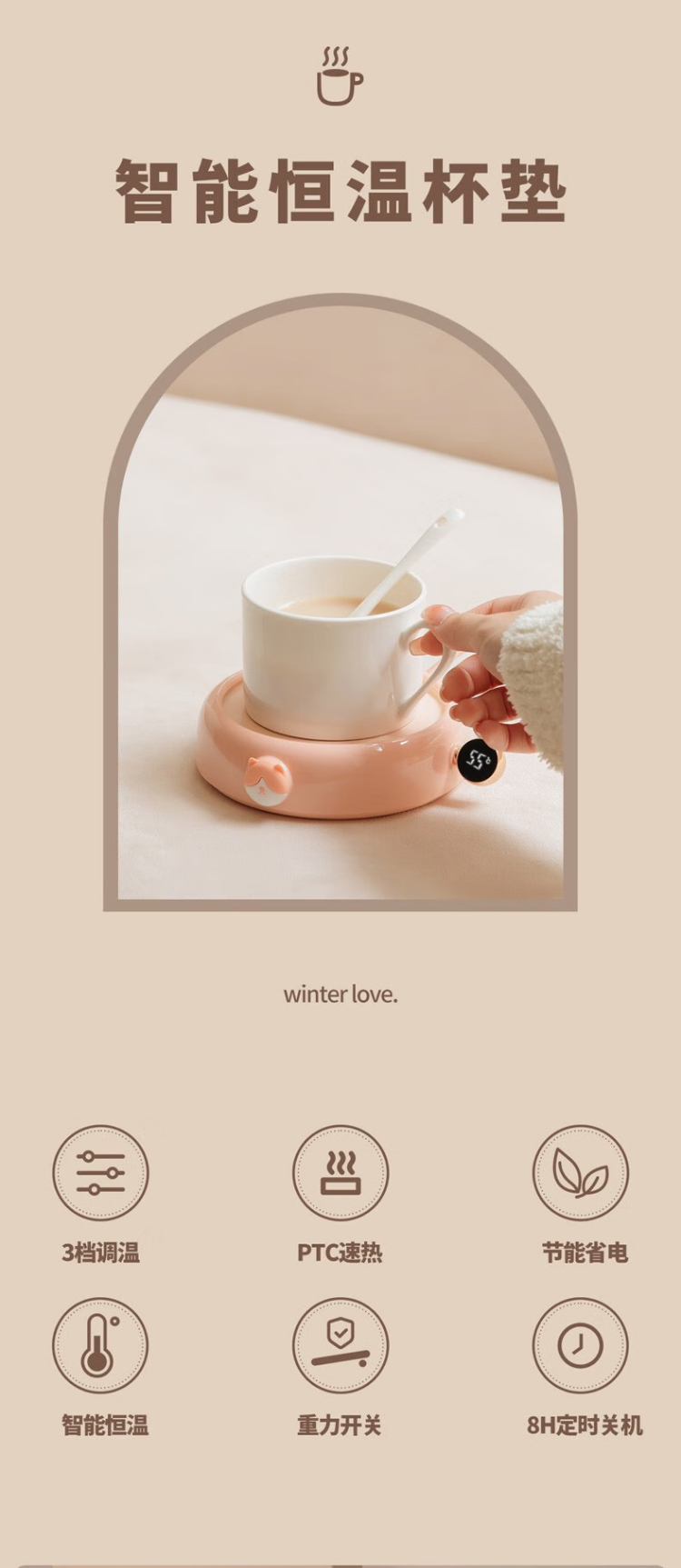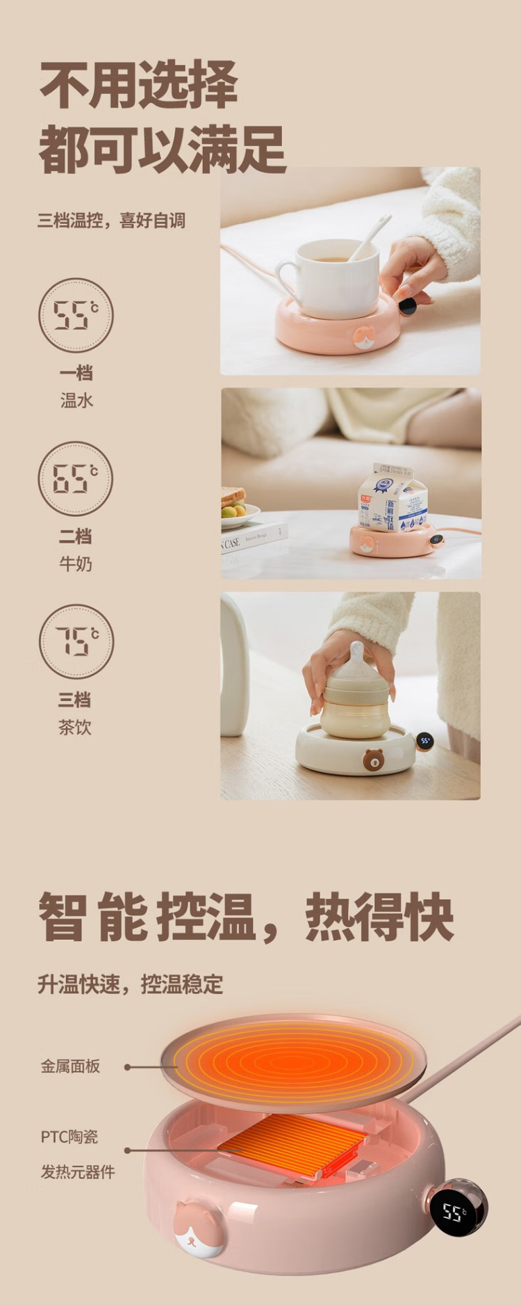 加热杯垫恒温杯垫保温杯垫加热杯恒温杯保温底座茶杯垫三档调温 猫咪粉色单杯垫