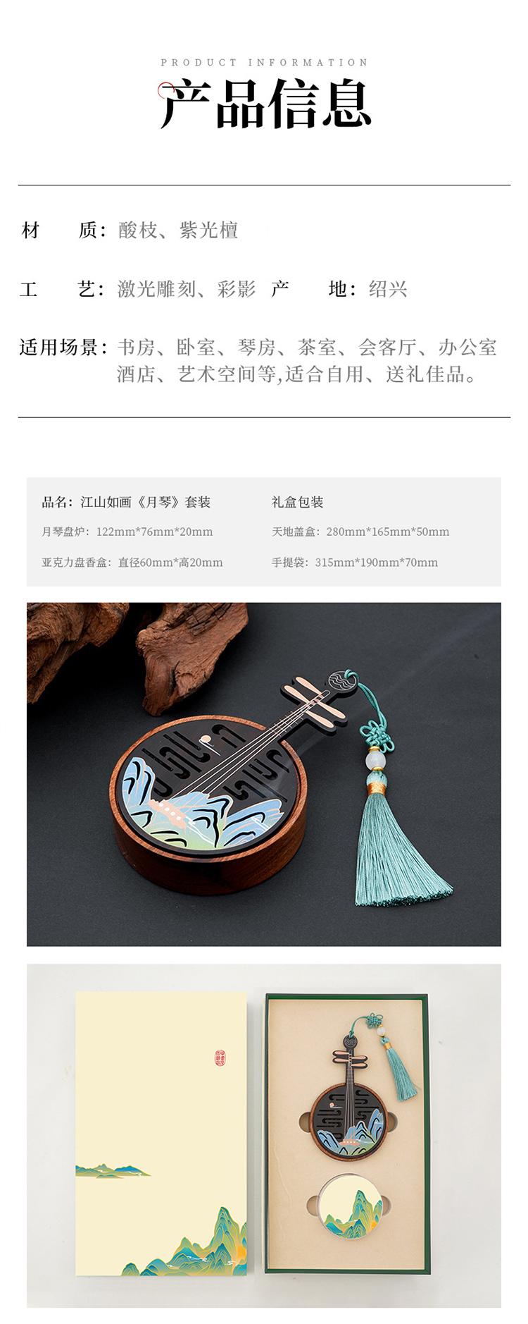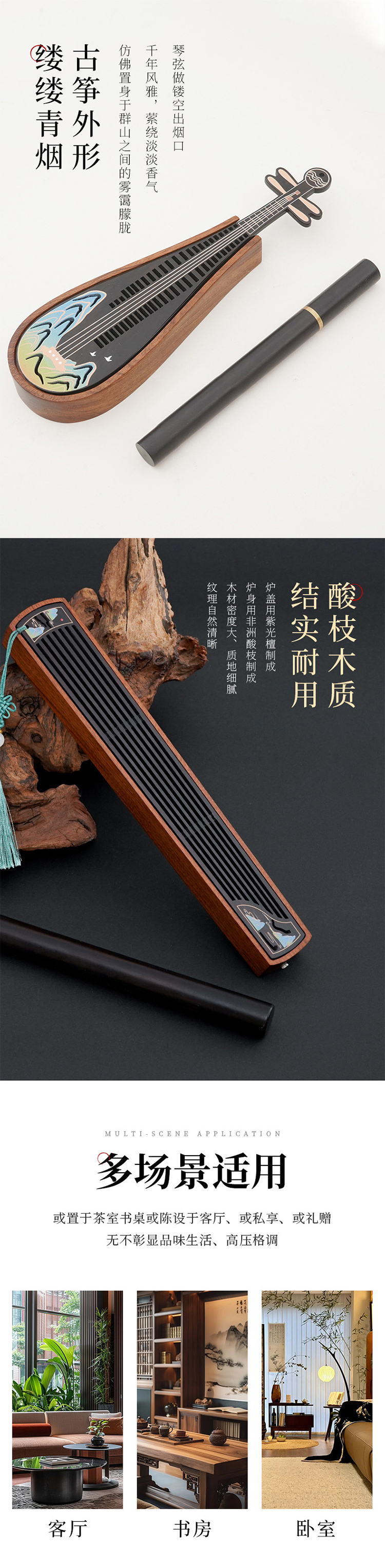 木质香炉高级感礼盒装送礼香炉上香家用线香炉木质小香炉
