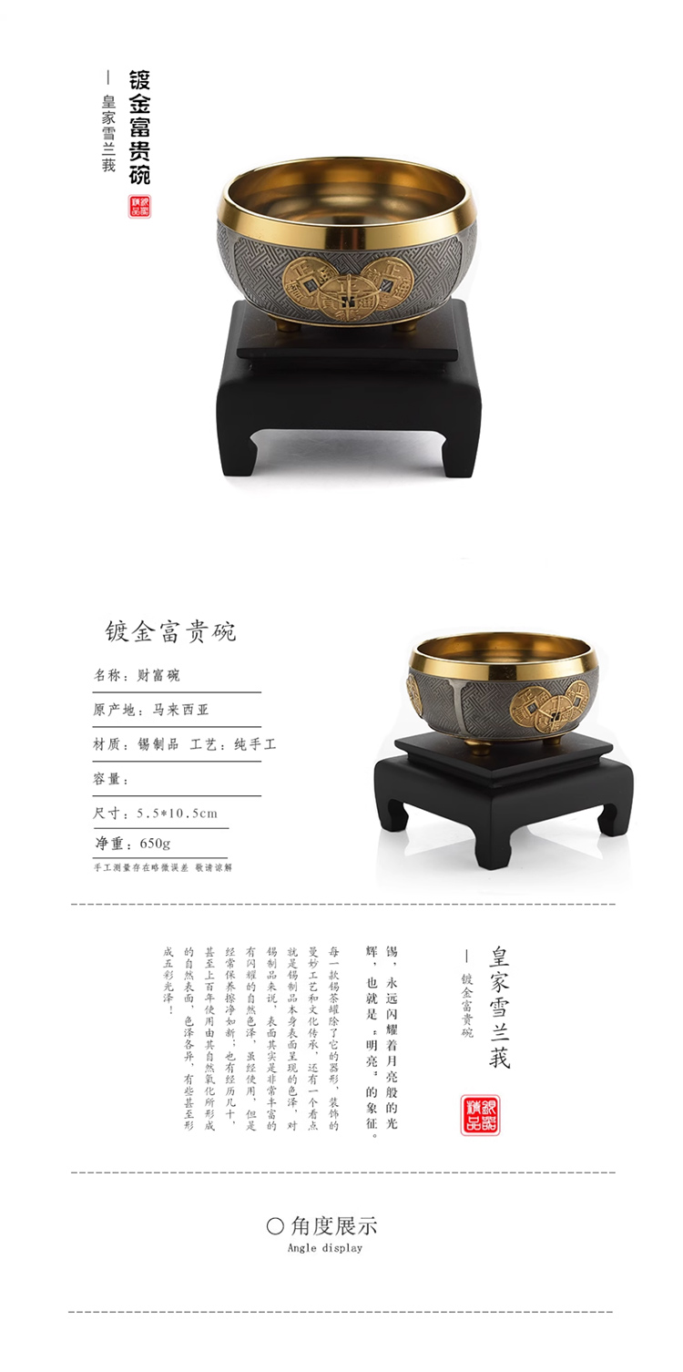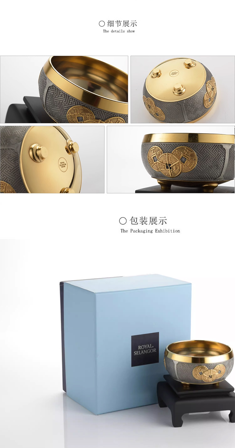 皇家雪兰莪ROYAL SELANGOR镀金富贵碗镀金桌面摆件招财碗送礼礼物
