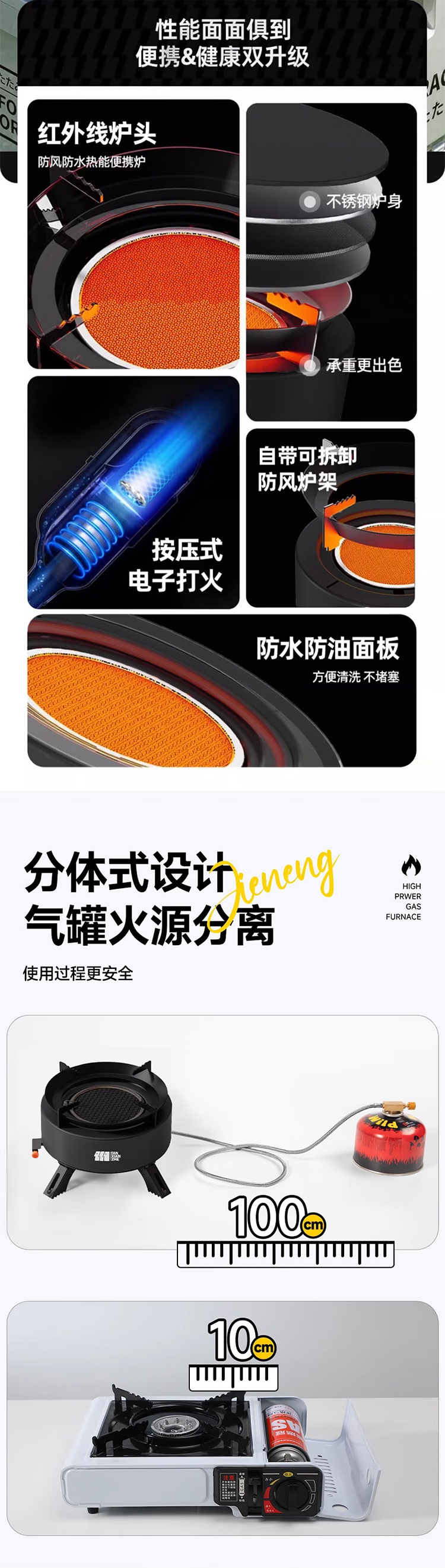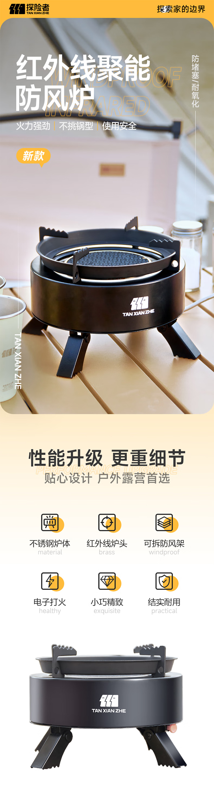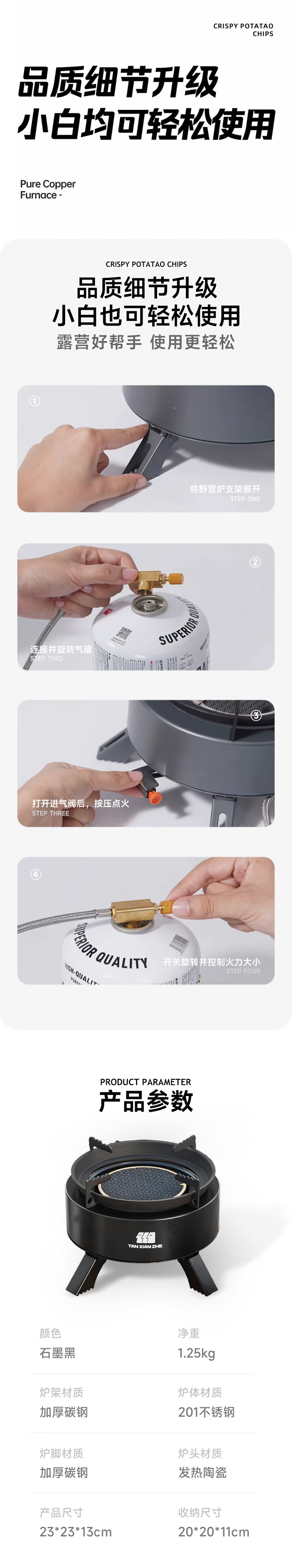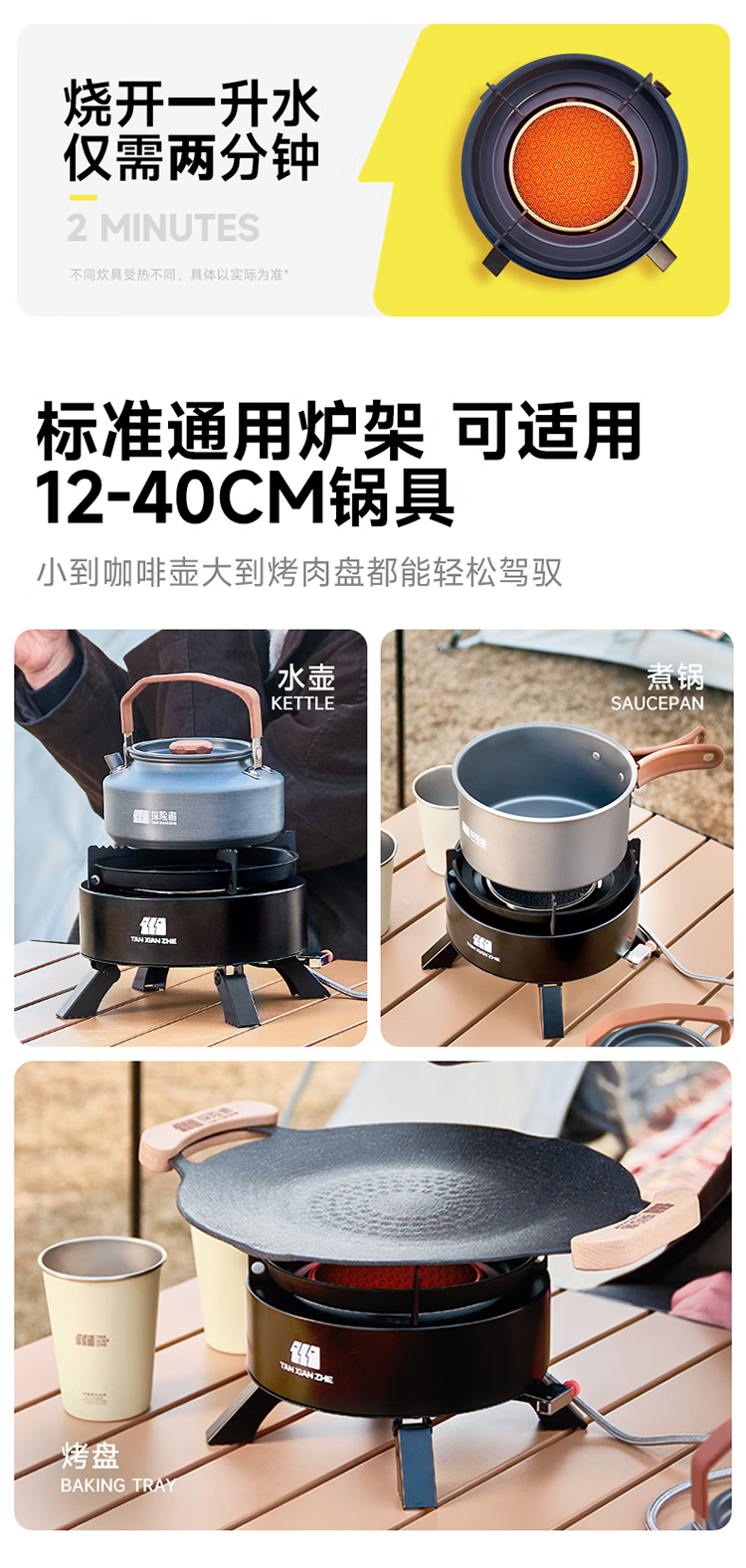 探险者卡式炉户外炉具分体式露营野餐烧烤红外线防风卡磁炉野外煮茶火锅 钛黑炉+小高山气券(赠品)*2+水壶