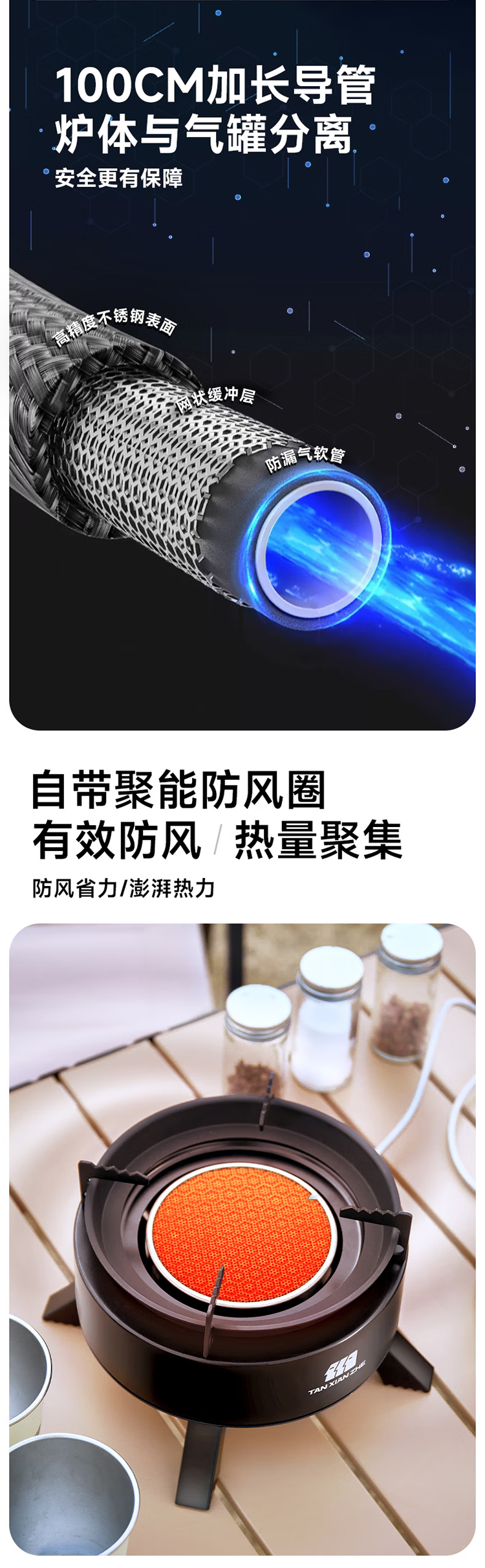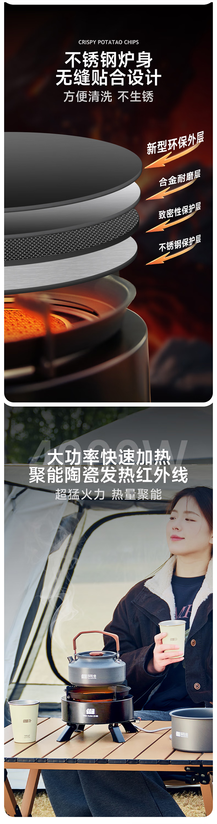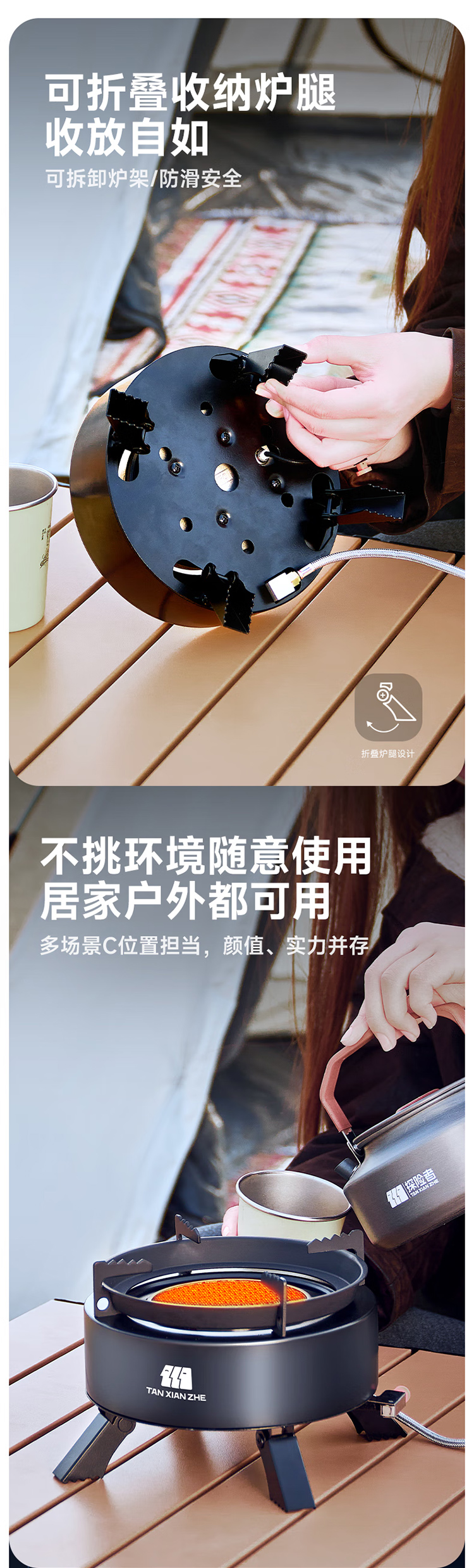 探险者卡式炉户外炉具分体式露营野餐烧烤红外线防风卡磁炉野外煮茶火锅 钛黑炉+小高山气券(赠品)*2+水壶