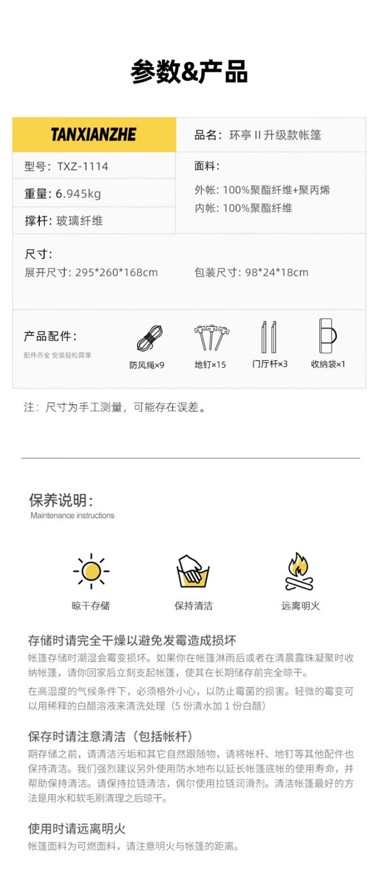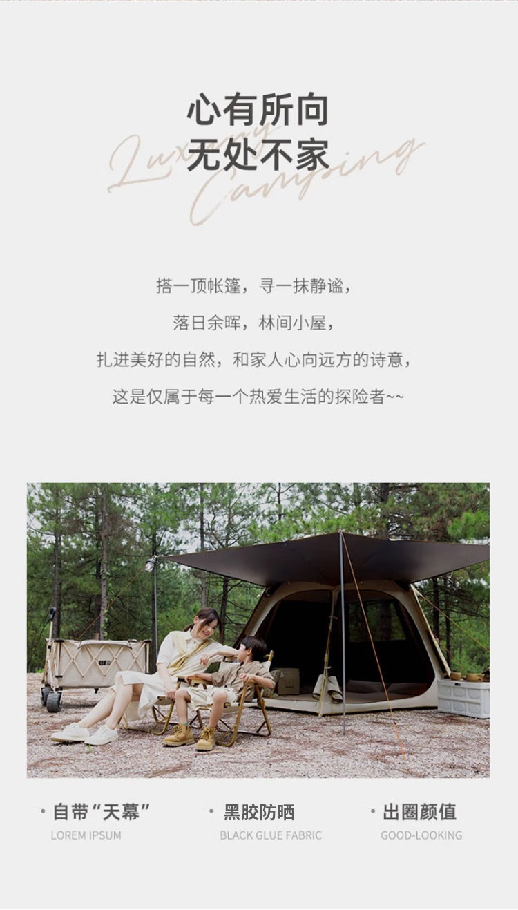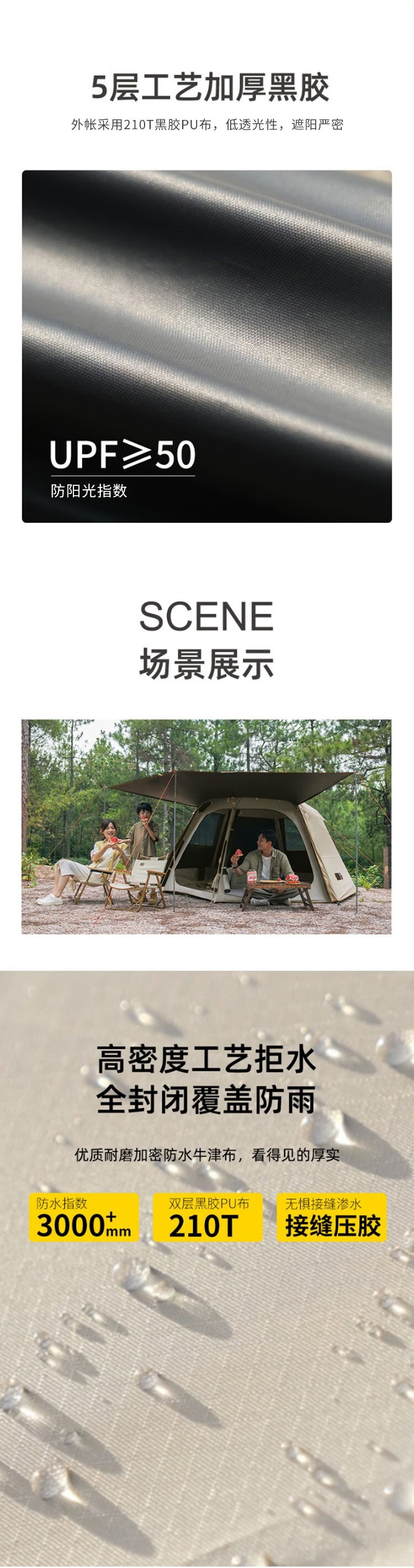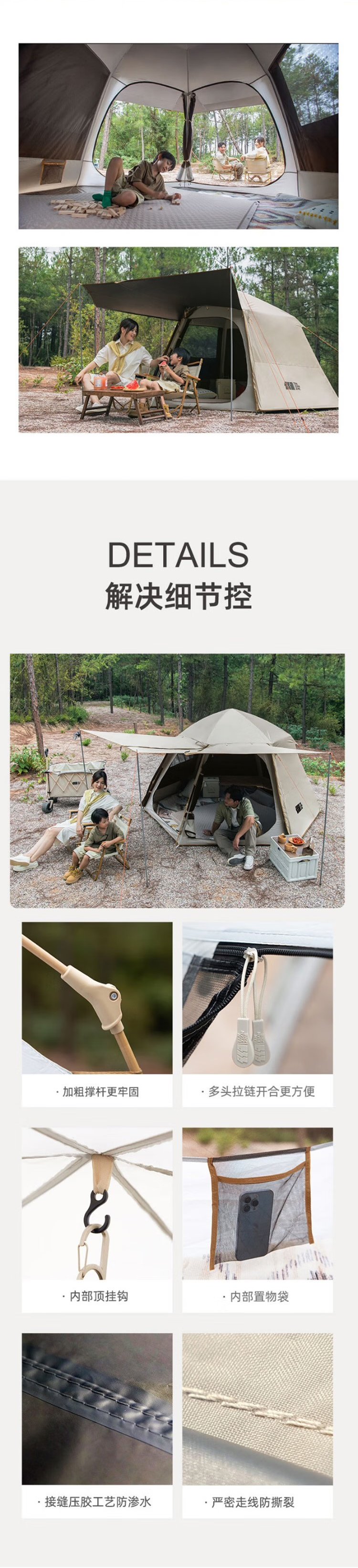 TANXIANZHE探险者户外露营帐篷天幕便携折叠大门厅天幕六角黑胶加厚防晒防雨 卡其色5-8人黑胶六角双门厅帐篷