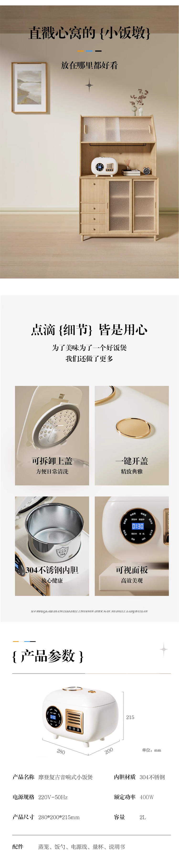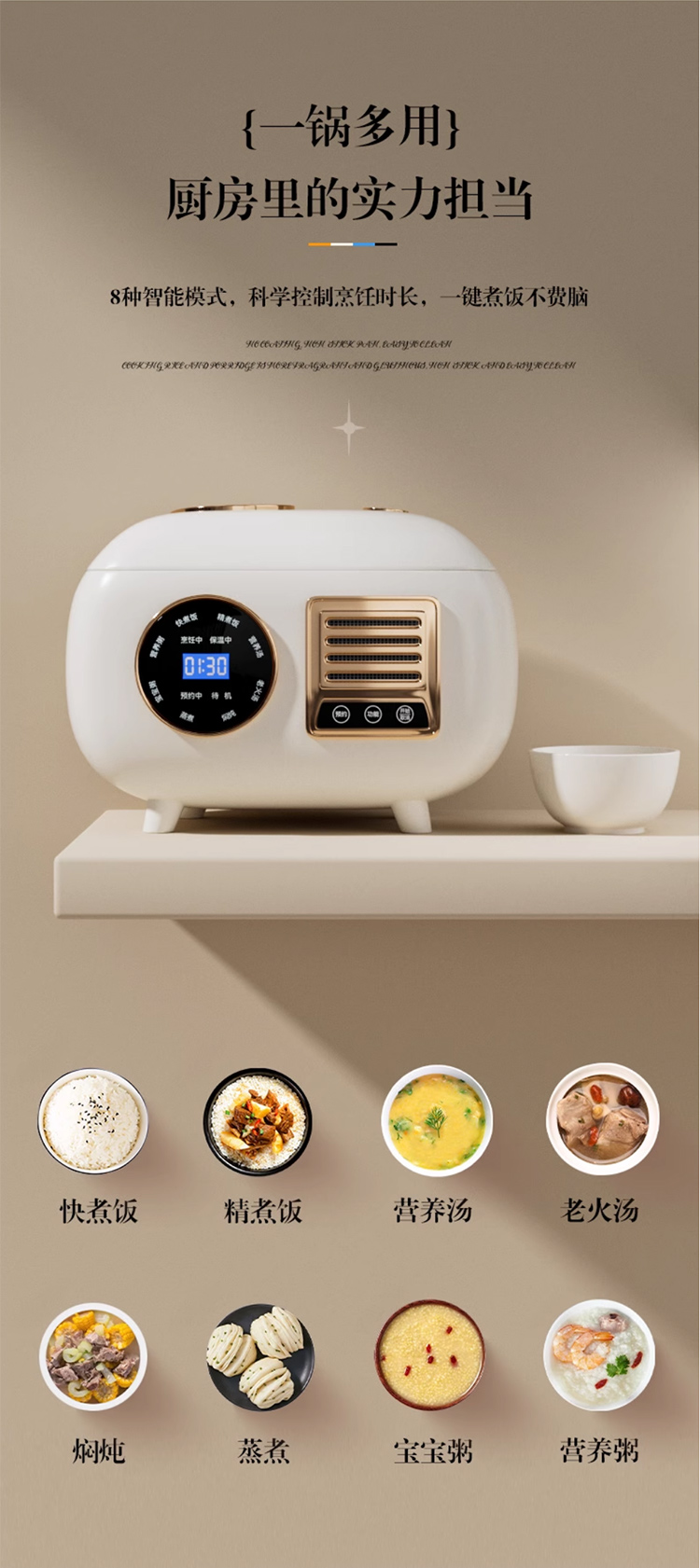 德国品牌麦滋电饭煲无涂层电饭锅0涂层小型304不锈钢预约迷你2L升