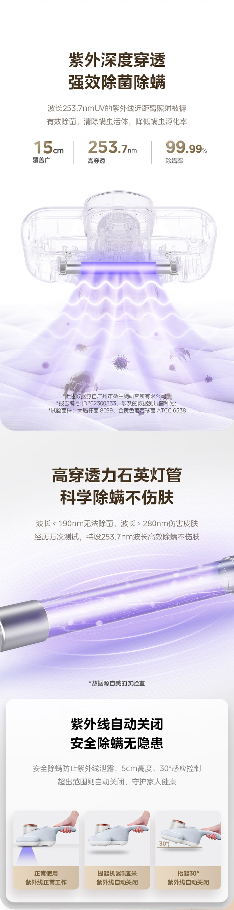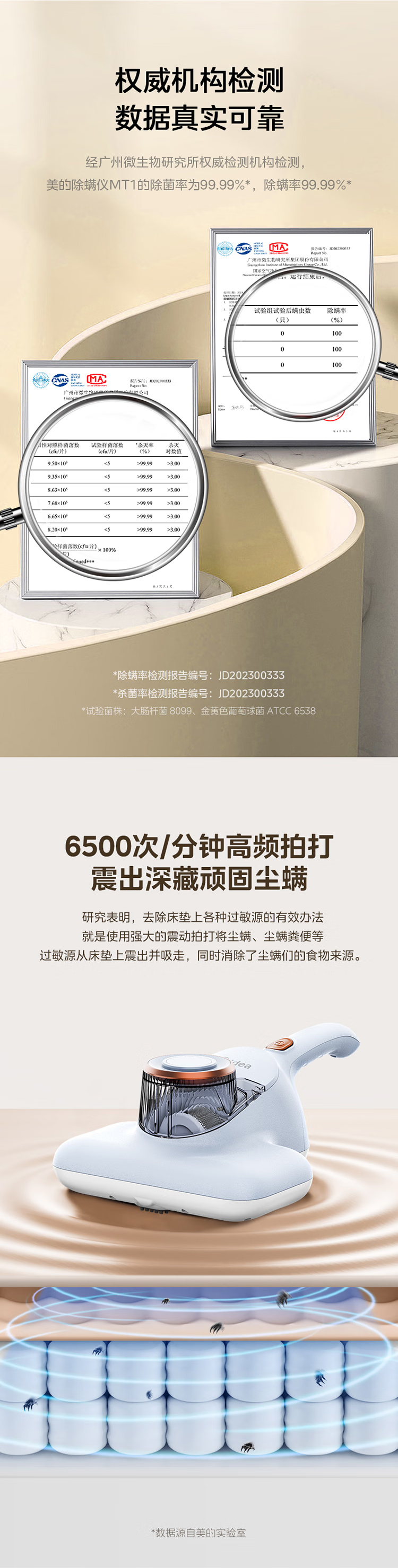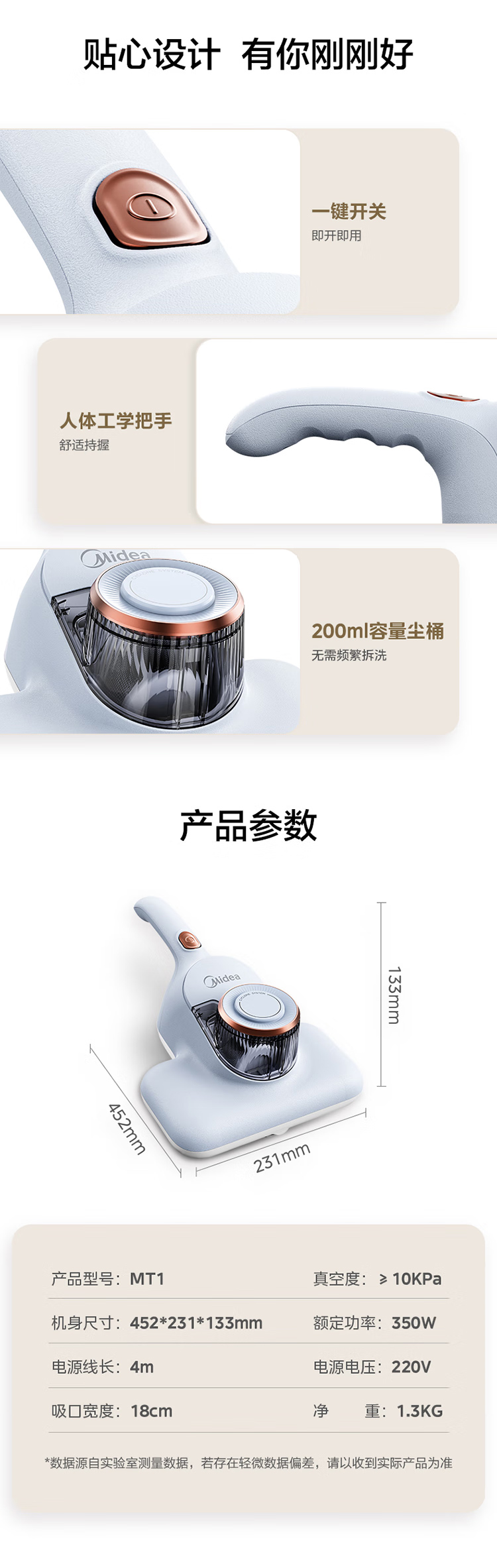 美的(Midea)除螨仪双电机强吸力高频拍打 热风干爽 UV紫外线家用床铺沙发除螨有线吸尘MT1