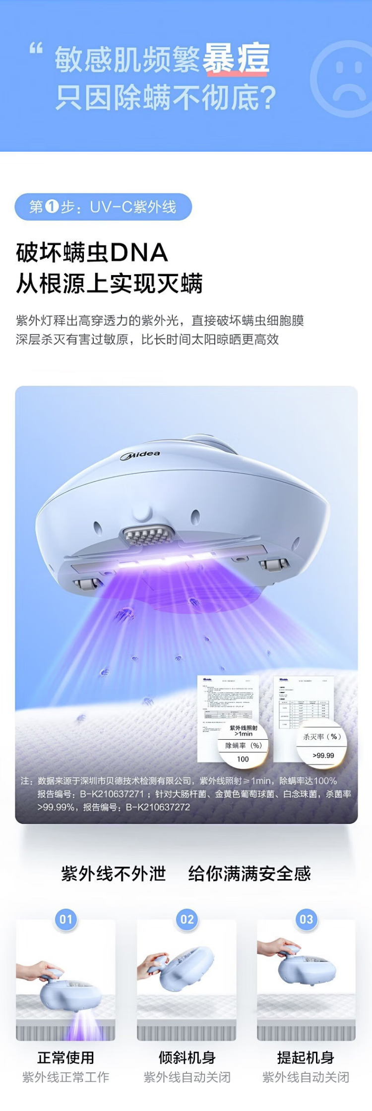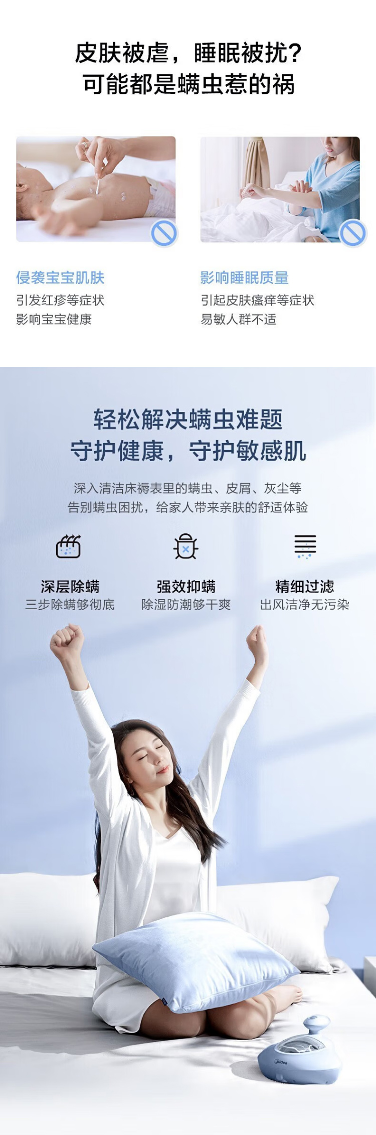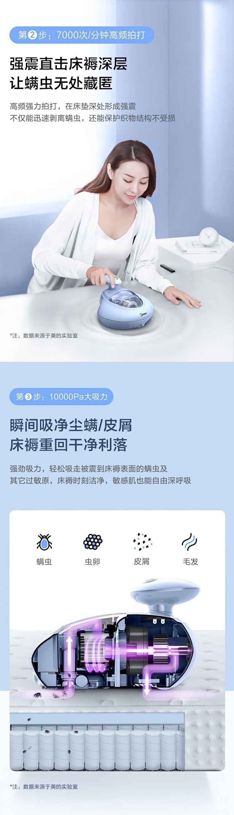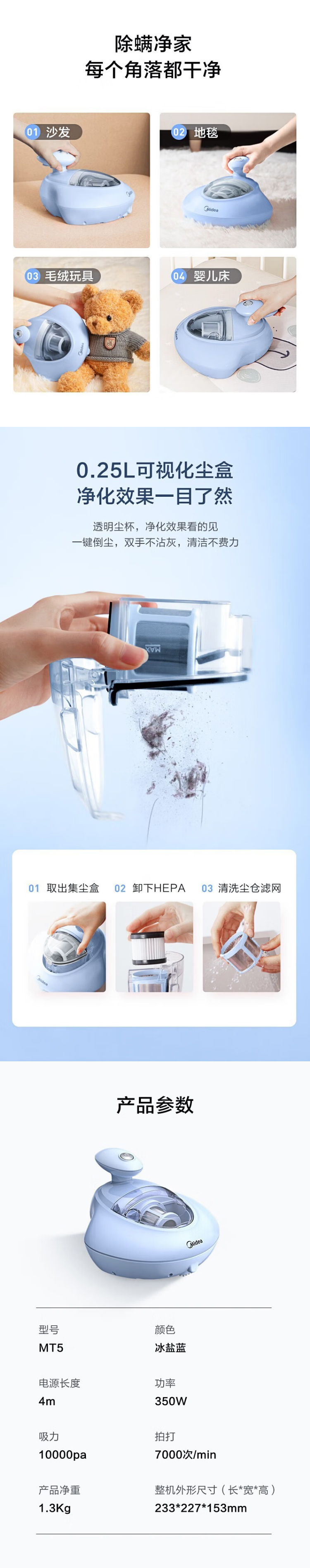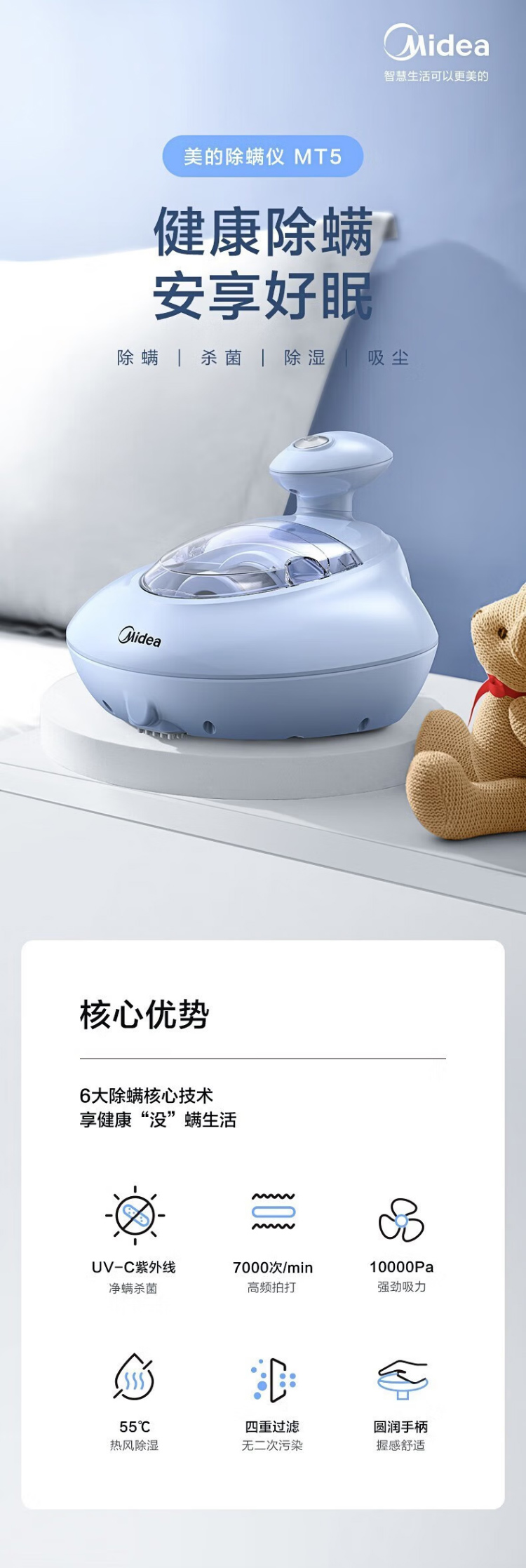 美的(Midea)除螨仪家用有线手持床沙发紫外线杀菌烘干拍打除螨机【商场同款】 MT5