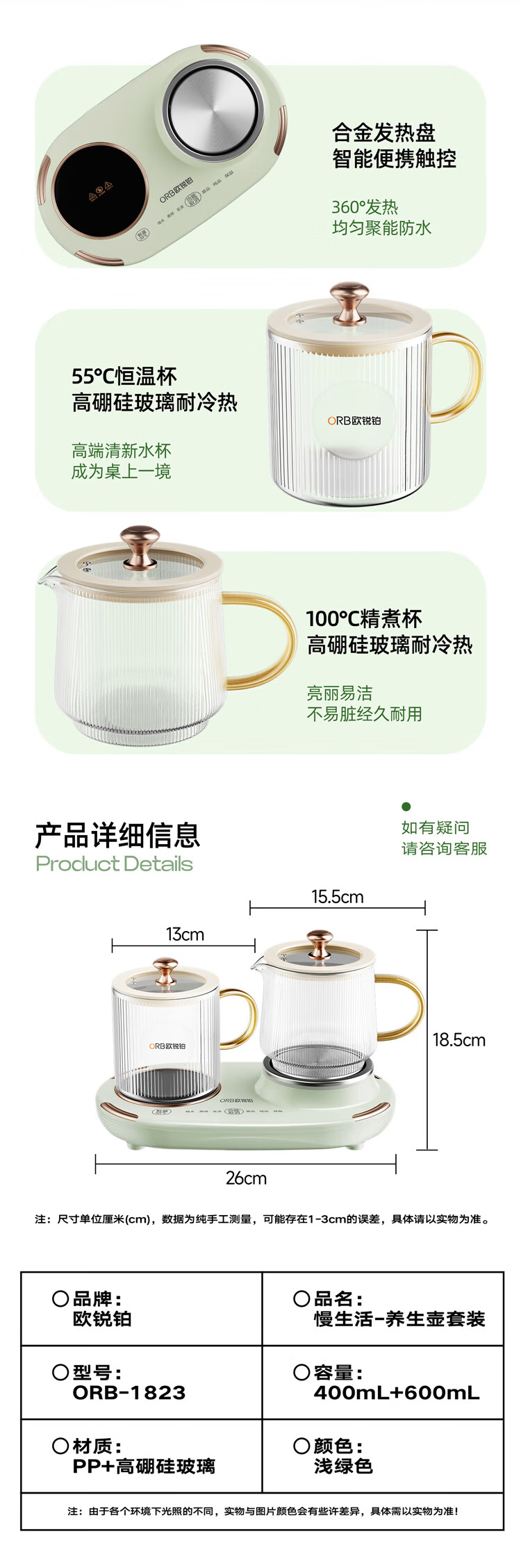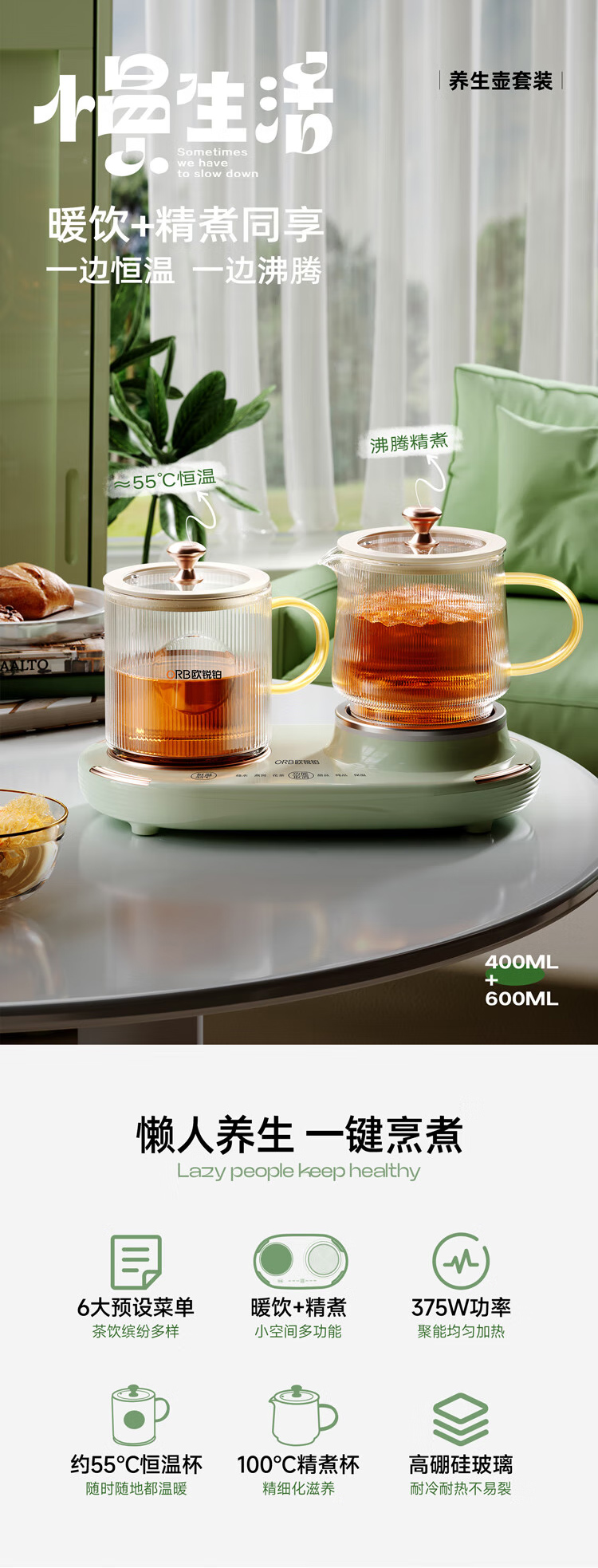欧锐铂 慢生活-养生壶套装 ORB-1823