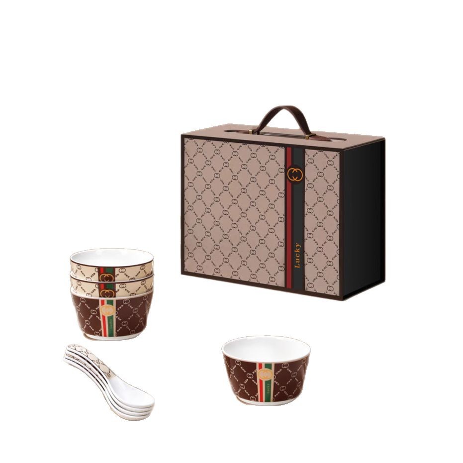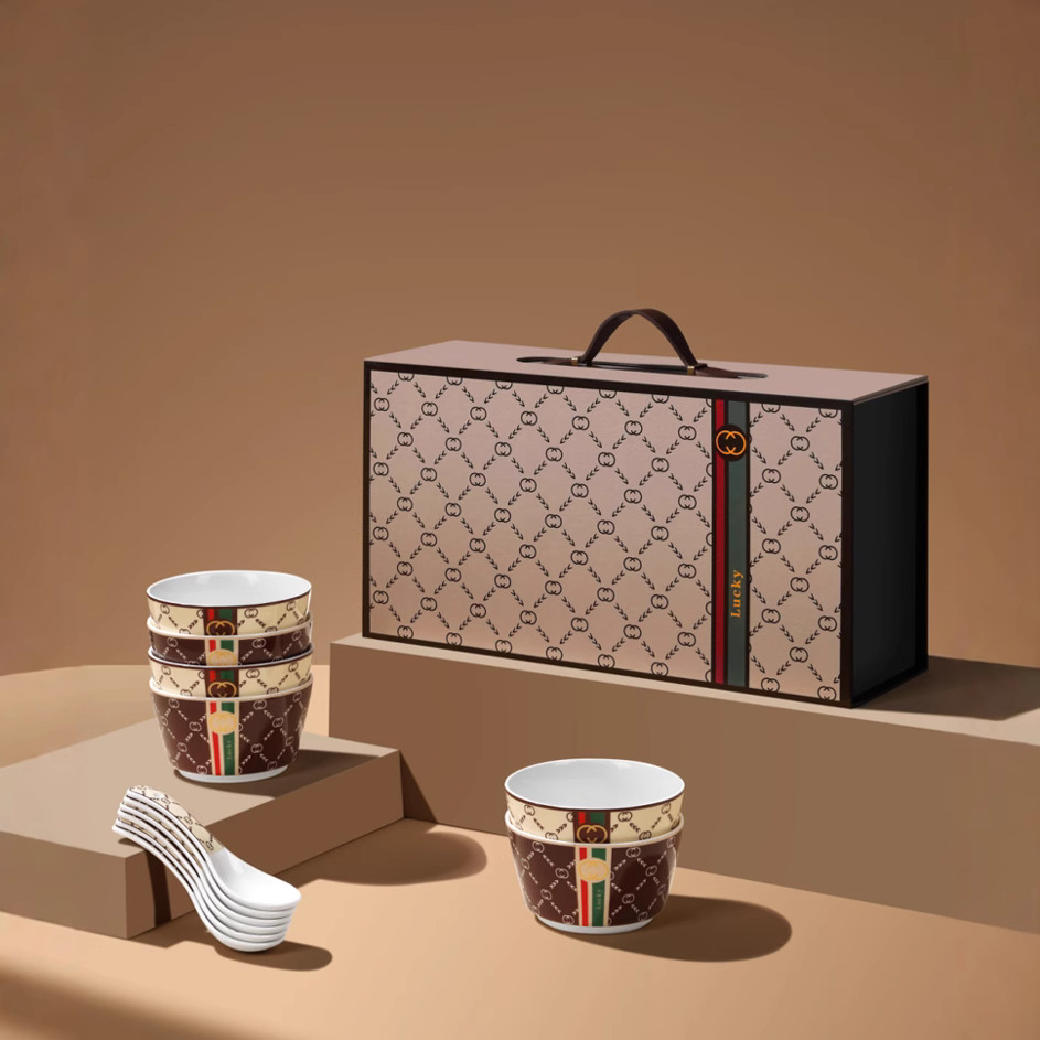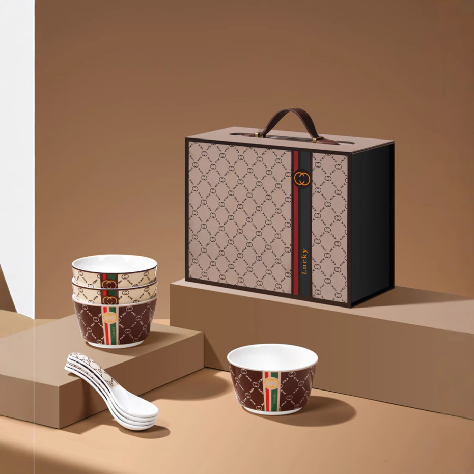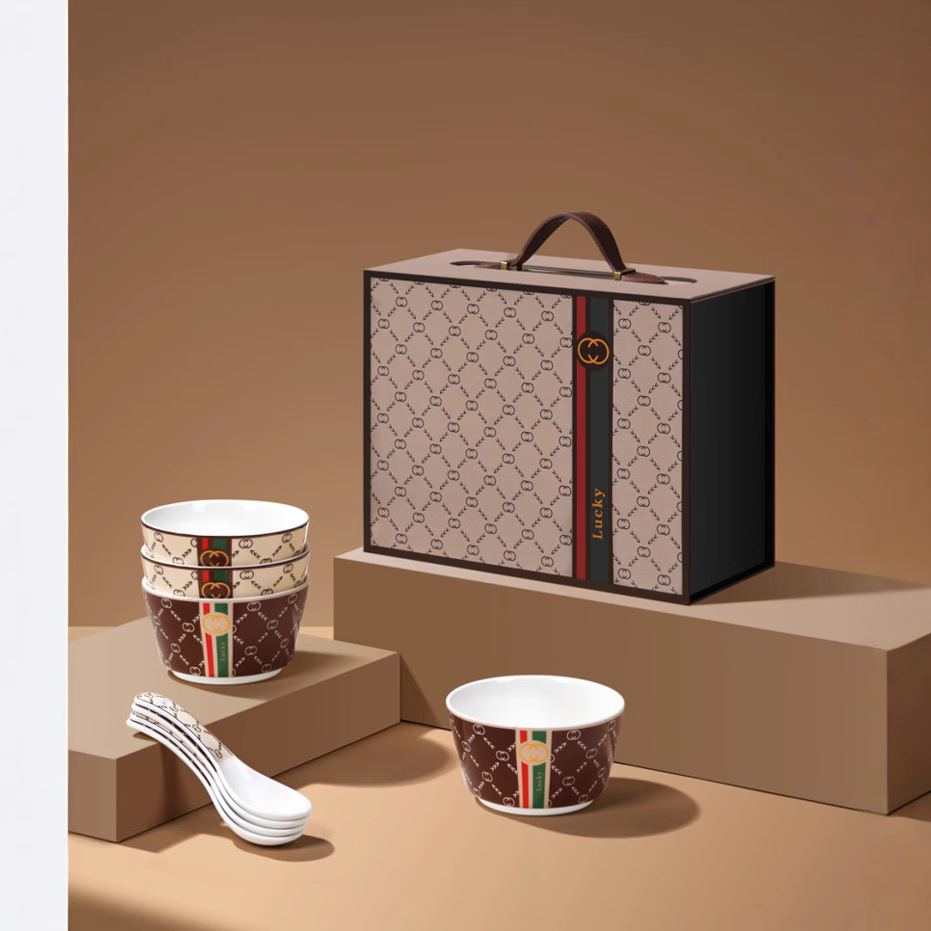 聚陶人古奇系列简约家用陶瓷碗勺餐具套装公司送员工伴手礼