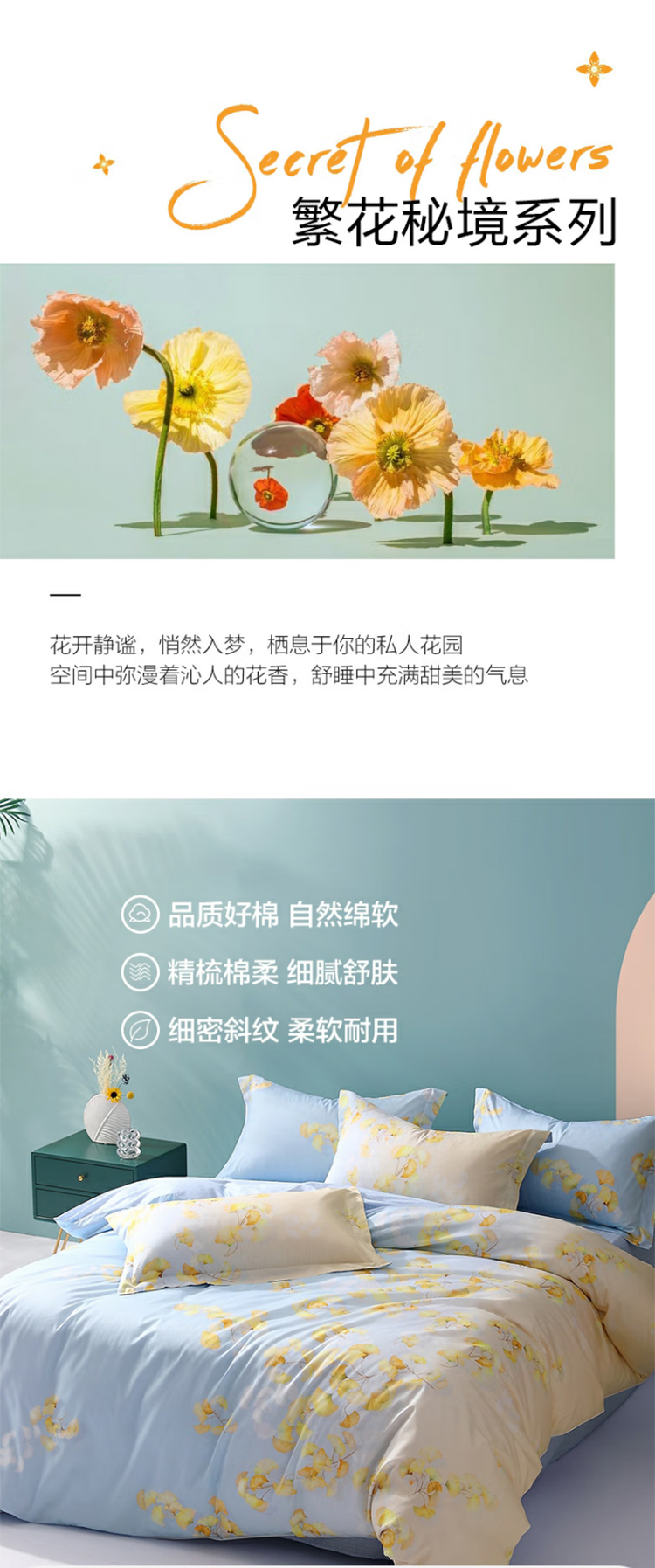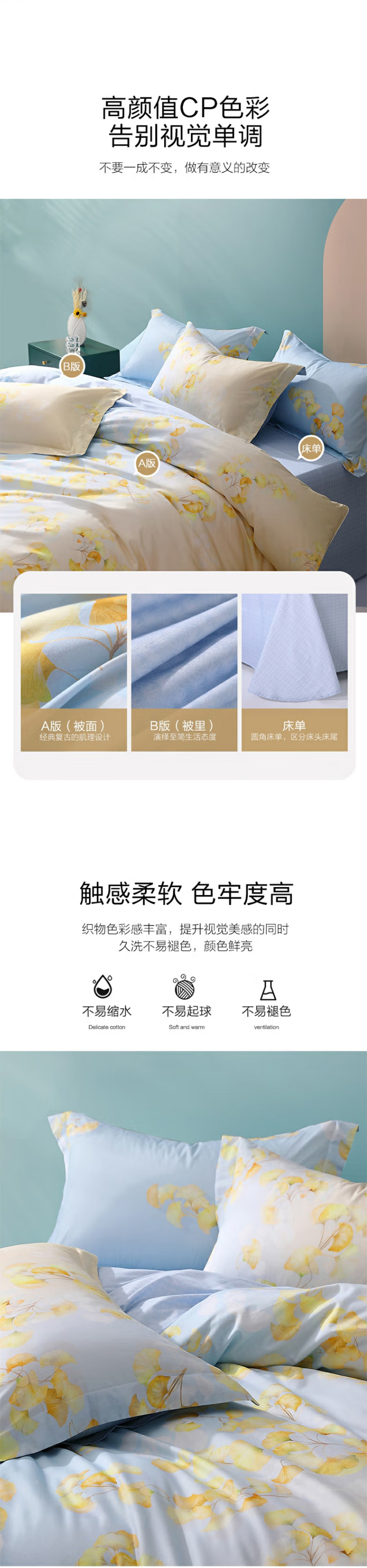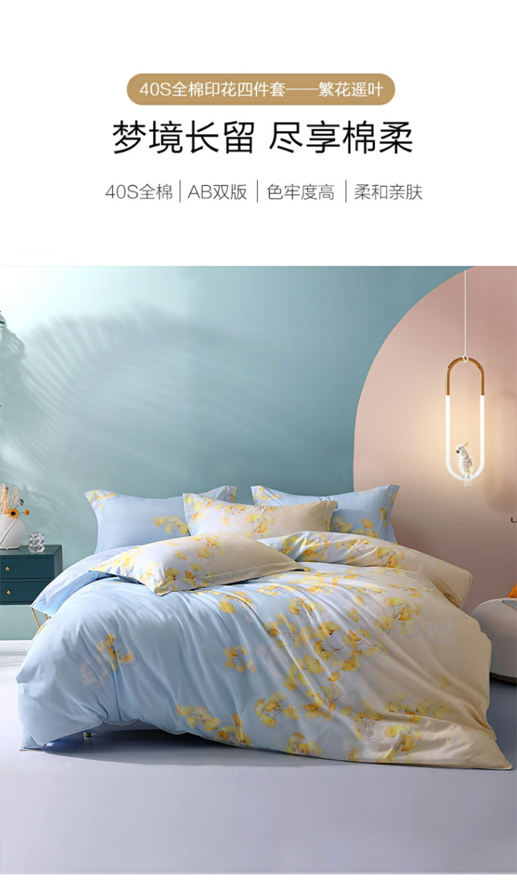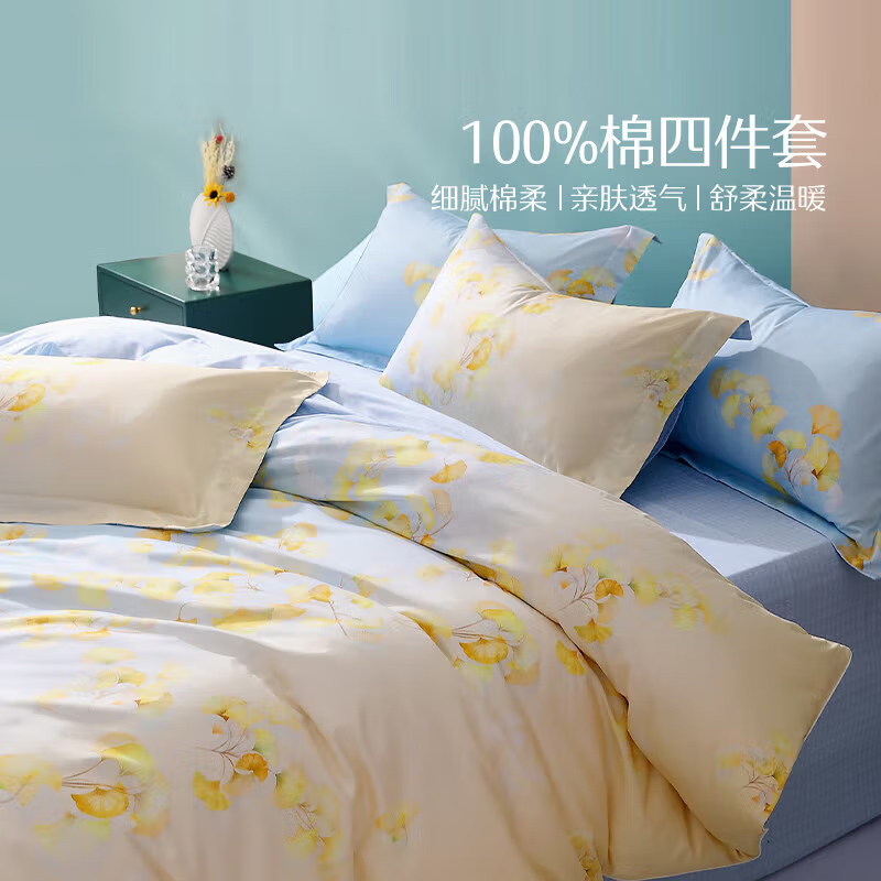 水星家纺四件套床上纯棉100%全棉床单四件套单双人被套枕套1.5米床遥叶