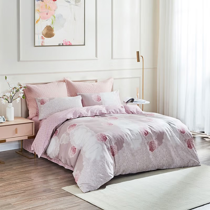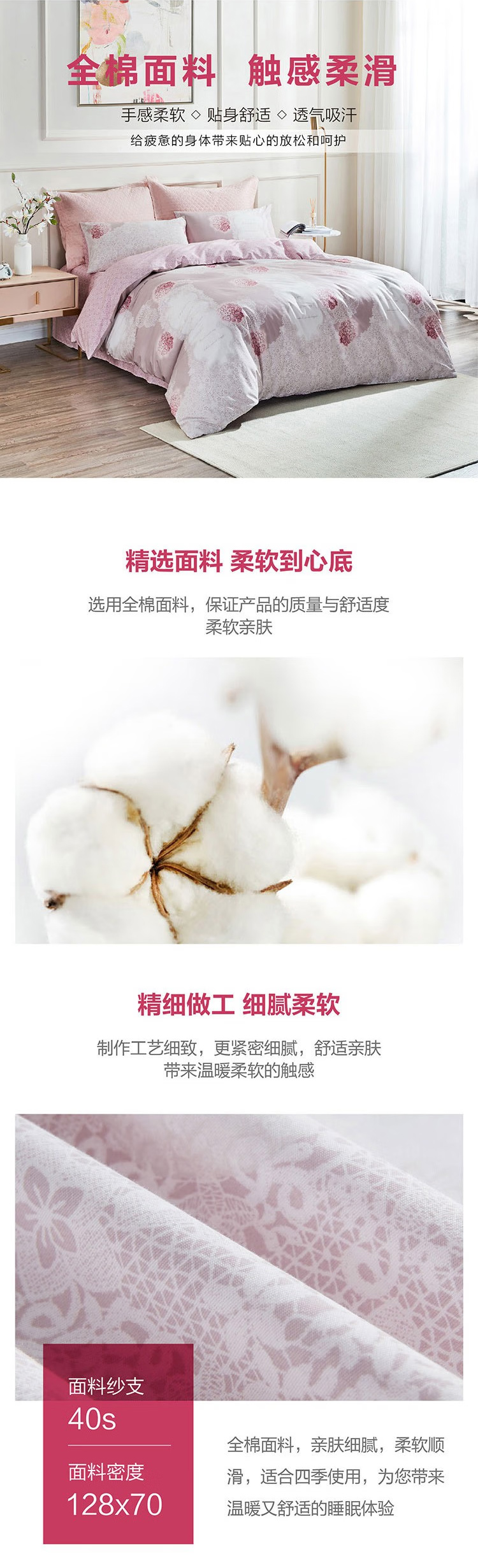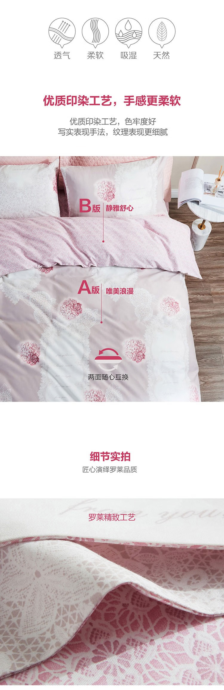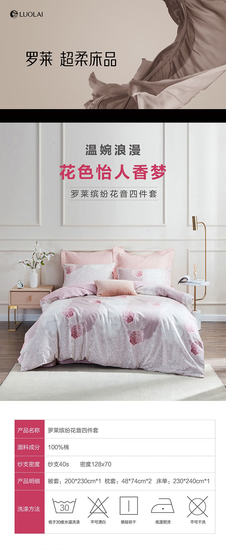 罗莱(LUOLAI)四件套纯棉床单被罩枕套全棉床上WD单双人简约诺曼清风徐徐 缤纷花音