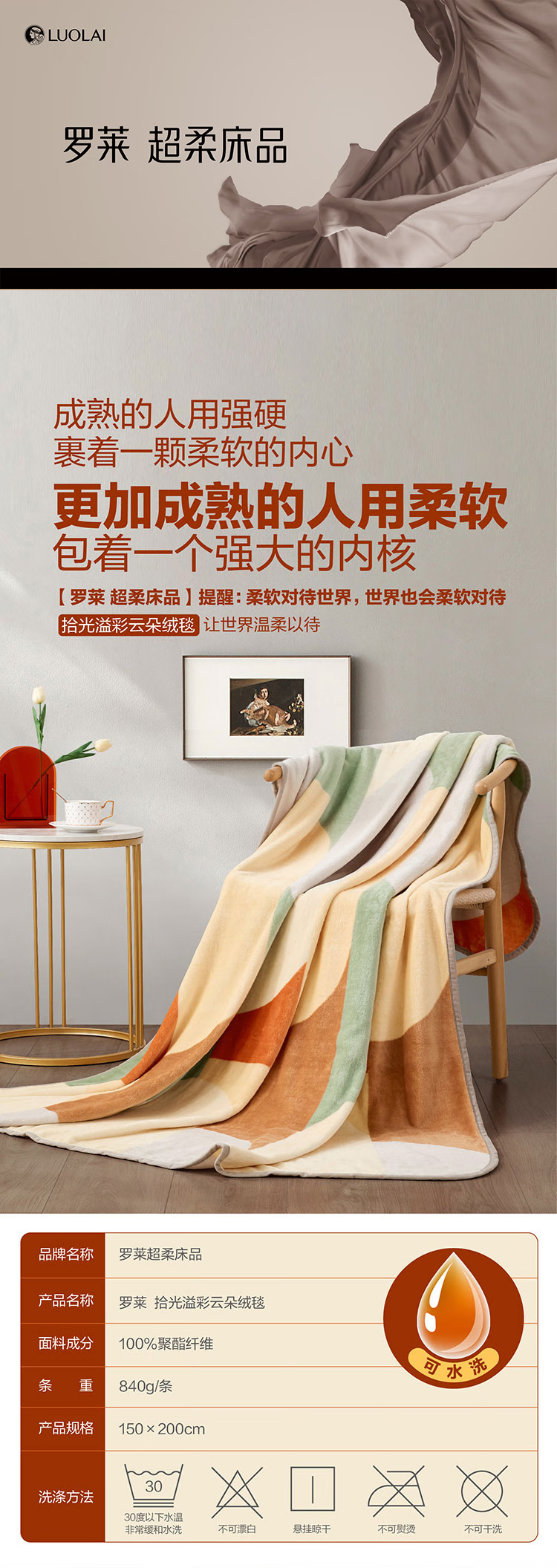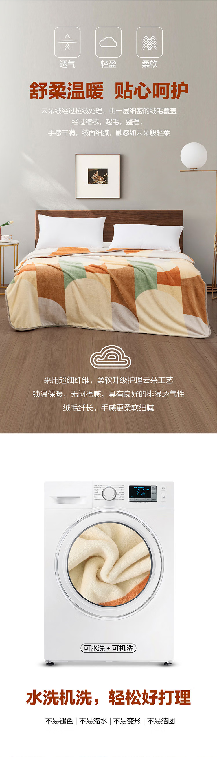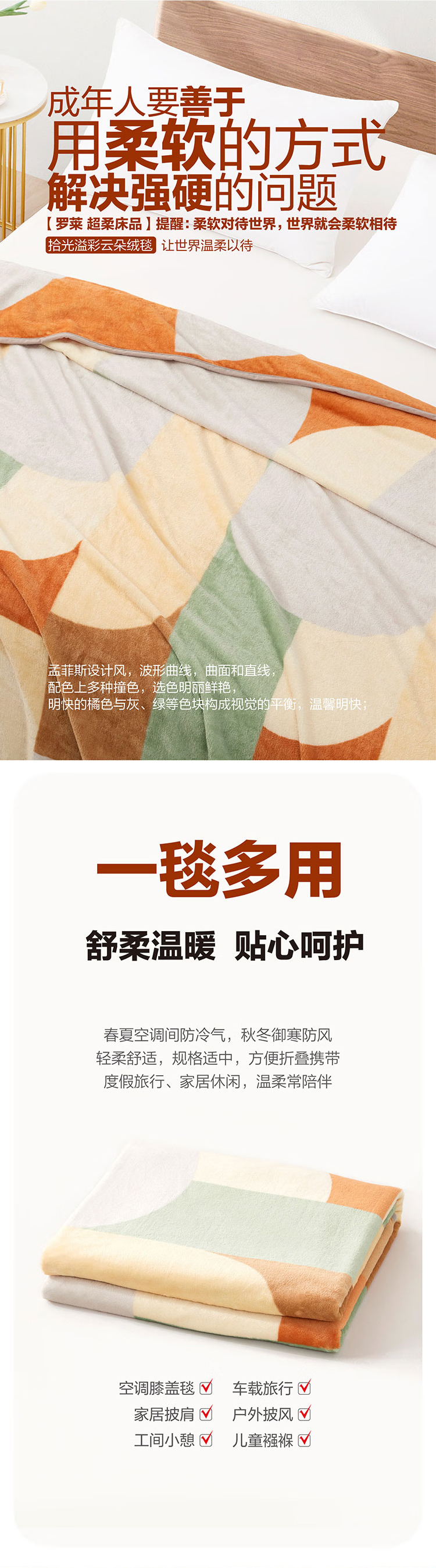 罗莱TG梦幻北欧临风听海积木乐园盛世花开梦幻星空超柔絮彩云朵绒毯 拾光溢彩云朵绒毯