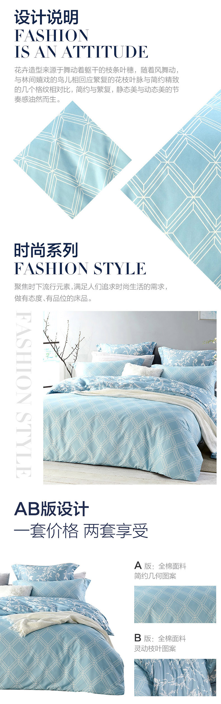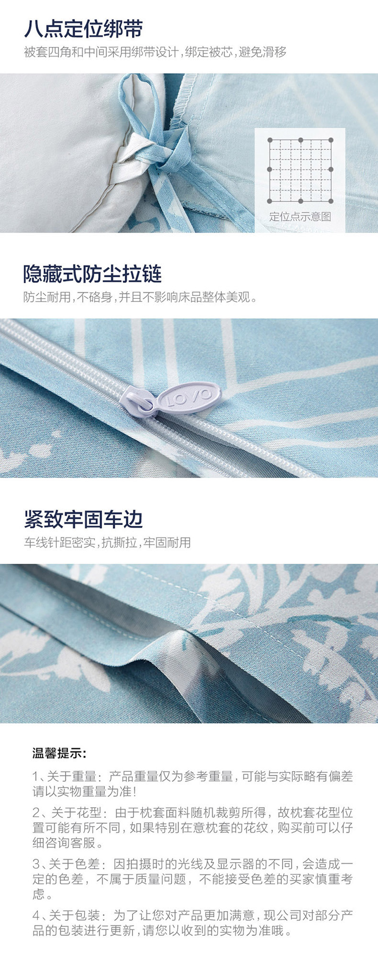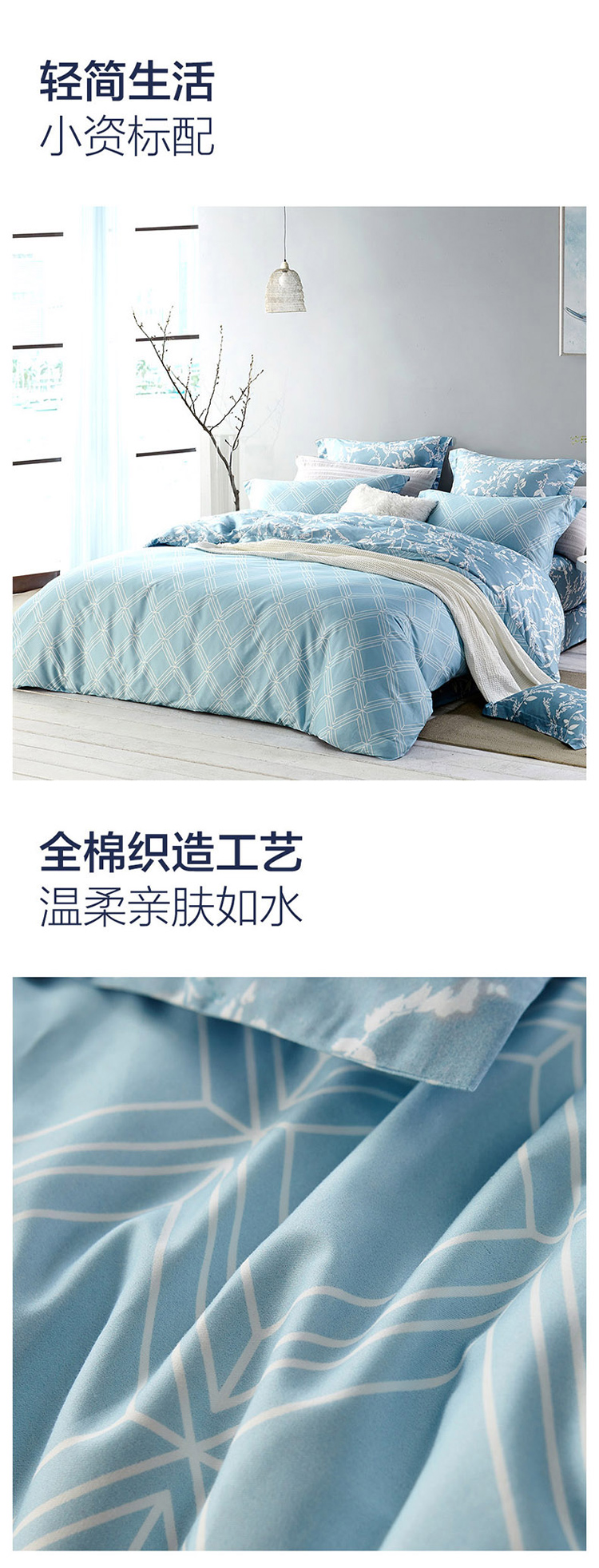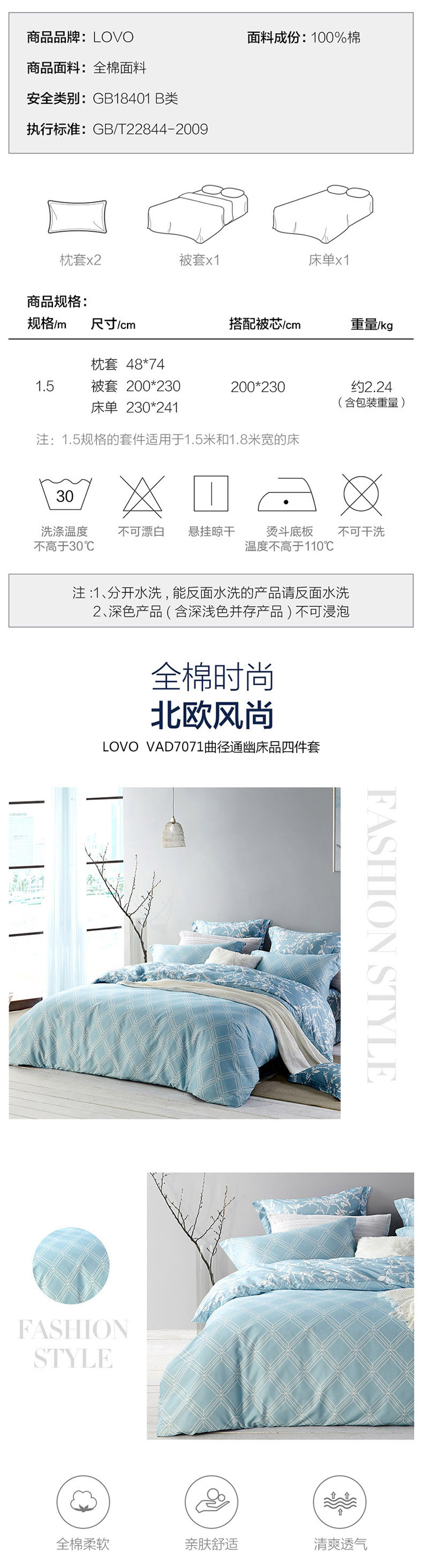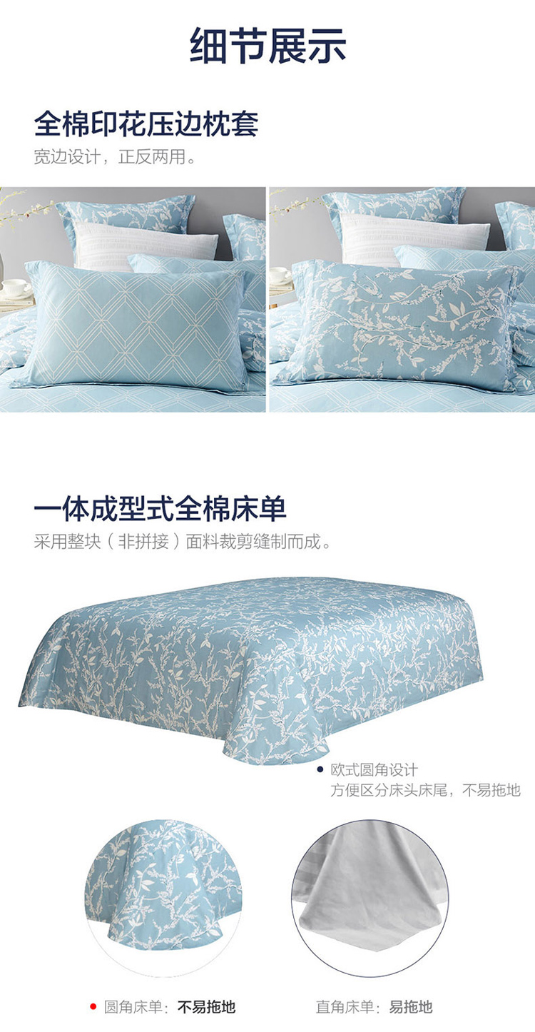 LOVO罗莱生活 全棉四件套纯棉床单被套双人床上用品200×230cm 曲径通幽