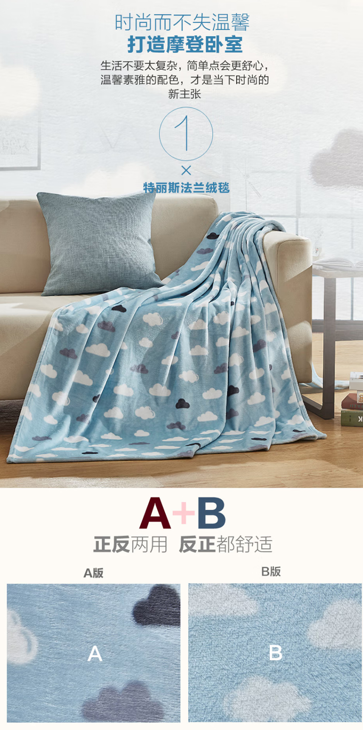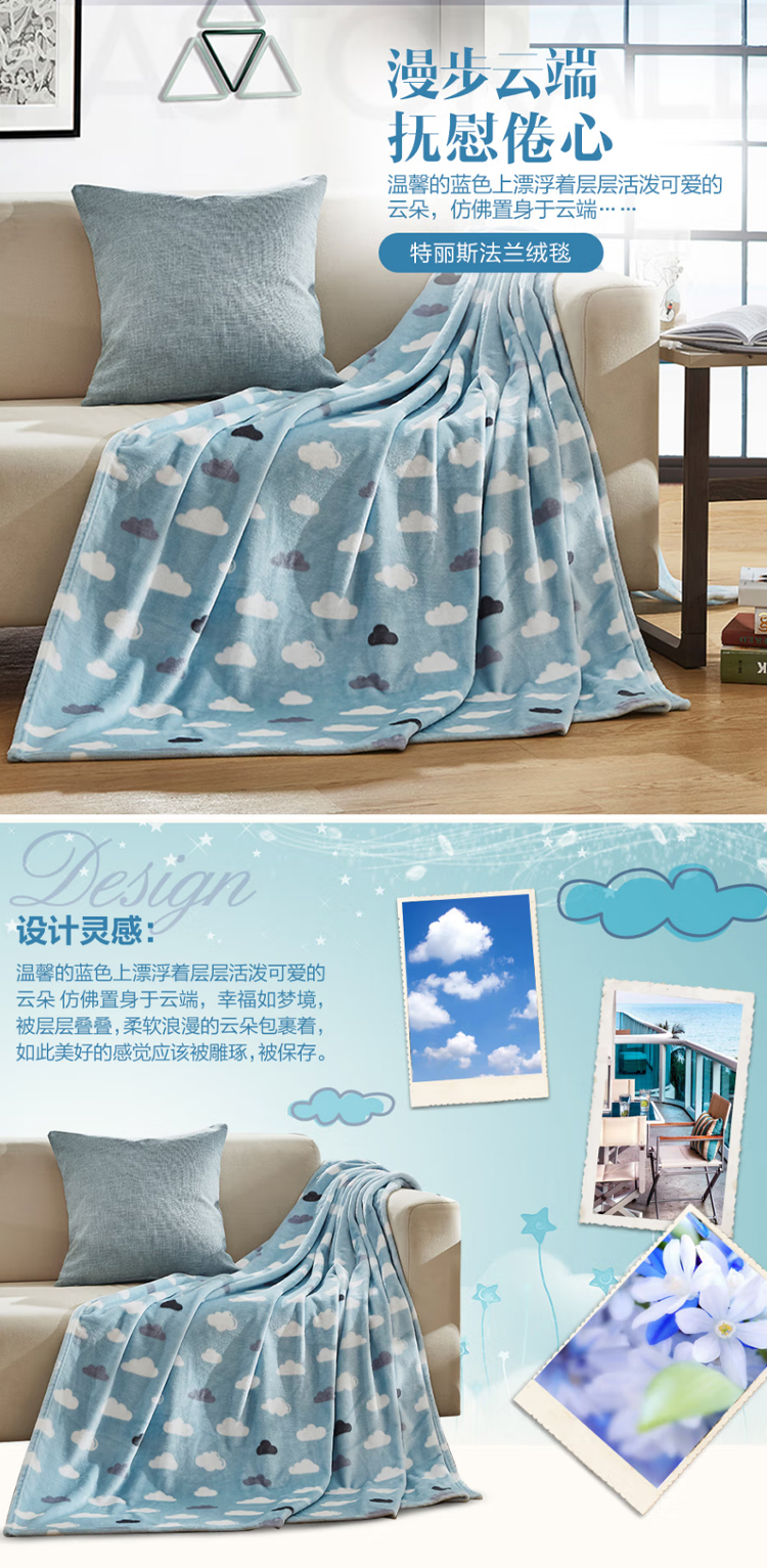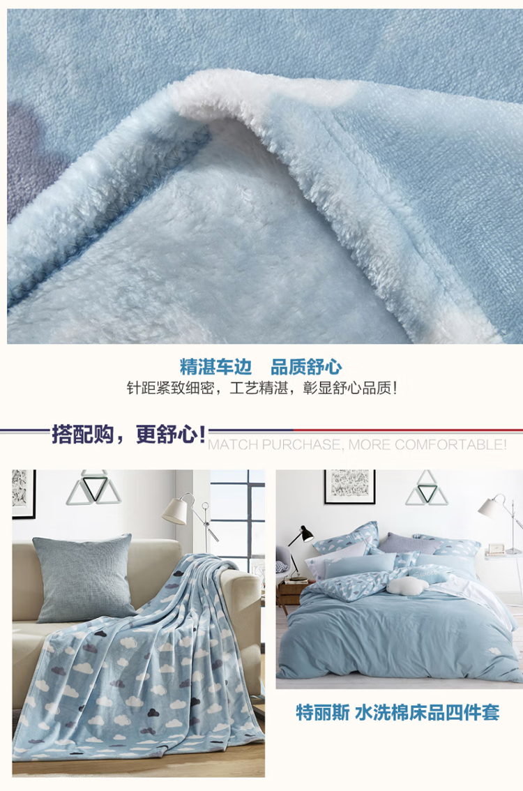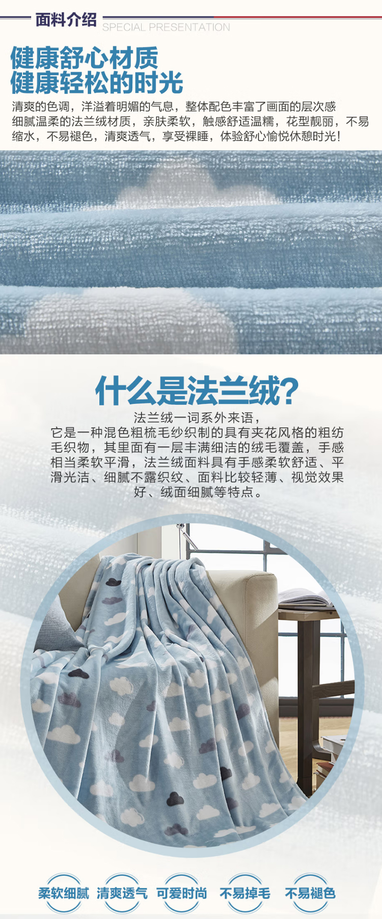 LOVO罗莱生活旗下品牌 空调毯法兰绒毯休闲毯盖毯 特丽斯法兰绒毯