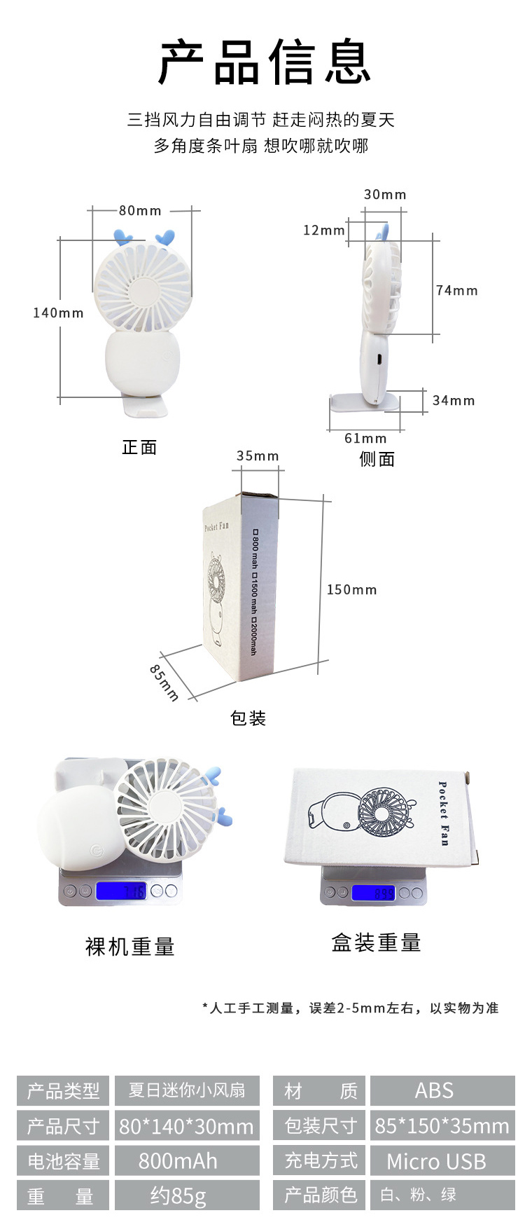 热销迷你口袋风扇usb充电便携式手持小风扇学生礼品桌面风扇