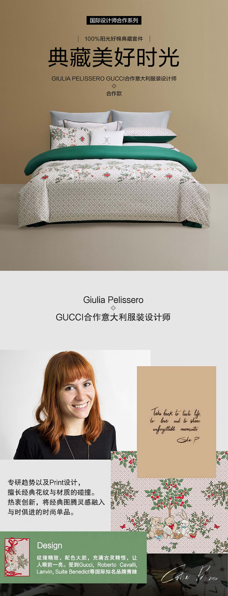 LOVOGUCCI设计师联名合作款 Giulia Pelissero 四件套 梦旅 绿色 被套200×230(cm)